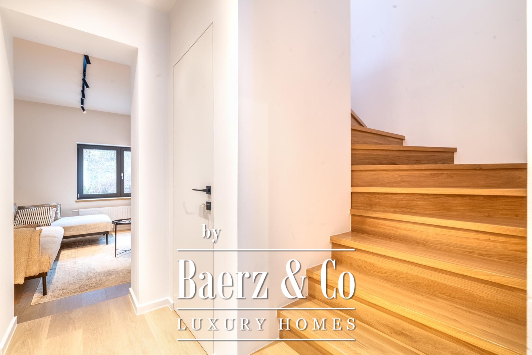 Quality materials define every space: large-format Bjelin oak parquet, aluminum joinery with triple glazing, underfloor heating by Danfloss, and advanced security by Dierre and Hikvision. The house stands on a 385 m² plot, with a private yard and parking for four cars. Positioned just minutes from kindergartens, schools, parks, shops, and public transport, the property resonates with a quiet authority—offering urban comfort, contemporary engineering, and enduring design. For those seeking a luxury house for sale in Črnomerec, this address balances discretion and connectivity.