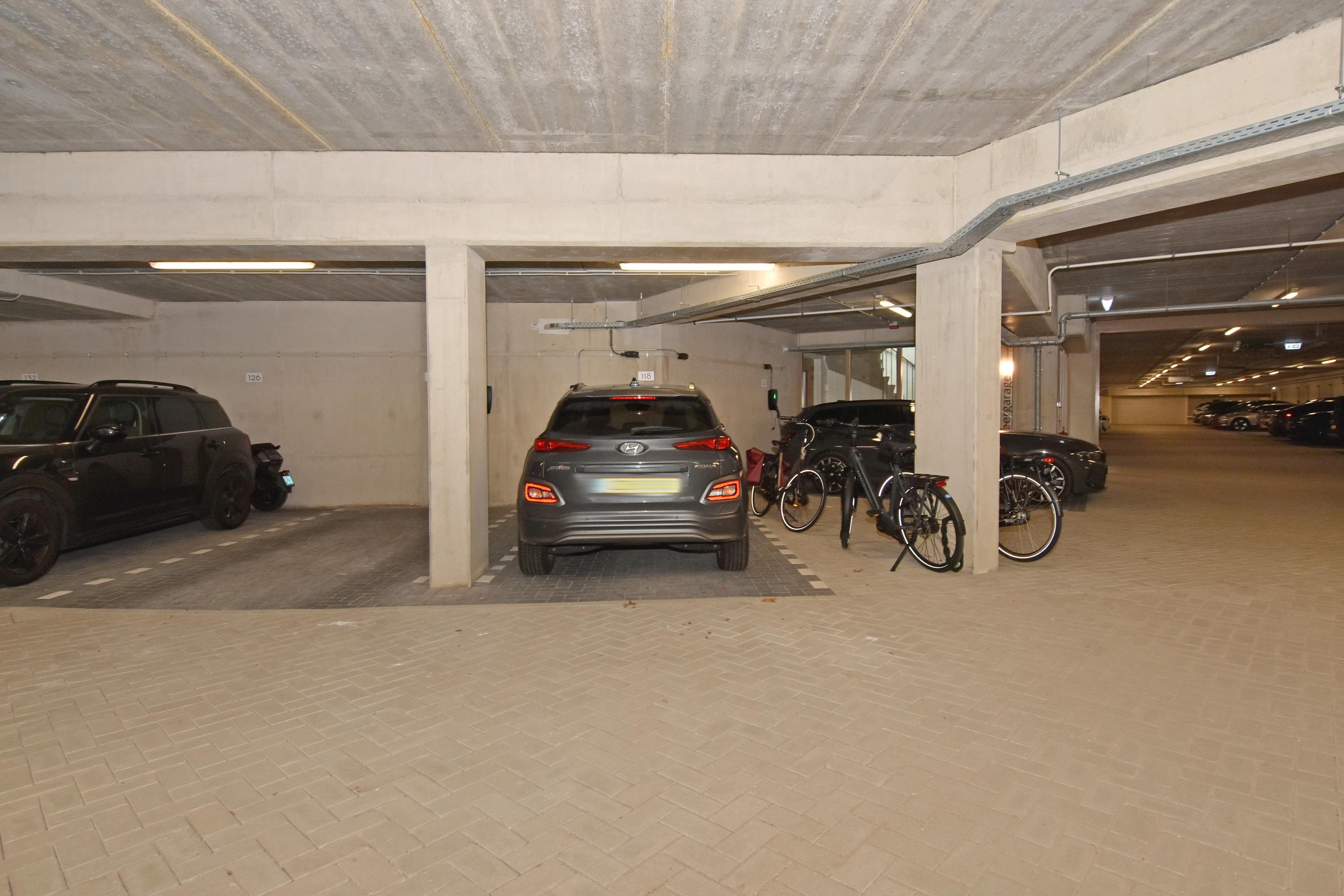 In the basement you will find a private, spacious storage room (with a height of 4 metres) and a private parking space, including its own charging point, in the secured parking garage.