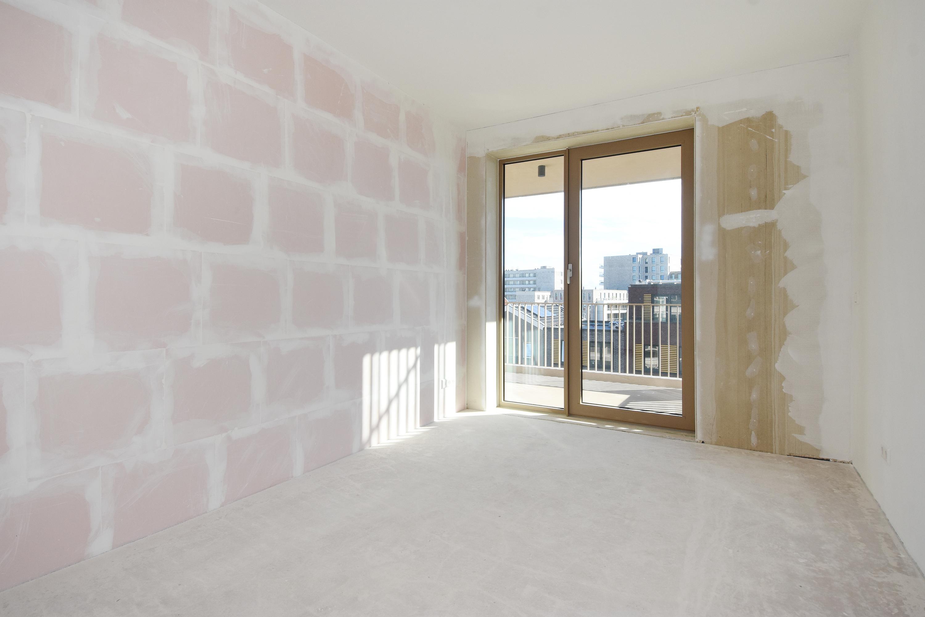The open NEXT-125 kitchen, with a corner setup, is equipped with a composite countertop and built-in appliances: induction cooktop with integrated ventilation, dishwasher, fridge/freezer combination, Quooker, and combi oven. At the rear of the apartment, there are 2 bedrooms, both of which provide access to the spacious sun-drenched balcony on the south, overlooking the shared courtyard.