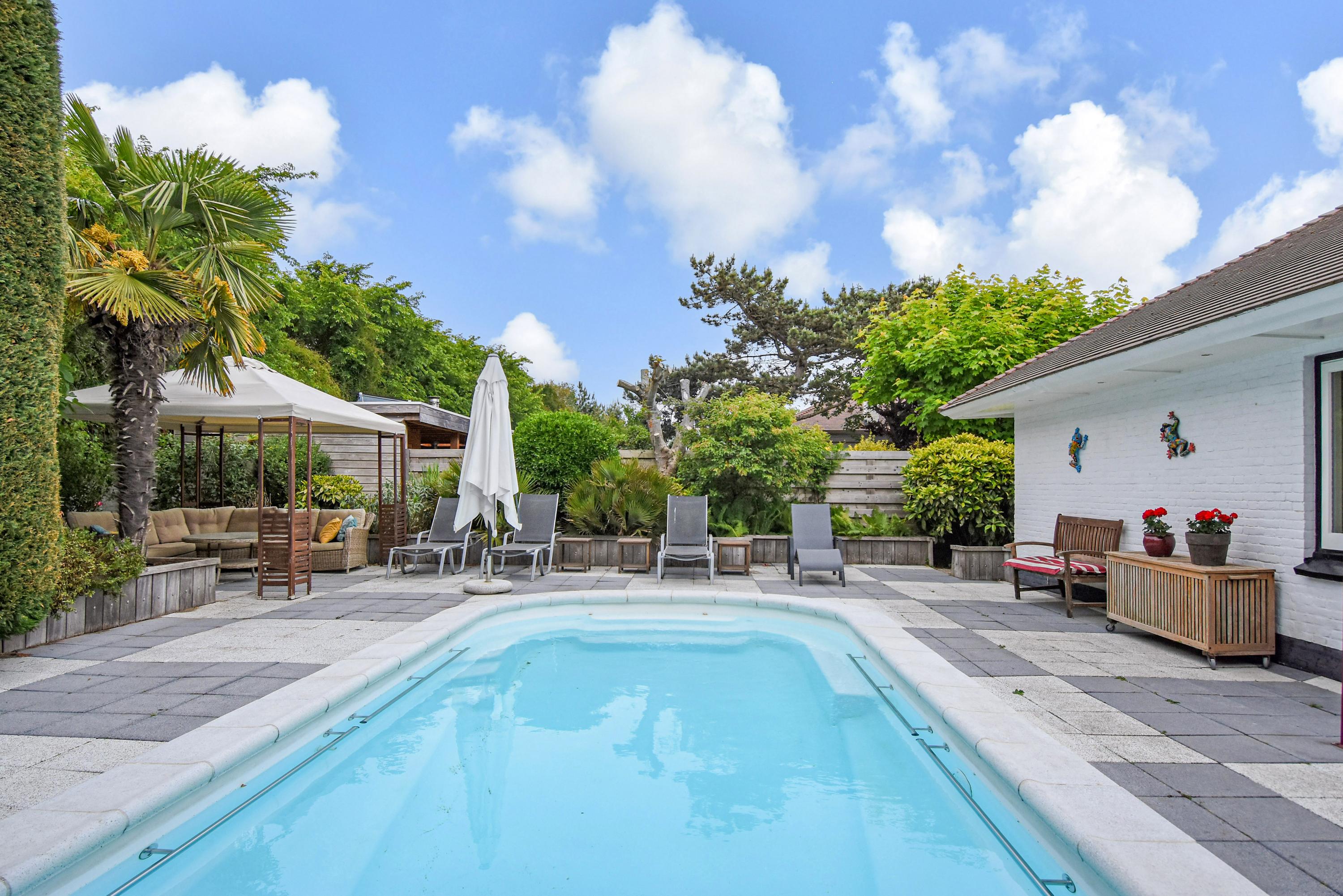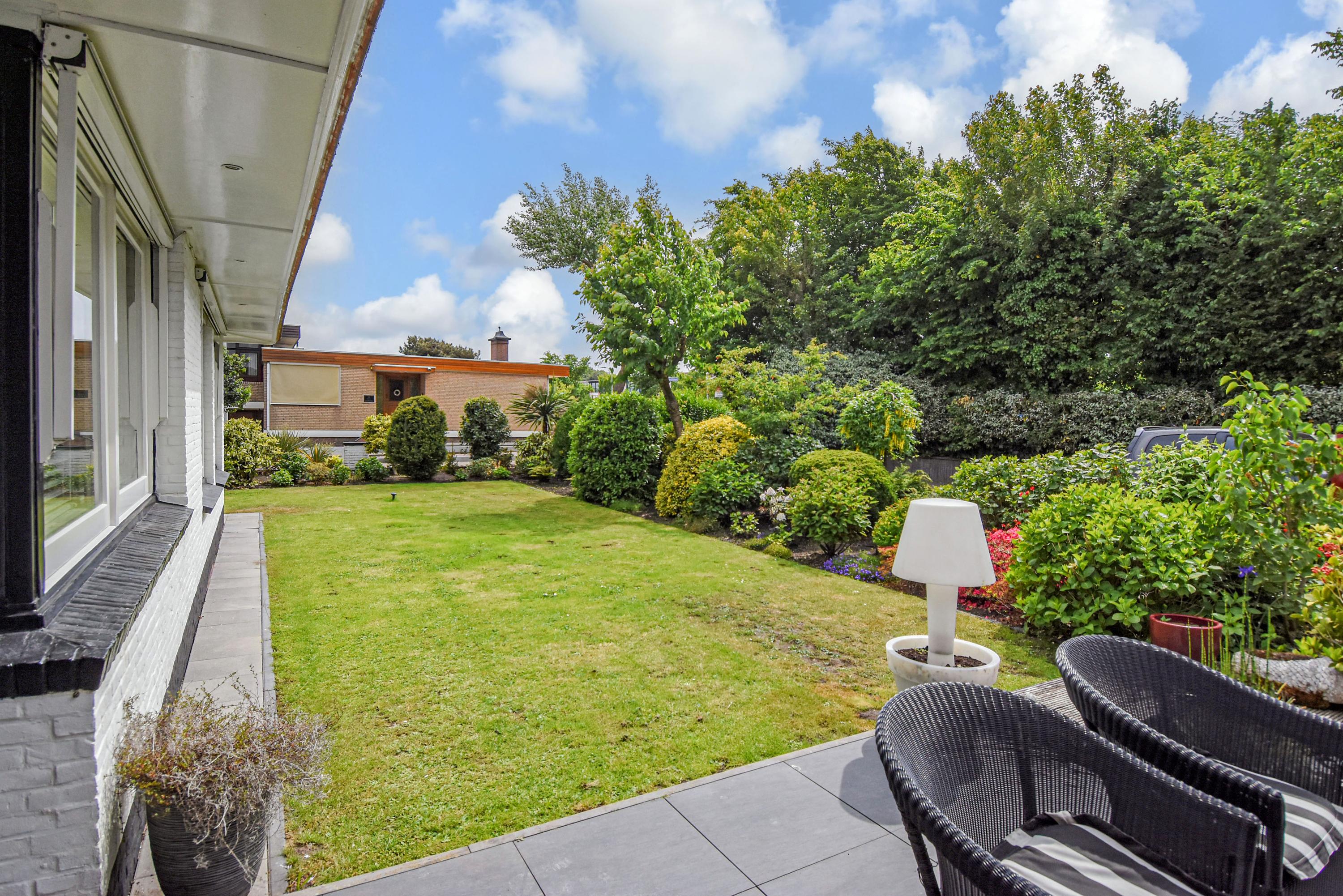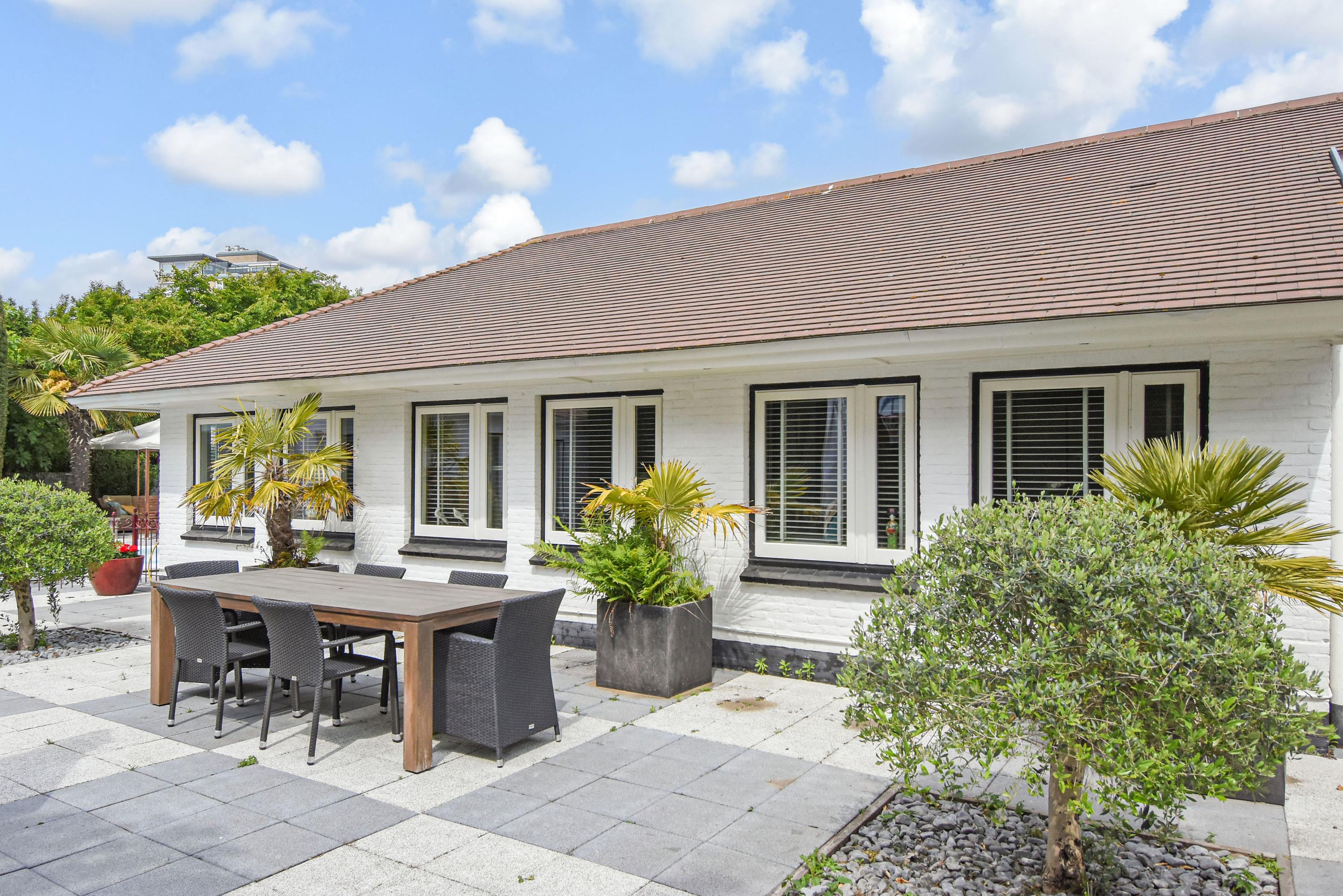Outdoors, multiple terraces invite both morning coffee and evening gatherings, complemented by a swimming pool and ornamental pond. At the rear, a former garage now serves as a versatile outbuilding with its own bathroom, ideal for guests or storage. Just minutes' walk from the beach, dunes, shops, and restaurants, this villa in Kijkduin is a serene retreat, combining space, light, and privacy.