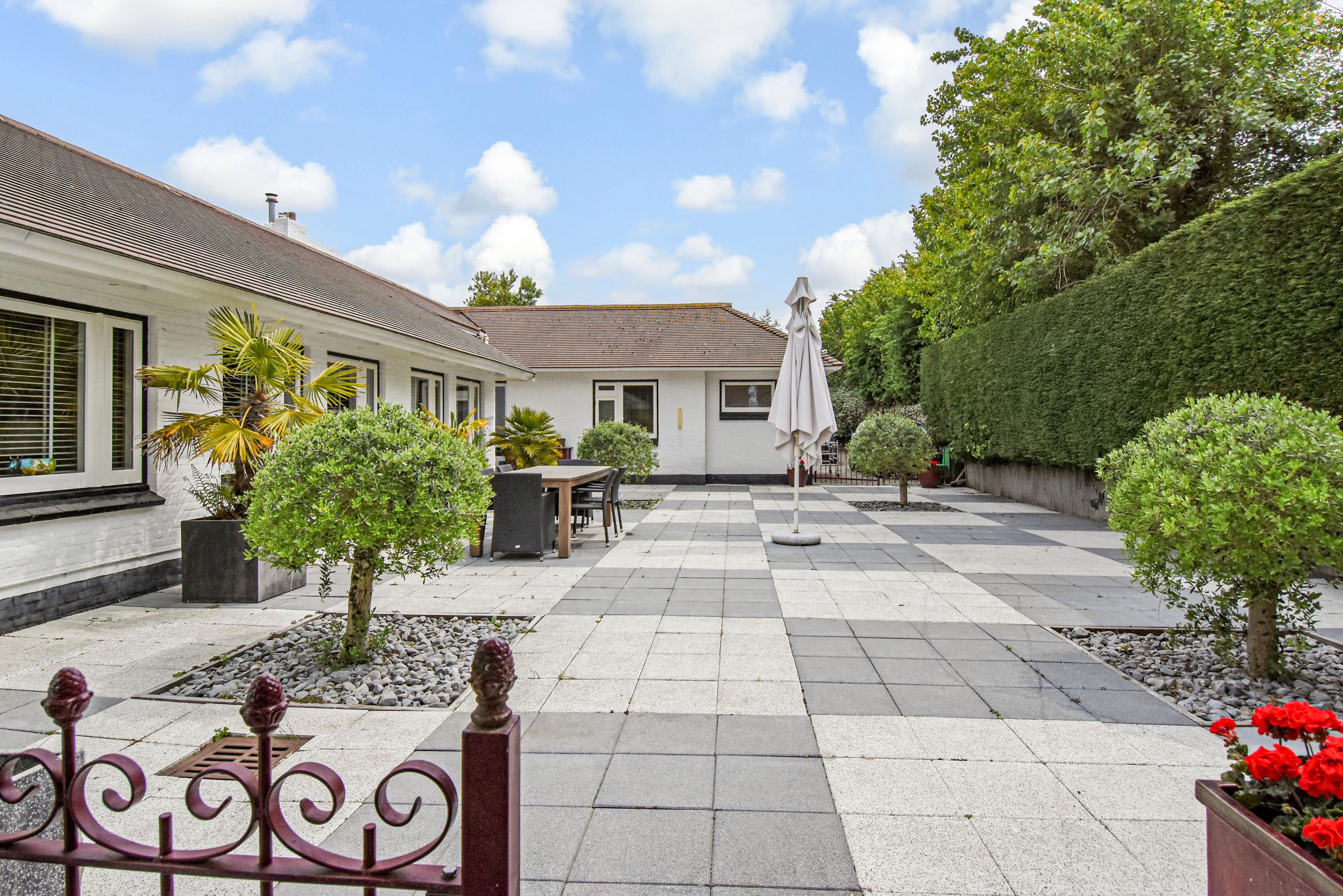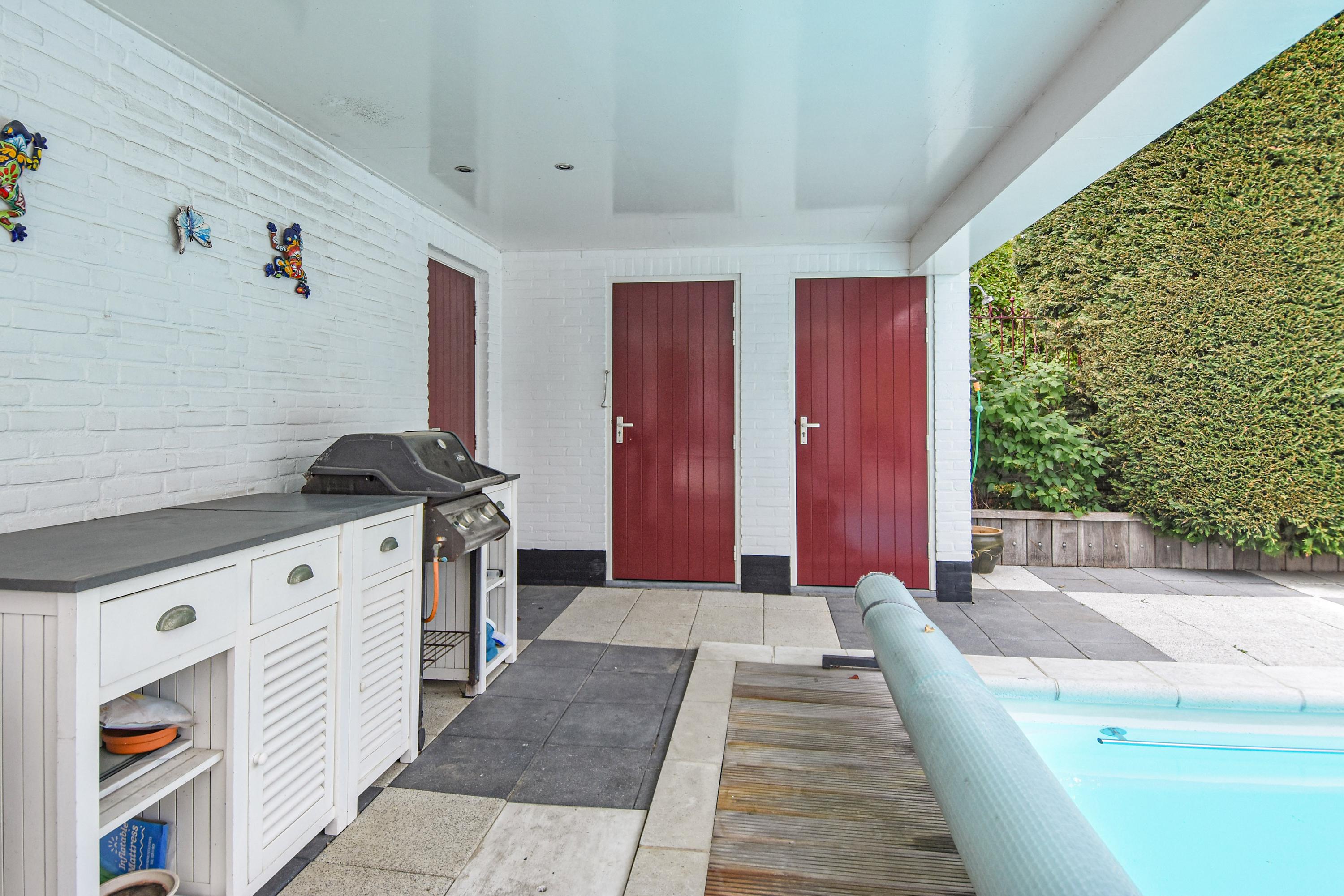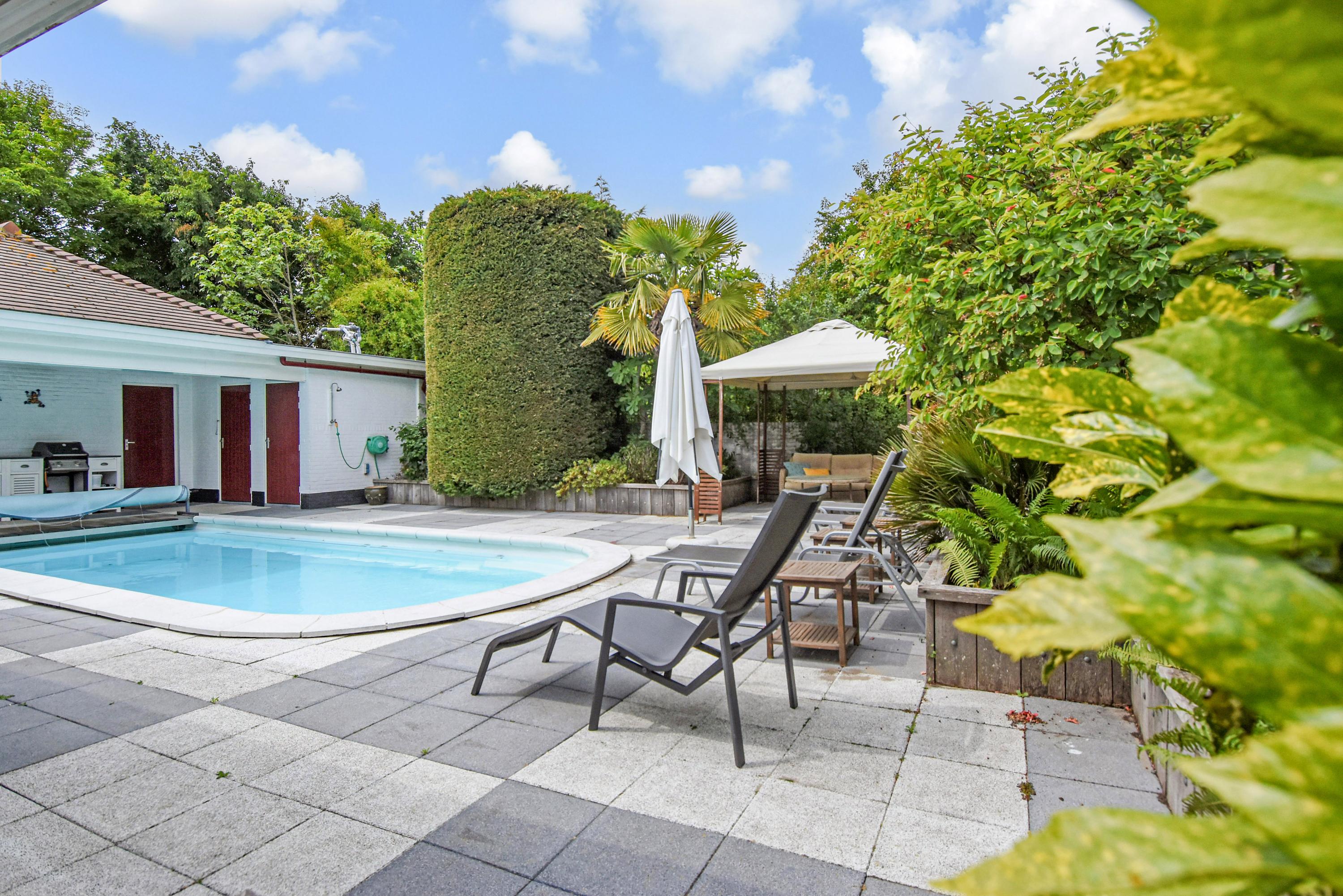 Outdoors, multiple terraces invite both morning coffee and evening gatherings, complemented by a swimming pool and ornamental pond. At the rear, a former garage now serves as a versatile outbuilding with its own bathroom, ideal for guests or storage. Just minutes' walk from the beach, dunes, shops, and restaurants, this villa in Kijkduin is a serene retreat, combining space, light, and privacy.