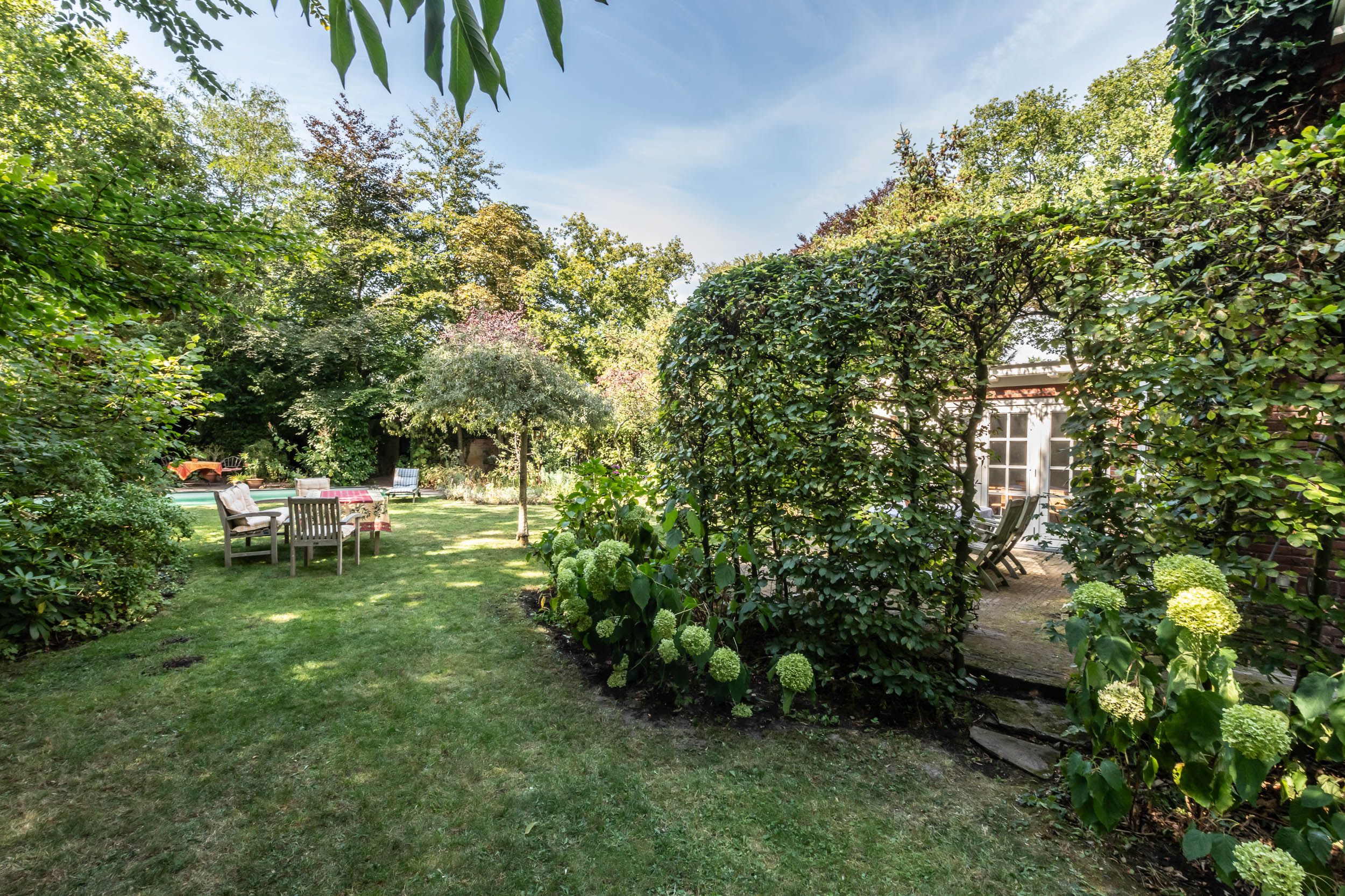 Schools, shops, the railway station and sports facilities are all within cycling distance, as are the beach and town. In short, wonderful living in a green area with everything within easy reach.