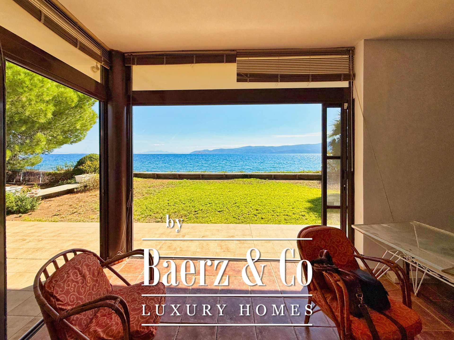 Detached house of 140 sq.m. on a 1,400 sq.m. plot, located directly on the seafront in Agioi Theodoroi, Corinthia. Built in 1967, the property offers five bedrooms, two bathrooms, a kitchen, a living room, and a spacious sitting area. The sitting area is the most privileged part of the house, featuring large openings that allow abundant natural light and provide unobstructed sea views, creating an atmosphere of calmness and refined aesthetics.