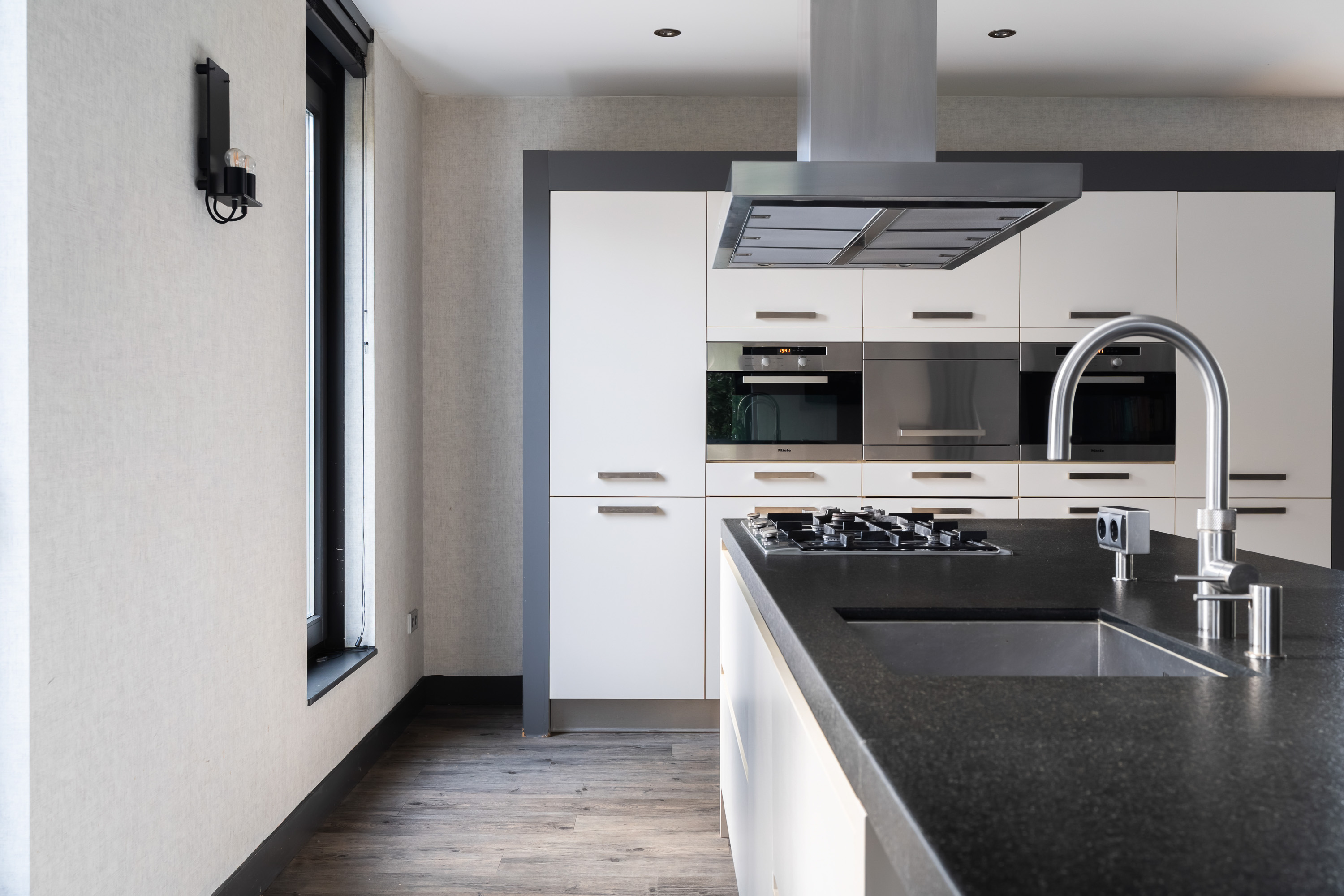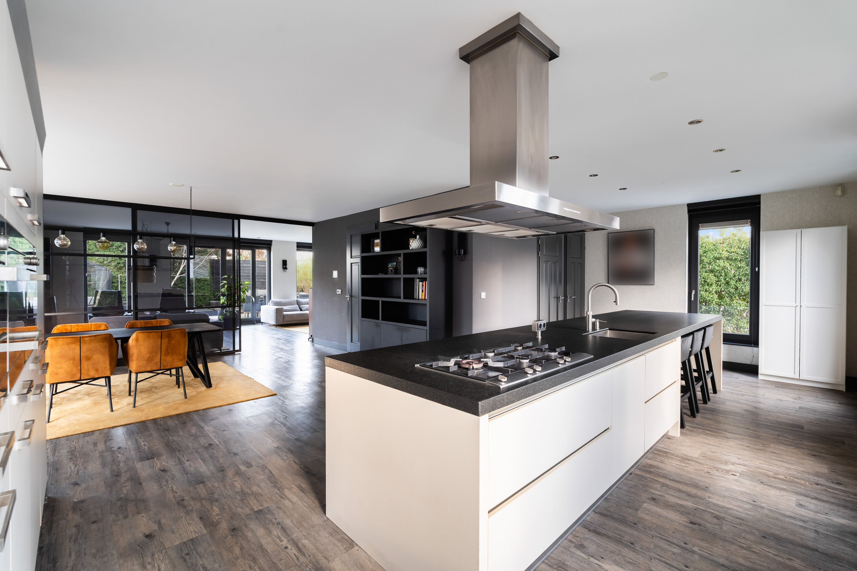 In addition, the kitchen features a Quooker and a water purification system for drinking water. The entire house is fitted with a central water softening system.