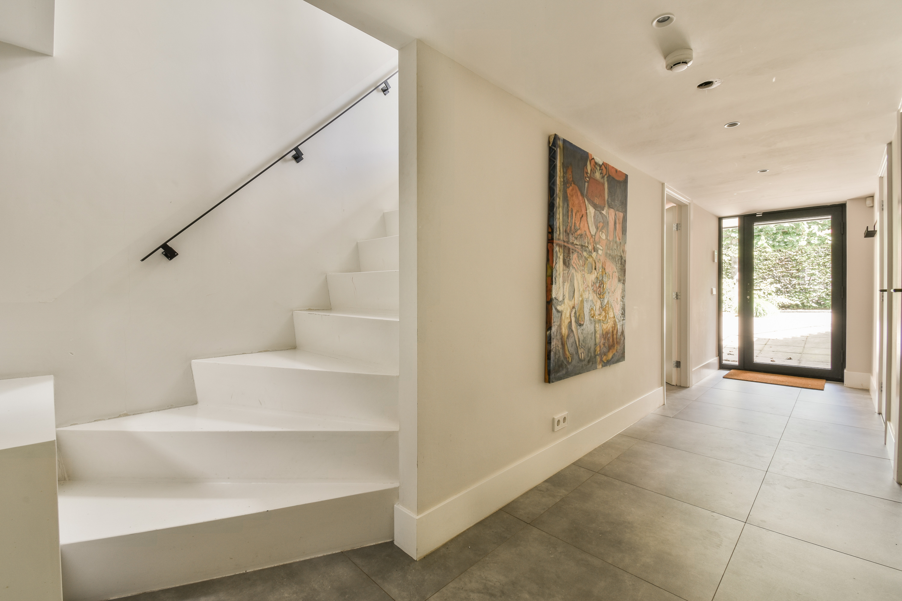 A staircase leads to the first floor, where peace and privacy are key. At the front of the home is the spacious bedroom, offering panoramic views of the Amstel. This room includes a large walk-in closet and a luxurious en-suite bathroom with a freestanding bathtub, double vanity, walk-in shower and toilet. At the rear is a second large bedroom, also with an en-suit bathroom. This bathroom is equipped with a double sink, walk-in shower and toilet. A bright landing connects the rooms and enhances the overall sense of space and refinement.