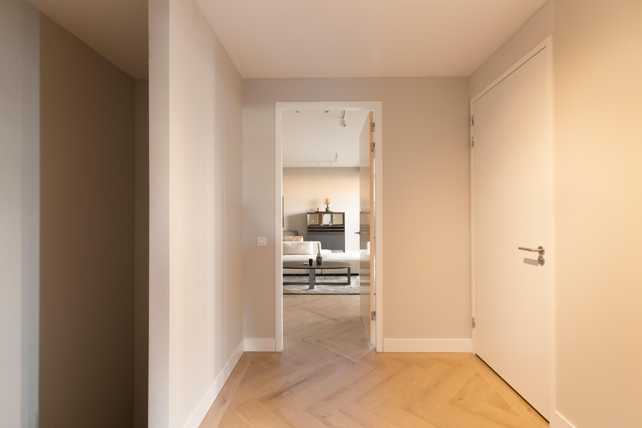 There are three spacious bedrooms, including a serene master suite with its own luxurious bathroom. A second, centrally positioned bathroom maintains the same high standard. Storage is generous, with two internal units and a 21 m² private storage accessible both from the residence and the underground garage—with two exclusive parking spaces.