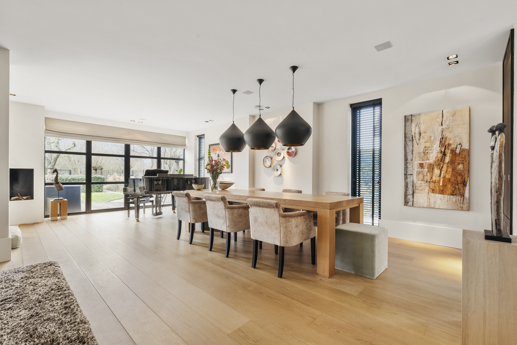 In an exceptional location on the edge of the highly sought-after Bovenkerk, this impressive detached villa, designed in the characteristic style of Piet Boon, is offered for sale. With unobstructed views towards De Poel, a sunny and generously sized west-facing backyard, and the Amsterdamse Bos within short distance, this home offers a rare combination of luxury, space, privacy and nature. A residence with international allure, where tranquility, comfort and quality are evident at every level.