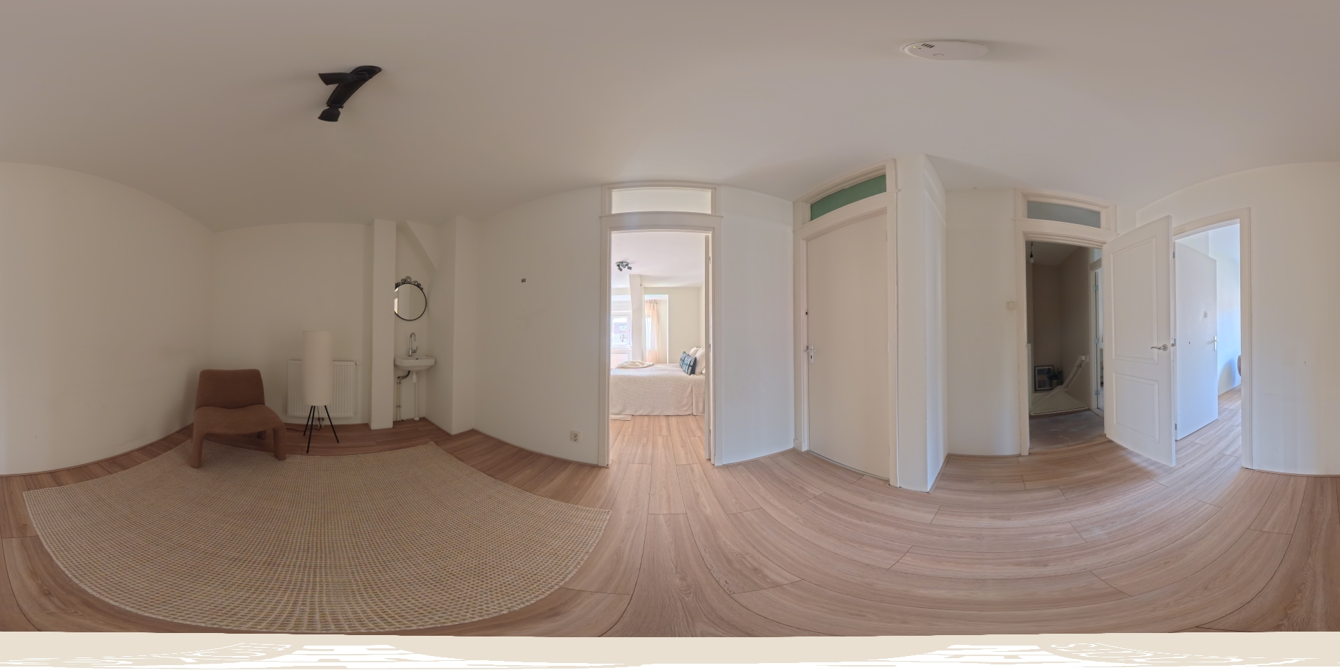 The living room at the front offers ample space to create a comfortable seating area. The charming bay window with opening windows allows for plenty of natural light and offers pleasant views over Jozef Israelskade and the water. At the rear, you will find the kitchen, situated in a pleasant open space yet separate from the living room. This makes it an ideal place to cook in peace and enjoy dining. Thanks to the three sets of French doors opening onto the balcony, this area is exceptionally bright. The kitchen is fully equipped, including a refrigerator, freezer, dishwasher, and a four-burner gas stove. The wide balcony, facing northwest, overlooks the quiet inner courtyard and provides a lovely place to relax. Adjacent to the kitchen is a bedroom that also has access to the balcony. This room can be flexibly arranged, for example as a home office, study, or children's room. The bathroom is also located on this level and features a bathtub, toilet, walk-in shower, and washbasin.