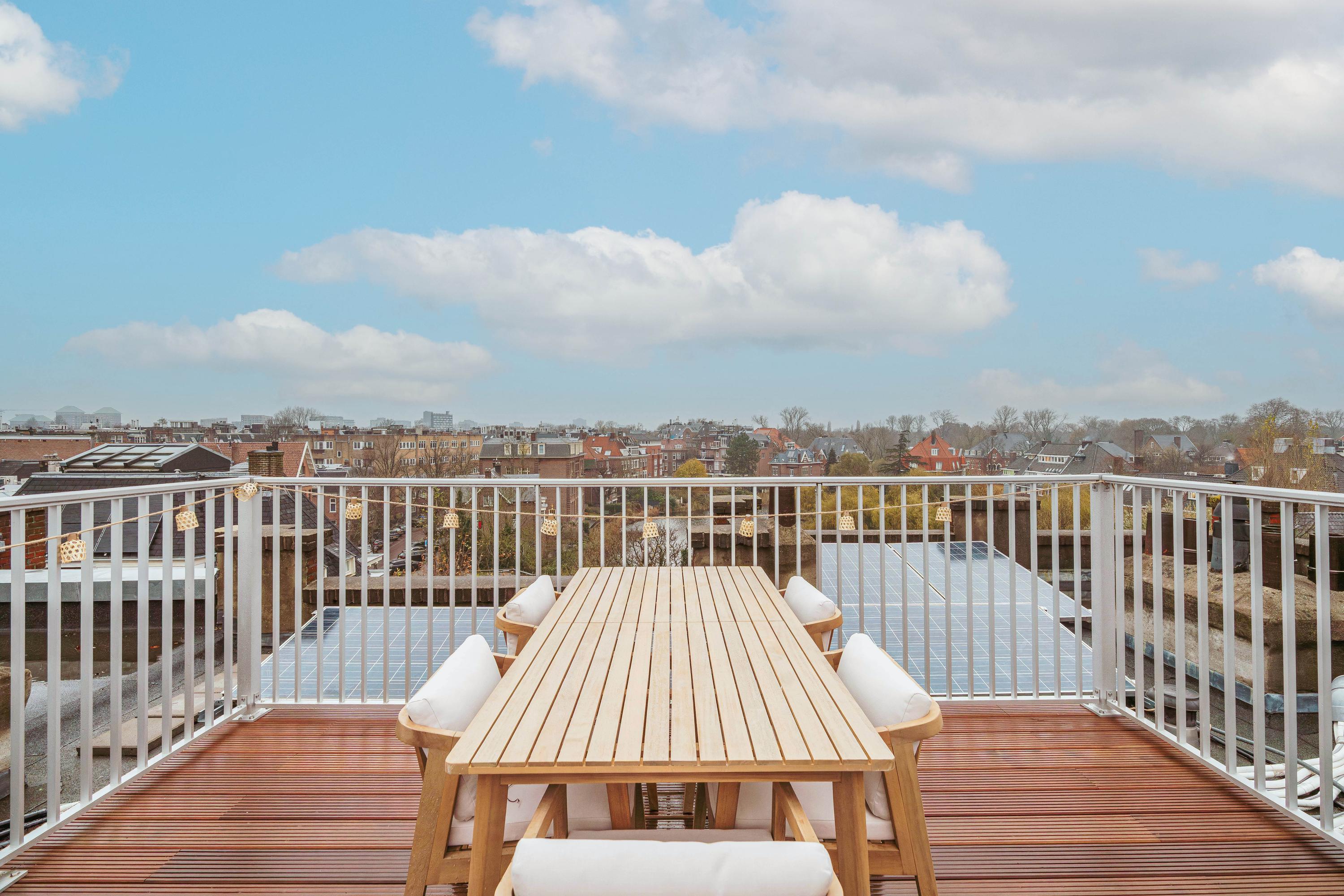 - Beautiful newly created roof terrace with wide views over the city and the stately pond on the Sophialaan