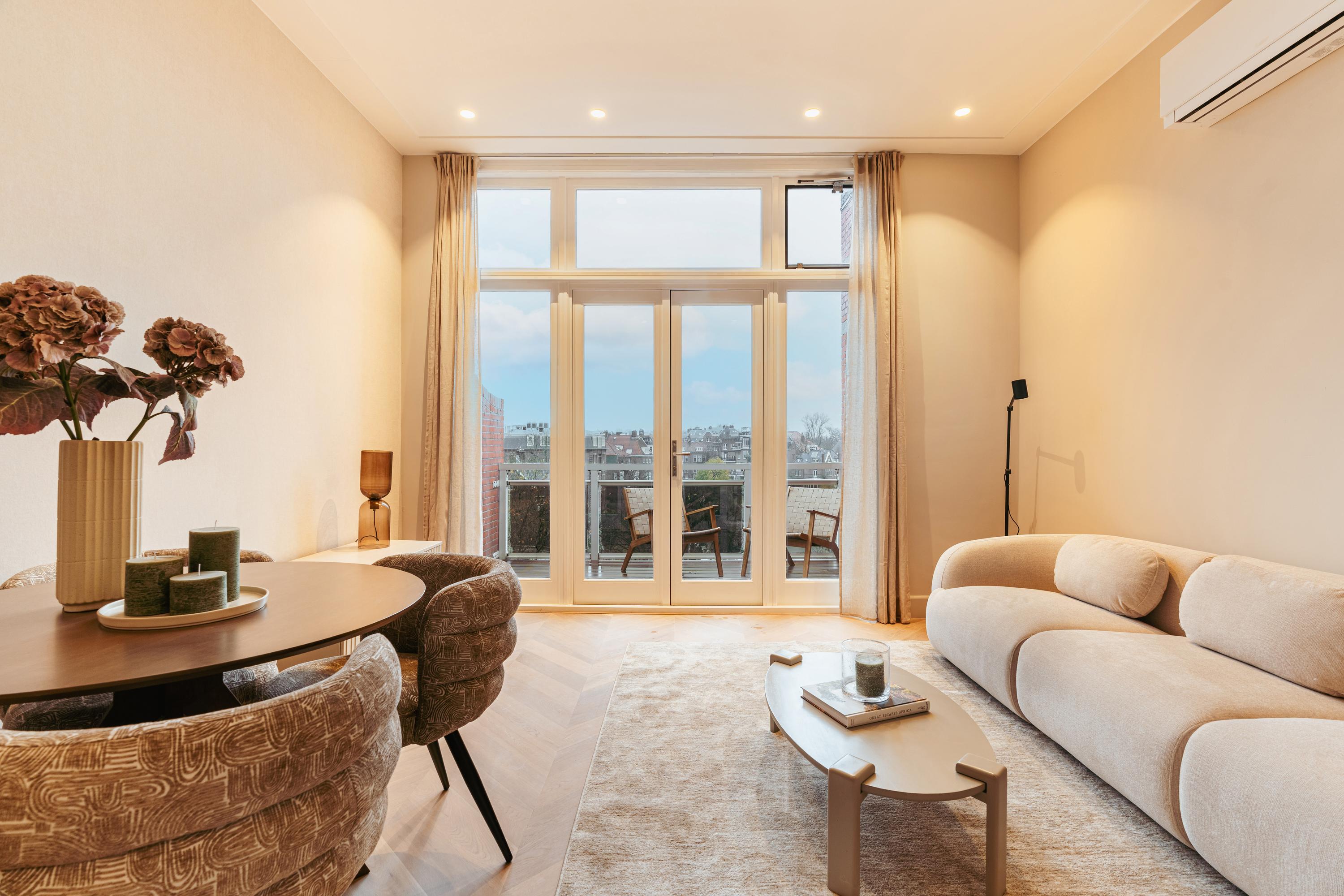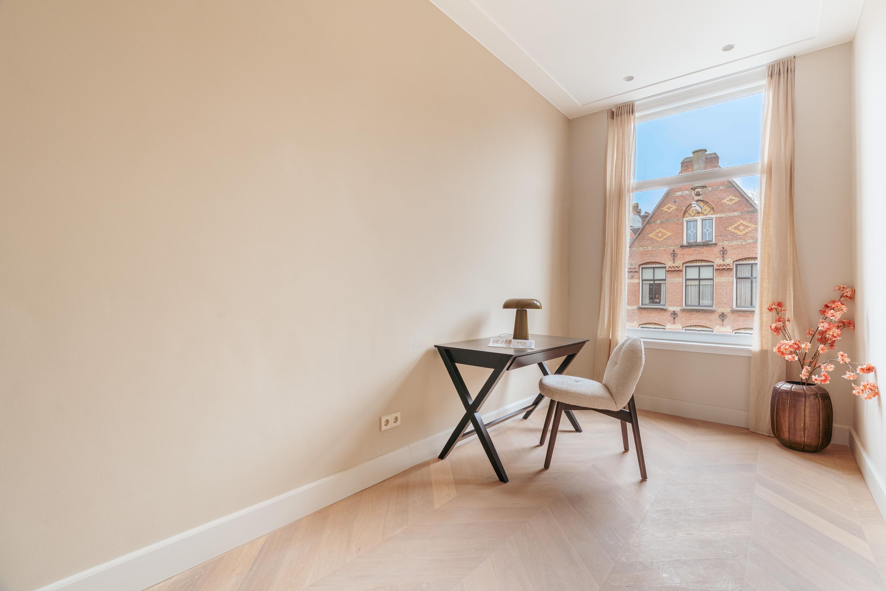 In one of the most beautiful locations in Amsterdam Oud-Zuid, we offer this fully renovated penthouse apartment (approx. 82 m²). The property, with its entrance on the Koninginneweg, is situated on the charming Sophialaan and stands out thanks to its exceptionally high ceilings and unique view over the city from the spacious roof terrace. The high-quality renovation combines a style that respects the classical character of the building with a Mediterranean influence; a unique atmosphere that gives this apartment its name: ‘Ático’. In short, a unique opportunity to be the first occupant of this stylish apartment in one of the most sought-after locations in Amsterdam Oud-Zuid. And all of this is on freehold land, so no ground lease!
