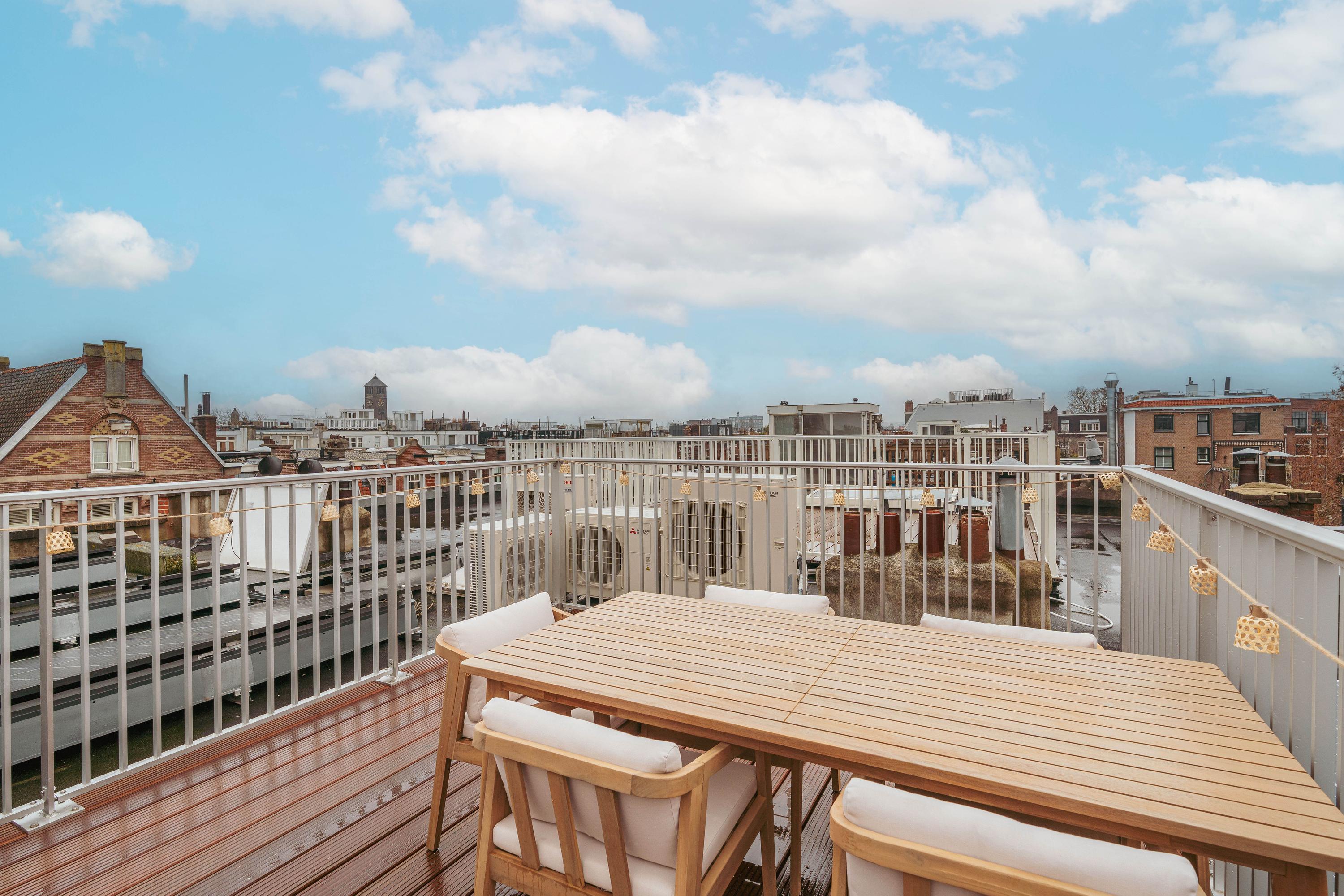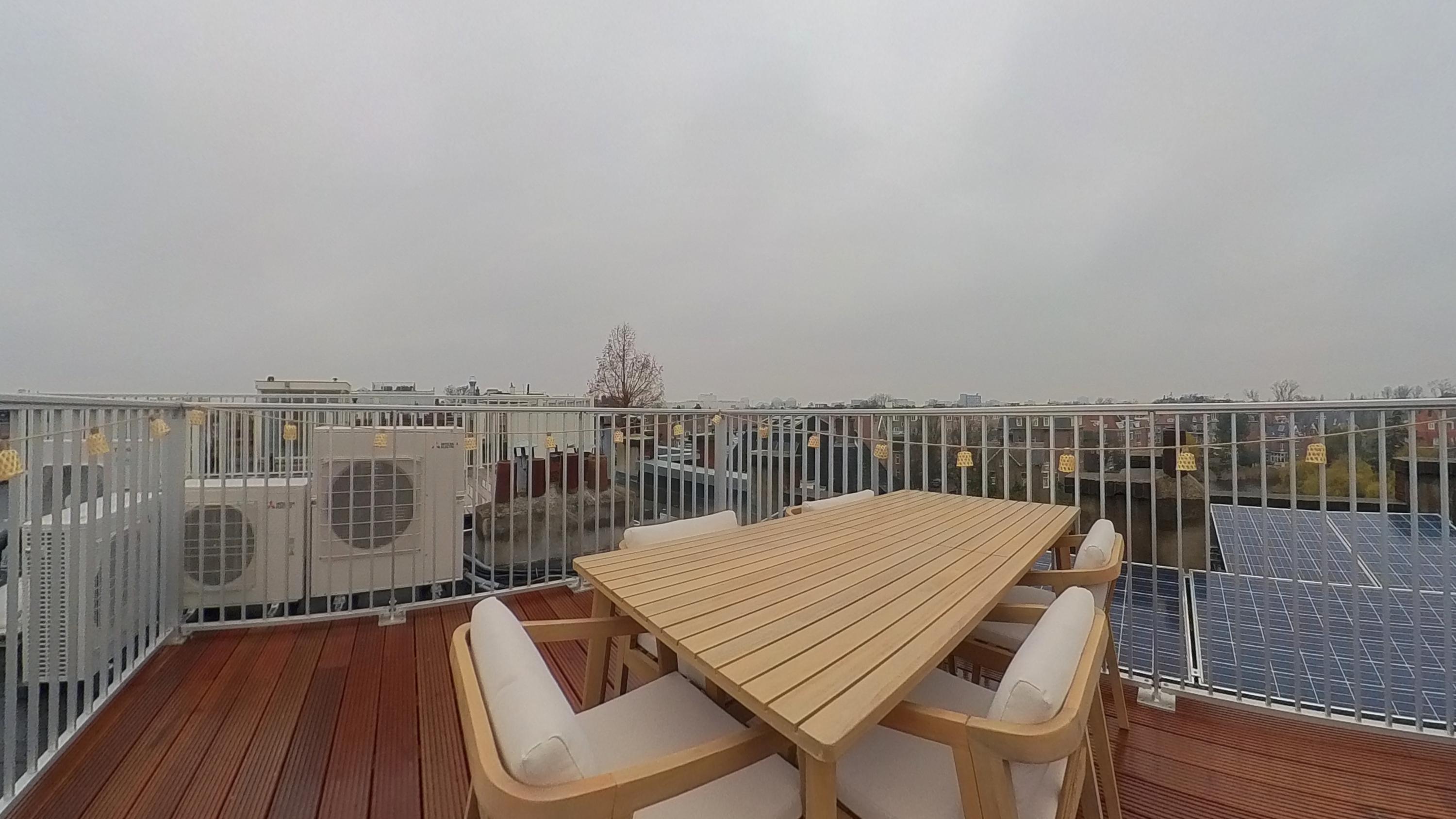 From the hallway you access the newly constructed roof terrace, where you can enjoy a phenomenal, unobstructed view over the city and the stately pond on the Sophialaan. This atmospheric outdoor space is ideal for relaxing, enjoying drinks with friends or soaking up the sun in peace. A true asset for anyone who loves outdoor living in the heart of Amsterdam.