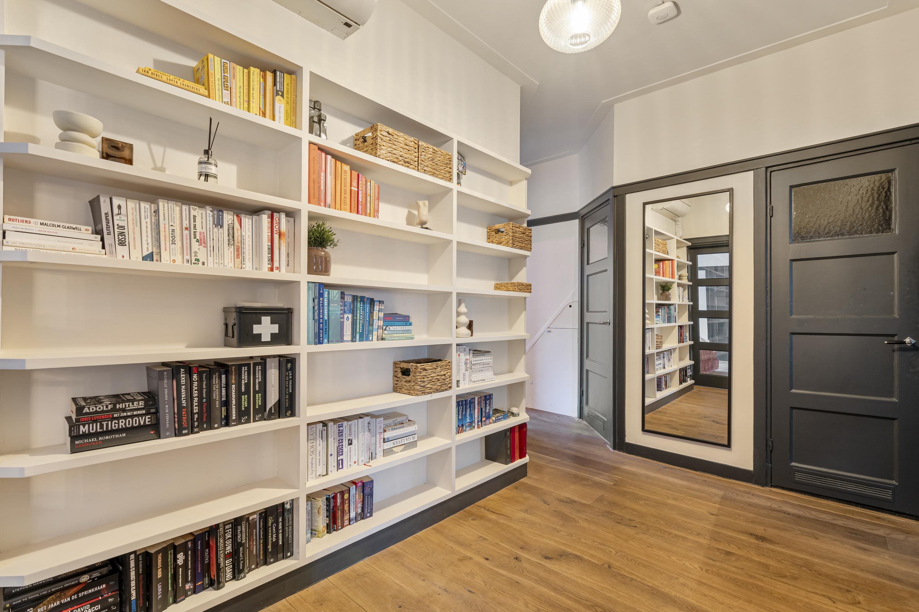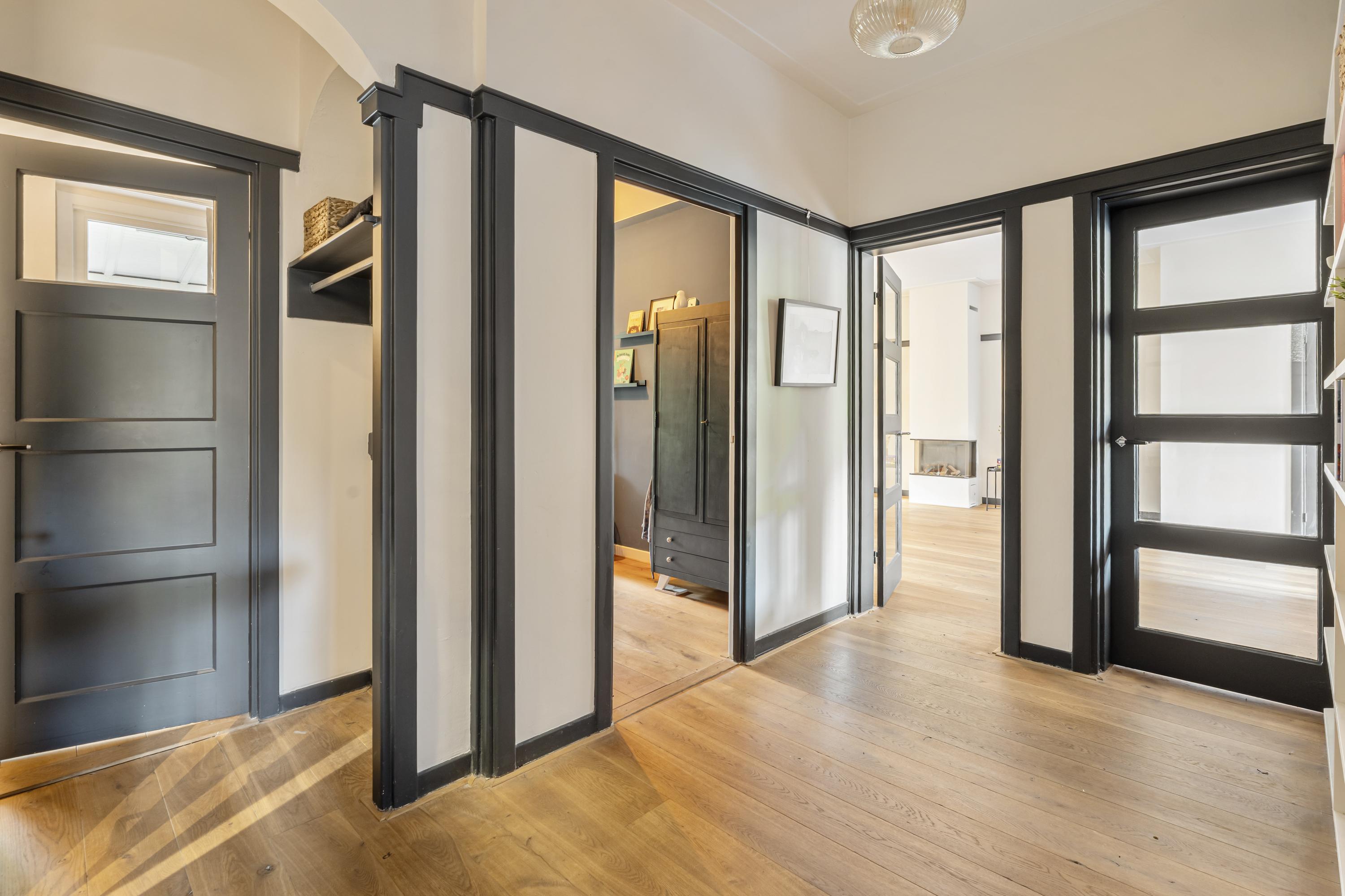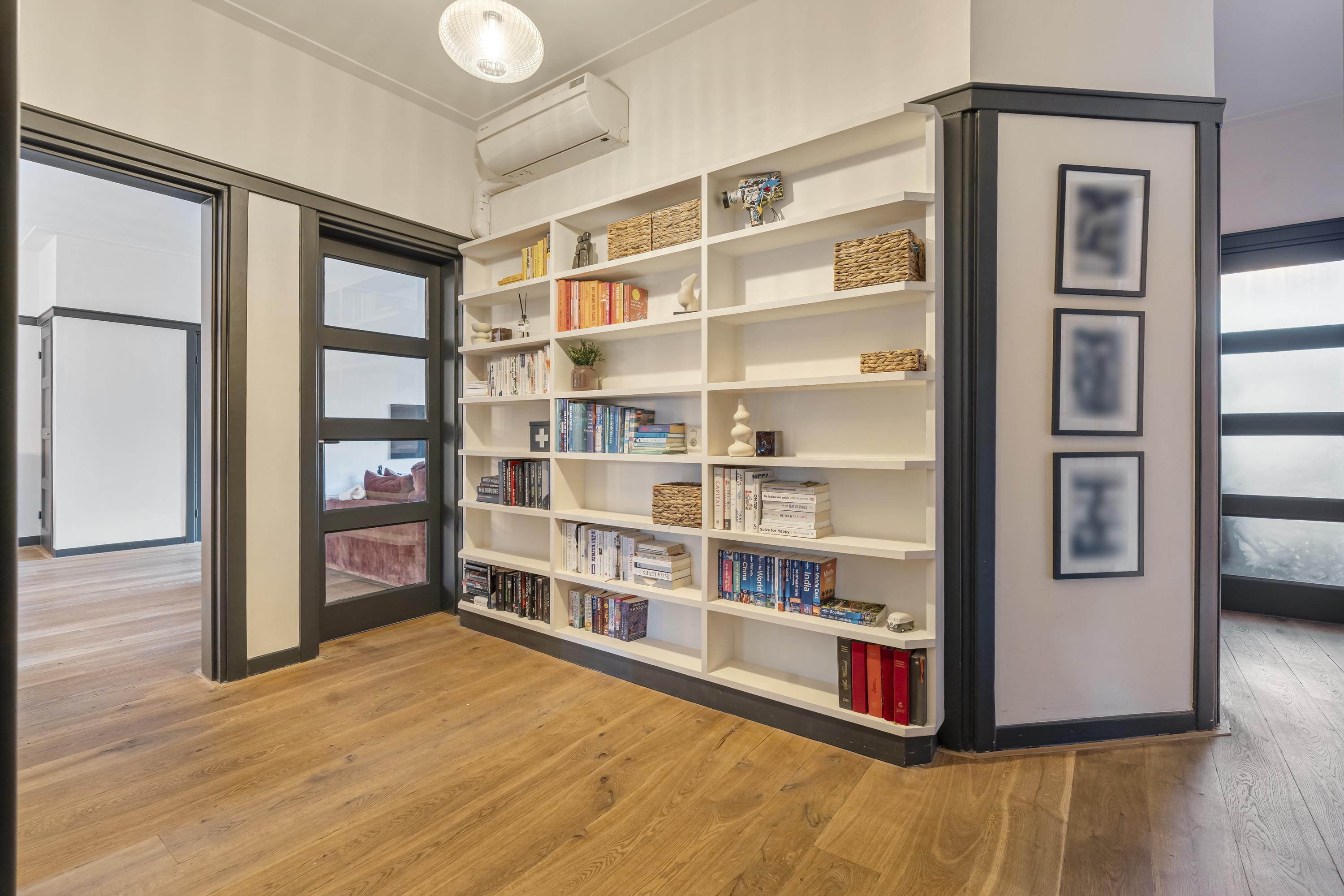 Upon entering through the private entrance, you arrive in the hallway, which provides access to the central hall and the various rooms. To the right, you will find the spacious living room, a bright and inviting space featuring large windows at the front and French doors at the rear. The living room offers ample space for both a comfortable seating and dining area and is equipped with a charming gas fireplace, adding warmth and atmosphere. Adjoining the living room is the open-plan kitchen, which truly forms the heart of the home. The kitchen features a generous island with a Quooker tap and an integrated climate-controlled wine cabinet. The island is perfectly suited for placing a dining table, creating a natural and sociable connection between cooking and dining. The kitchen is further equipped with a five-burner gas stove, combi-oven, separate oven, dishwasher, and extractor hood. Thanks to the French doors and large windows, the kitchen enjoys a direct connection to the garden and offers a pleasant view outside. When the doors are opened, the covered terrace becomes an extension of the kitchen, creating a seamless indoor-outdoor living experience. The property comprises three bedrooms. The master bedroom is generously sized and, like the hallway, is fitted with air conditioning. The additional bedrooms are well-suited as children’s rooms, a home office, or guest rooms. Centrally located within the property is a spacious hall featuring a custom-built wall with open shelving, functioning as a stylish bookcase and offering ample space for books, art, and decorative objects. From this hall, all bedrooms, the bathroom, and the separate toilet are accessible. The bathroom is fitted with a bathtub and washbasin.