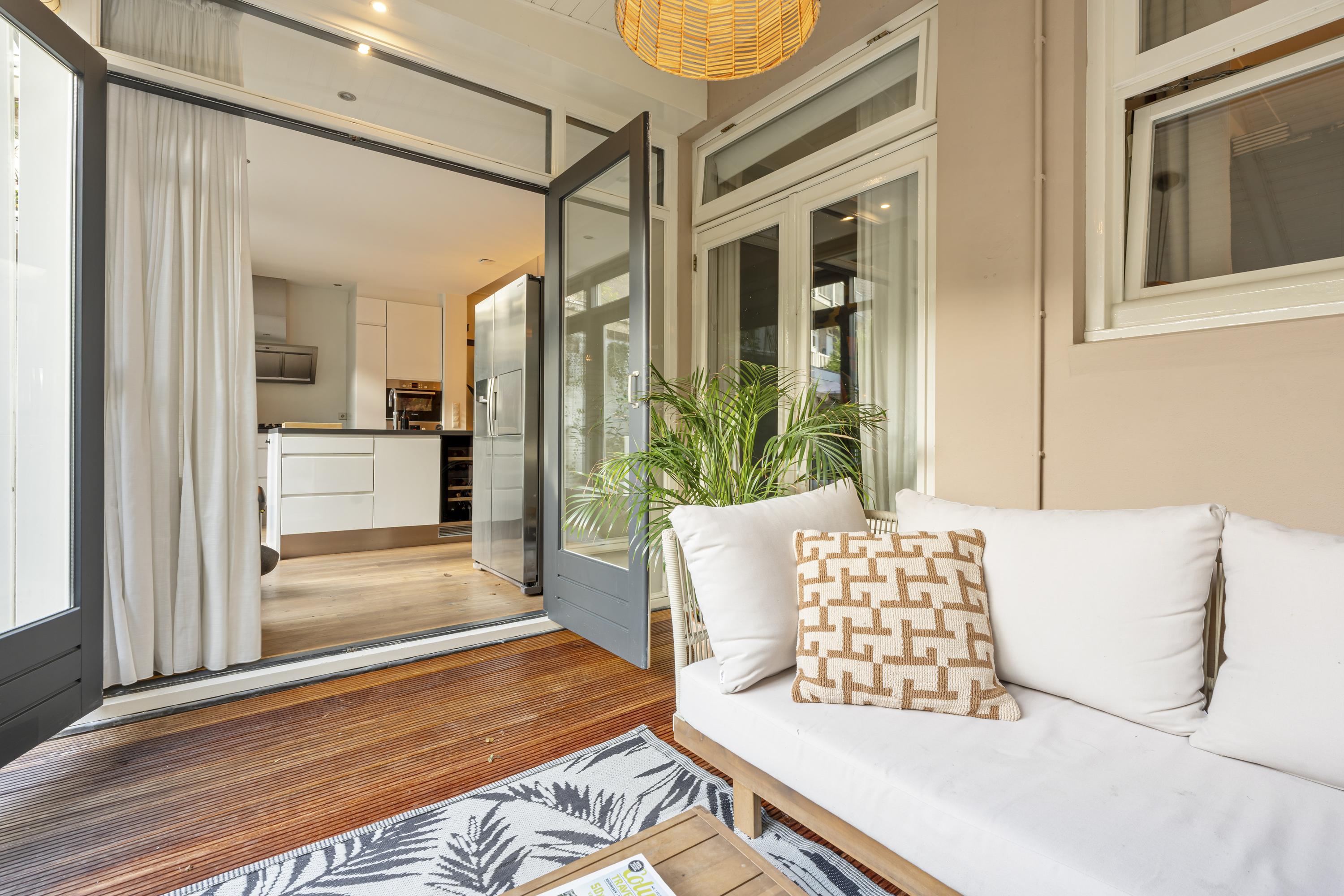 Spacious and charming ground-floor apartment (approx. 117 m²) with a sunny southwest-facing garden, ideally situated on the beautiful Merwedeplein in the highly sought-after Rivierenbuurt. The property features three bedrooms, a generous living room with a gas fireplace, and a large open-plan kitchen with a cooking island and direct access to the garden. Conveniently located within walking distance of shops, restaurants, green spaces, and various public transport connections.
