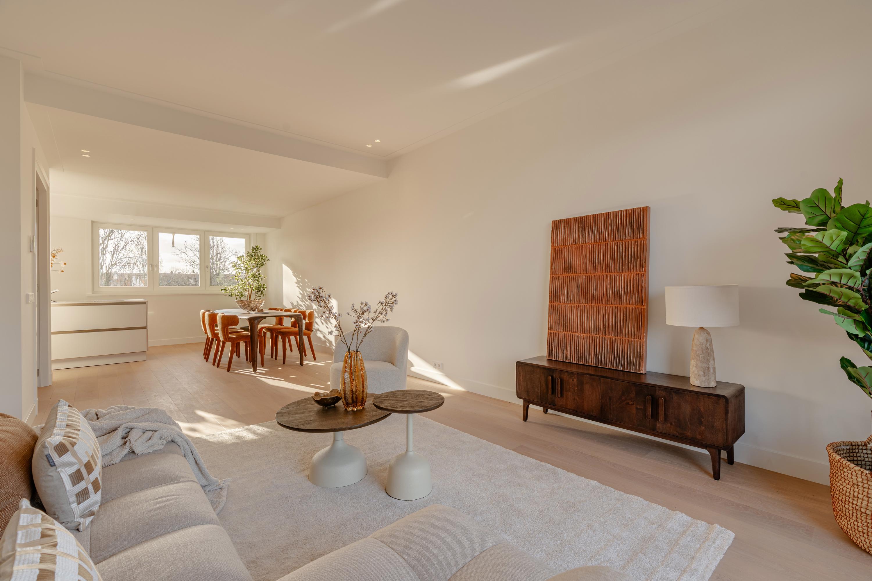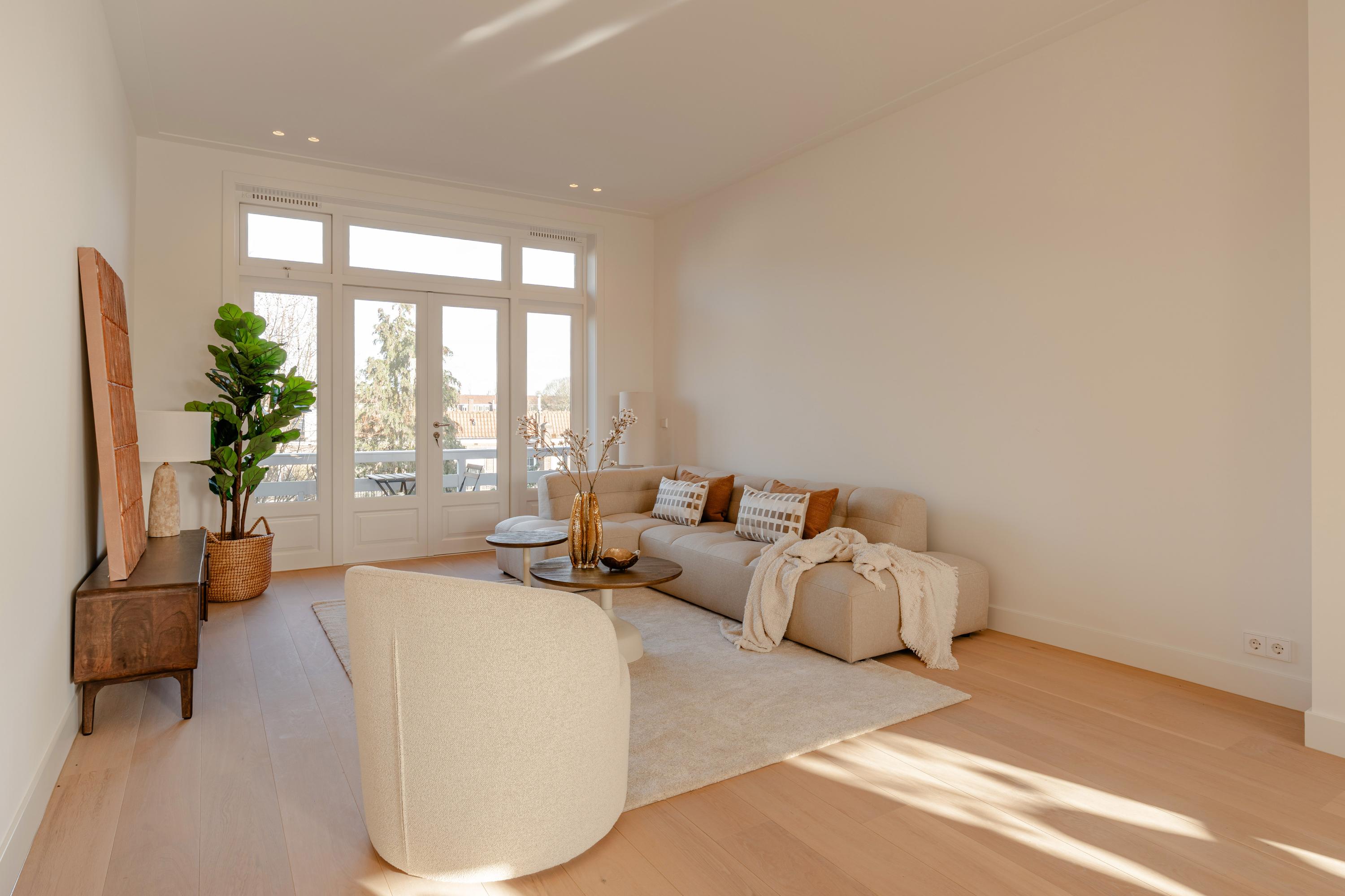 At Olympiaplein we proudly present this spacious and fully renovated double upper-floor apartment of approx. 142 m². The property has recently been refurbished to a high standard under the supervision of an architect and is spread across two floors. It offers a generous living room with open-plan kitchen, three bedrooms and two balconies. The apartment is located in a sought-after area of Amsterdam-Zuid: peaceful, yet with all amenities and city life within easy reach.