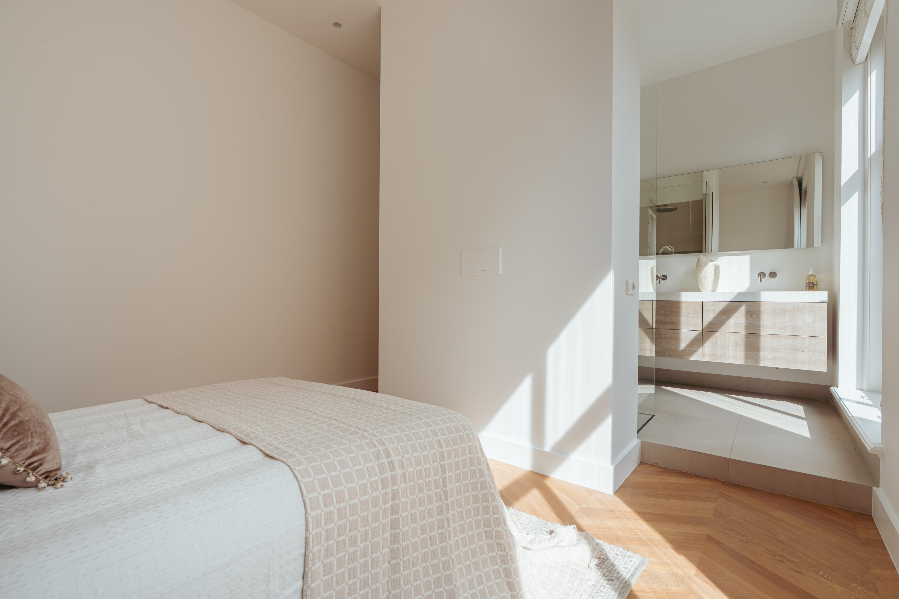 Stylish and bright apartment of approx. 85 m² in the beloved Vondelpark neighbourhood. Situated in a unique location in Amsterdam Oud-West, this wonderfully light and recently fully renovated apartment of approximately 85 m² is located in a monumental building with a lift. The property is finished to a high standard and features two comfortable bedrooms, each with a private en-suite bathroom, a modern kitchen equipped with luxury built-in appliances, and a spacious living room with high ceilings, a charming fireplace, and characteristic bay windows that allow beautiful natural light to flow in. Furthermore, the apartment is located on freehold land – so no leasehold applies!