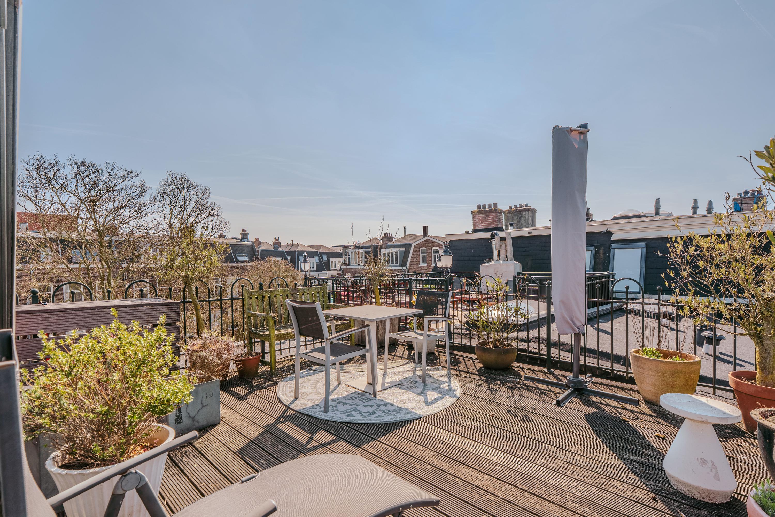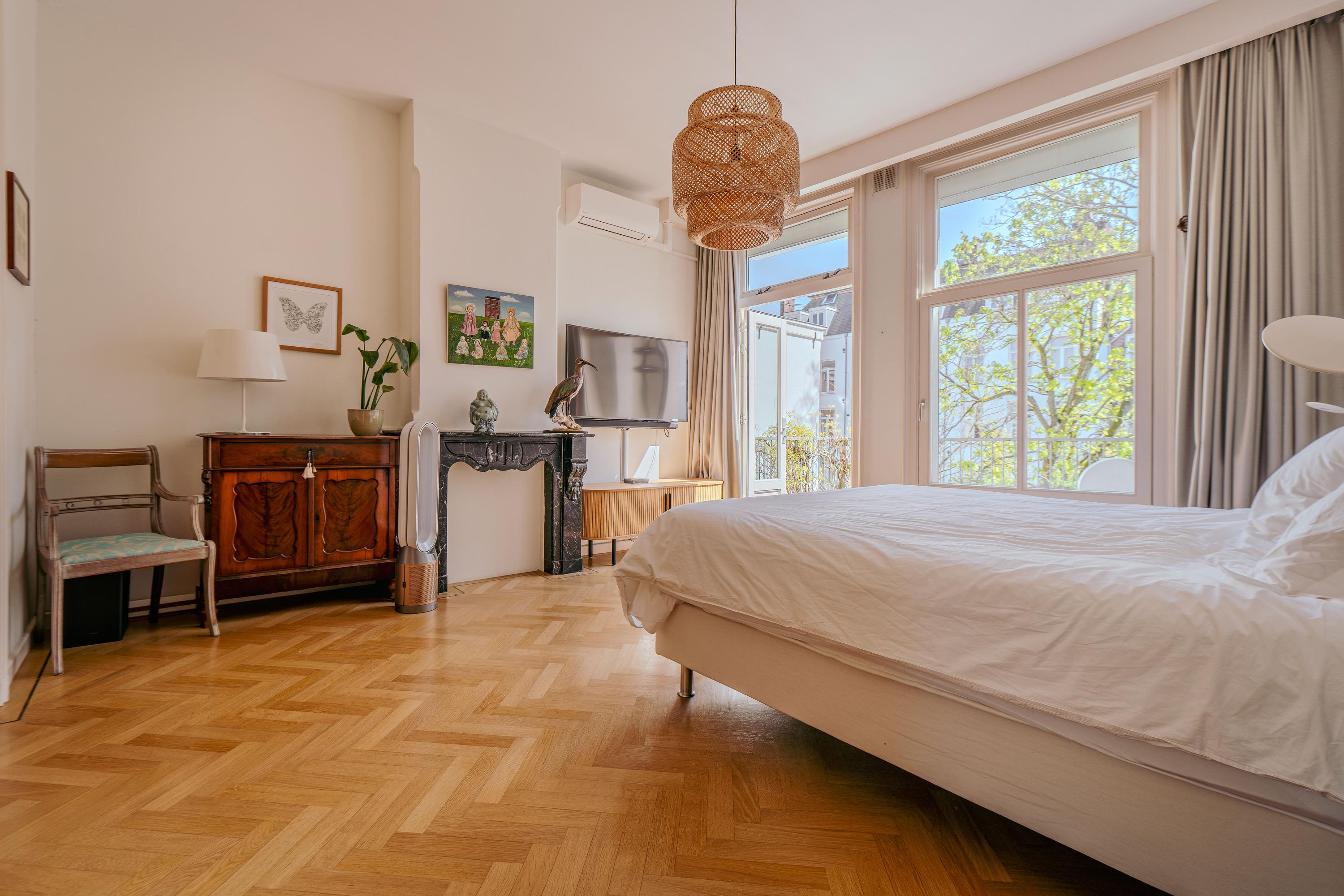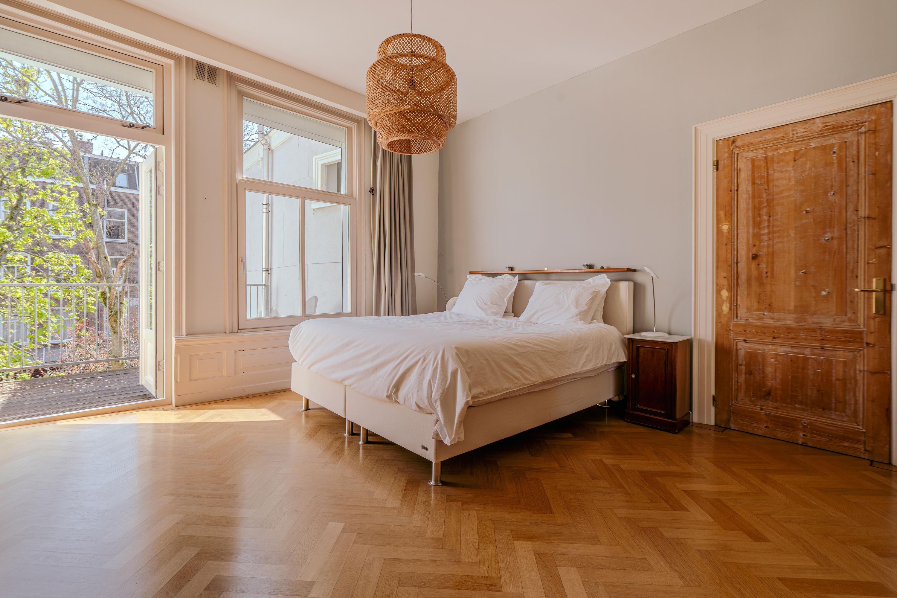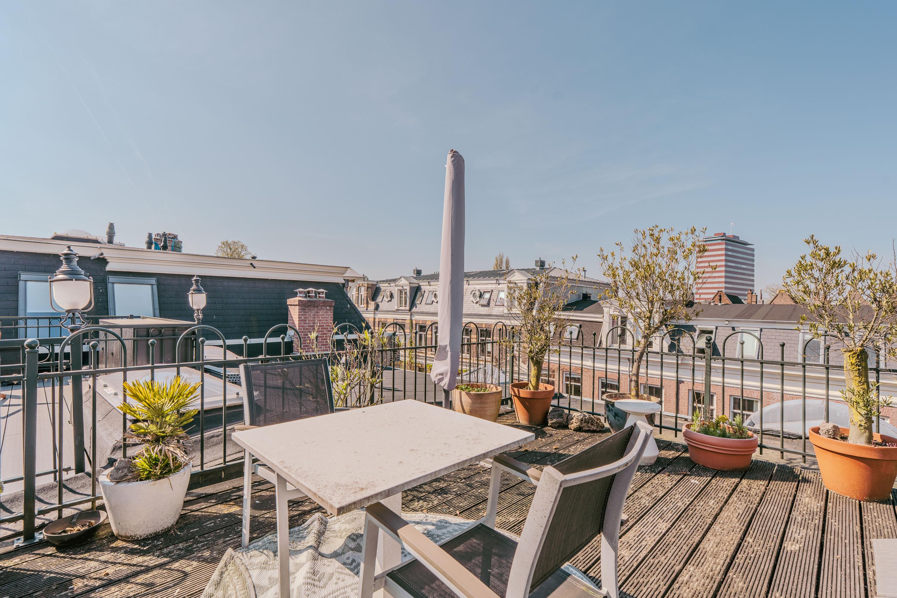 Extremely charming, bright, and spacious apartment (approx. 223 m²) spread over three floors plus a generous rooftop terrace! This expansive apartment is located on one of the most prestigious streets in De Pijp and features high ceilings, a large living room and kitchen equipped with luxury built-in appliances, four bedrooms, two balconies, a walk-in wardrobe, and a home office! The rooftop terrace (approx. 23 m²) is the perfect spot to enjoy the sun until late in the evening and offers stunning views over both the city and the Amstel River. Furthermore, the property is located on freehold land, so no ground lease applies.