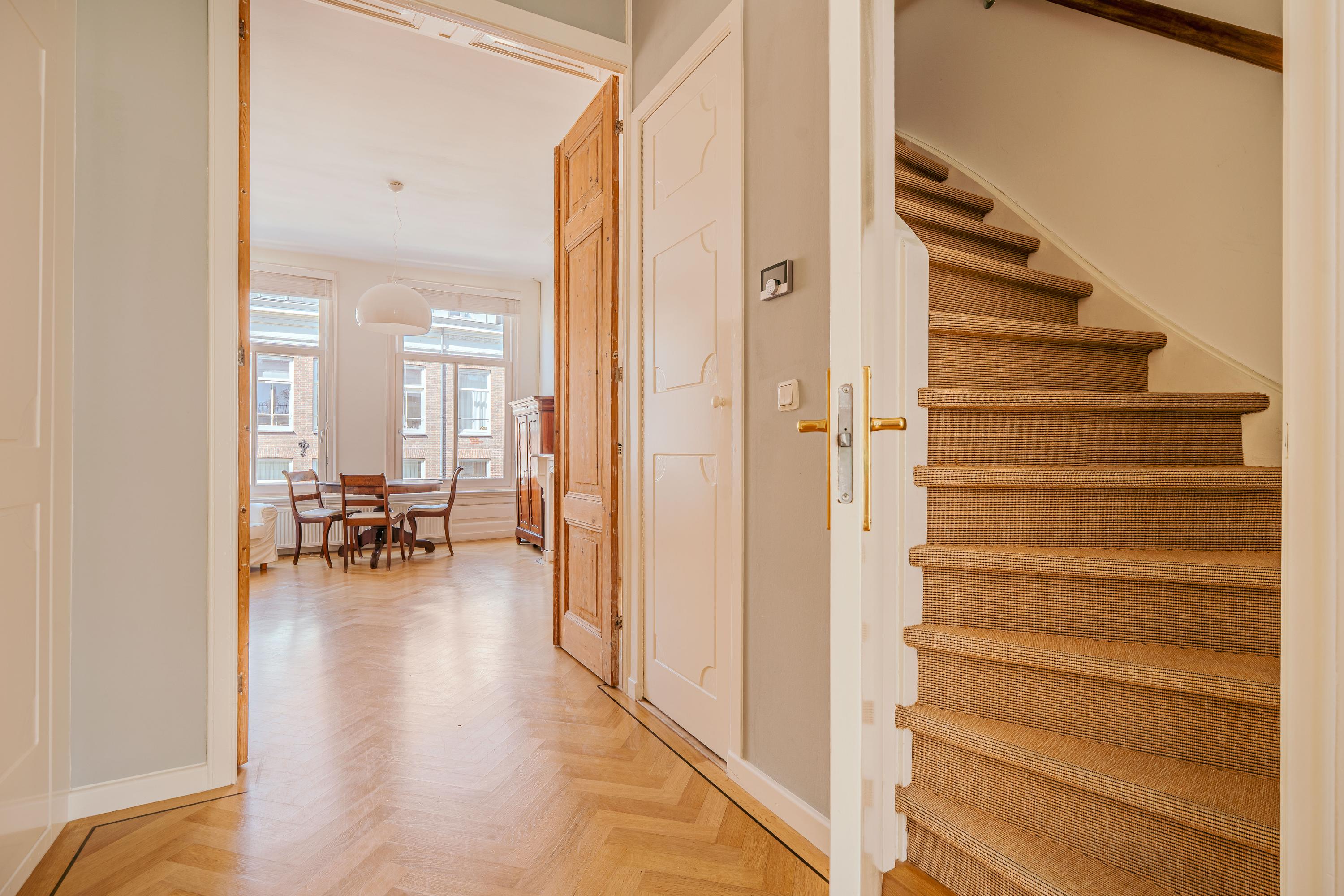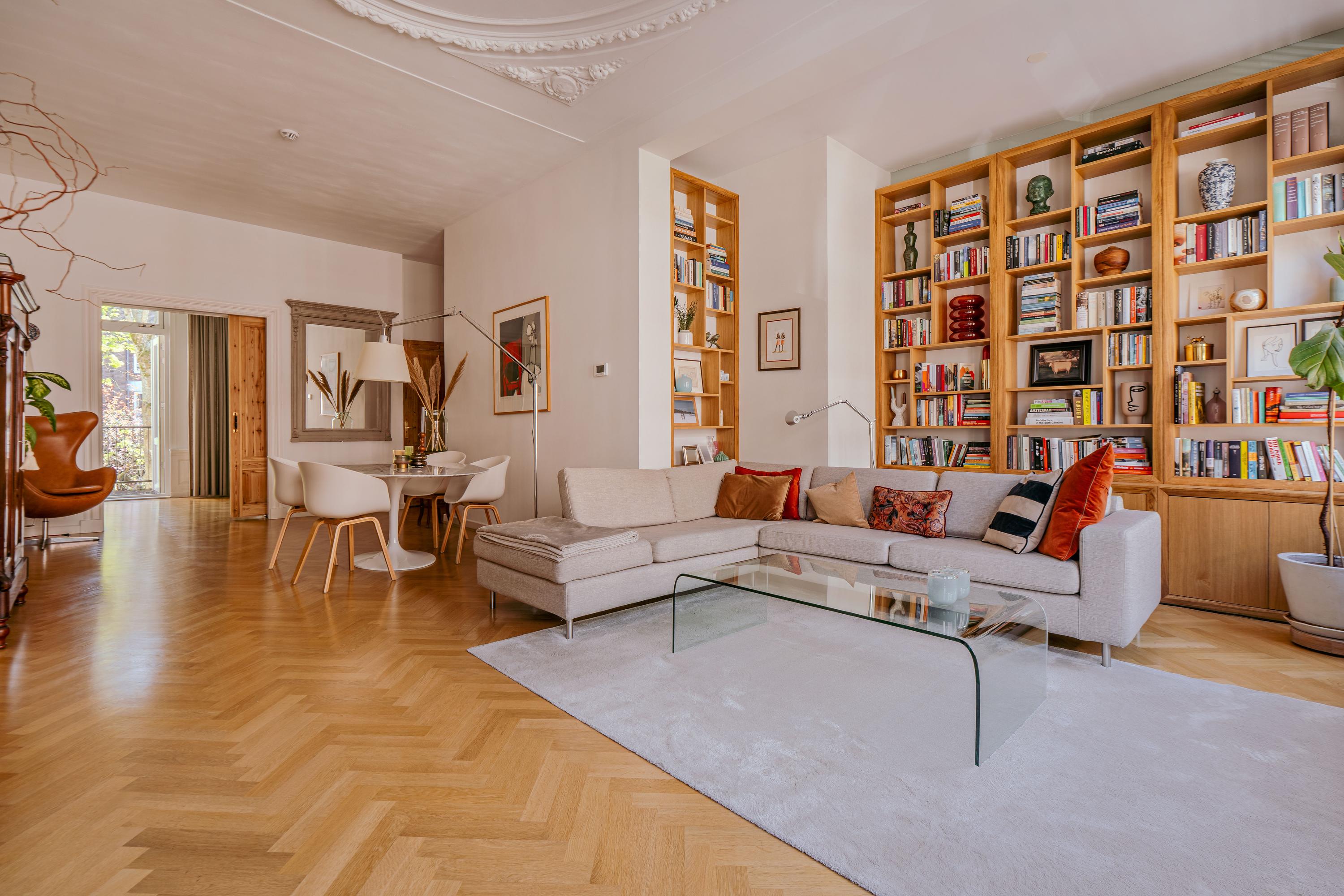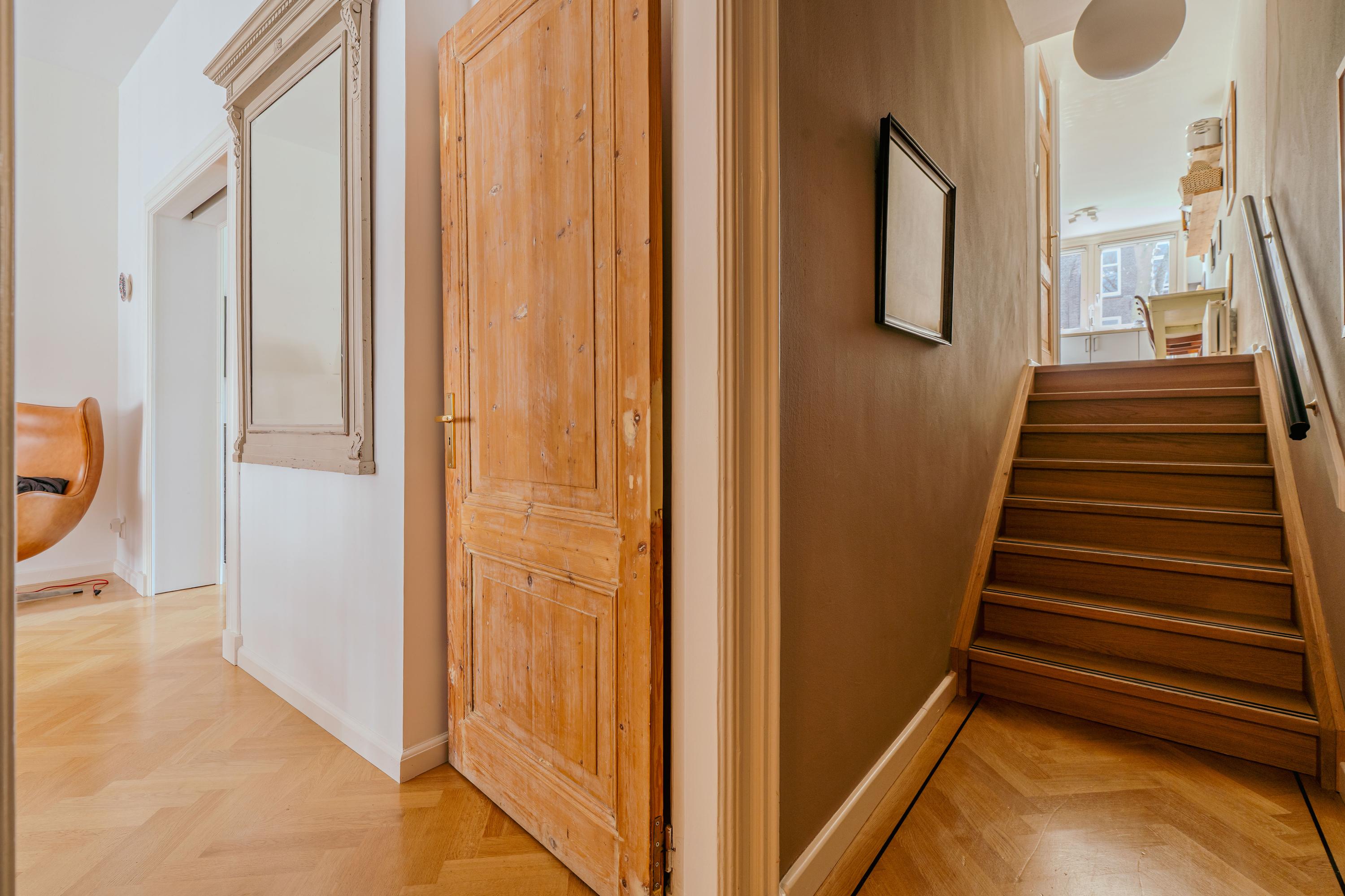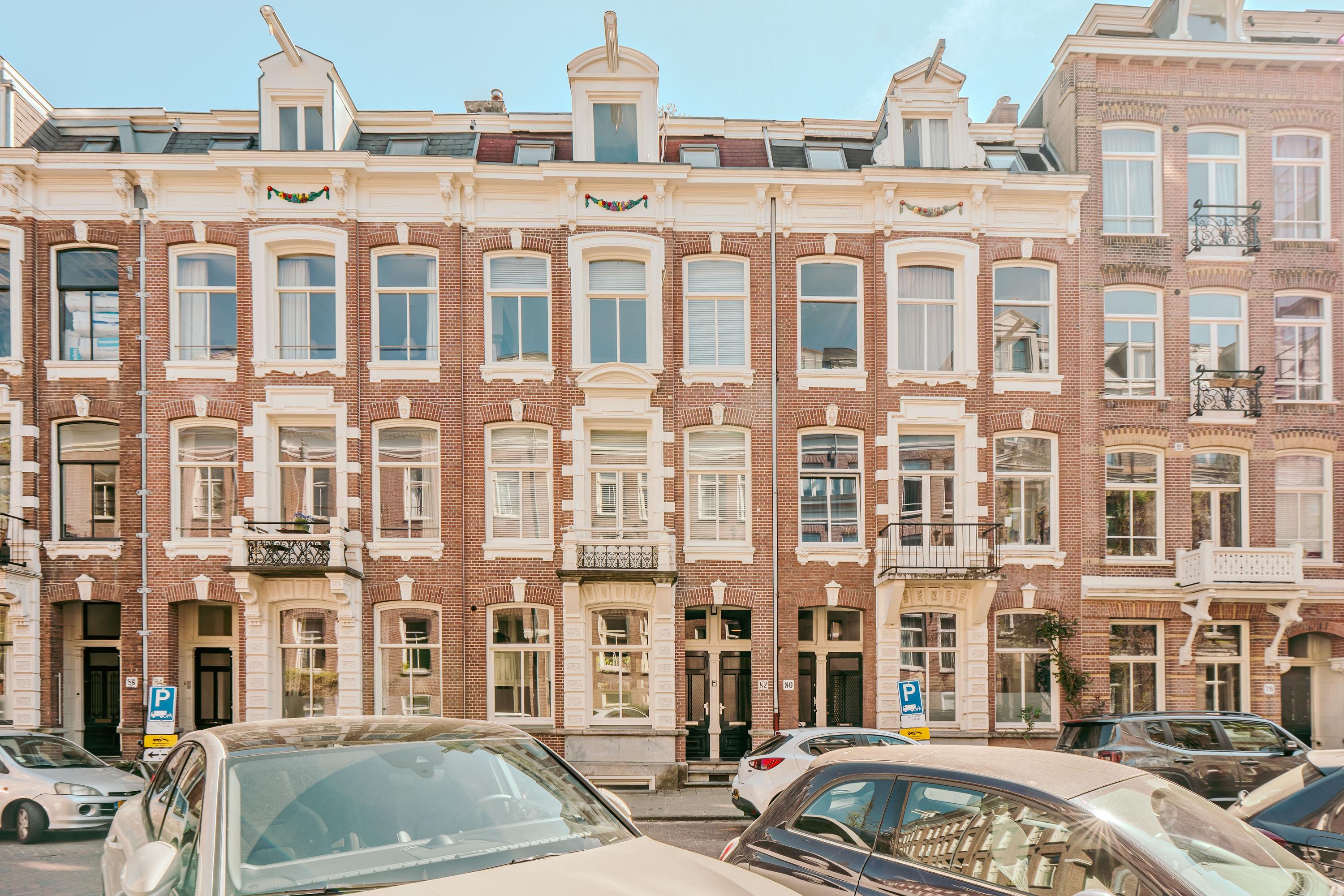 Extremely charming, bright, and spacious apartment (approx. 223 m²) spread over three floors plus a generous rooftop terrace! This expansive apartment is located on one of the most prestigious streets in De Pijp and features high ceilings, a large living room and kitchen equipped with luxury built-in appliances, four bedrooms, two balconies, a walk-in wardrobe, and a home office! The rooftop terrace (approx. 23 m²) is the perfect spot to enjoy the sun until late in the evening and offers stunning views over both the city and the Amstel River. Furthermore, the property is located on freehold land, so no ground lease applies.
