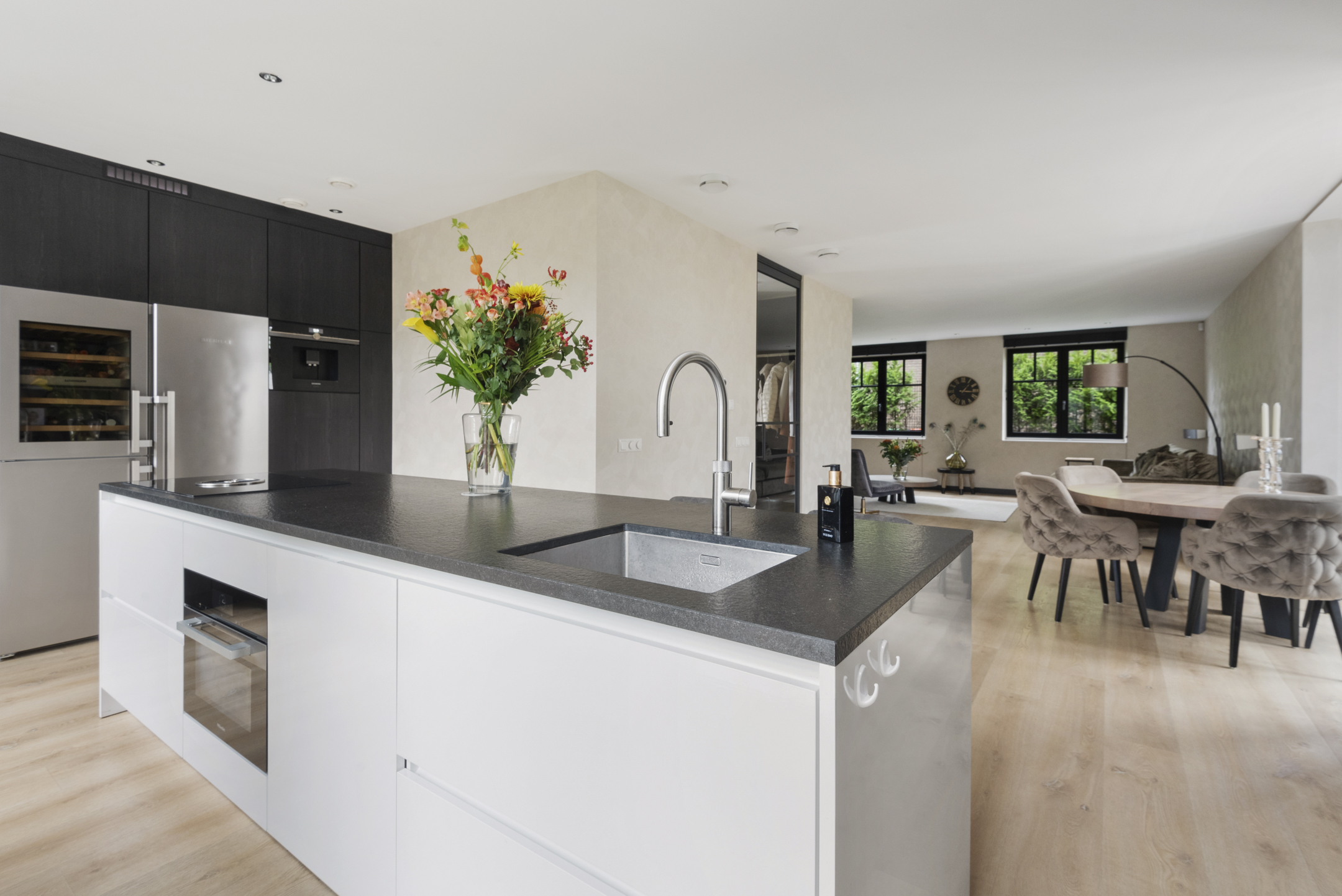 With a living area of no less than 181 m², 4 spacious bedrooms, 2 luxurious bathrooms and an attractive kitchen/diner, this is a dream home for families looking for comfort and style. The villa, built in 2020, radiates warmth and luxury and is finished in detail. The sunny southeast-facing garden offers a lot of privacy and space, so you can enjoy yourself in peace. There is also a detached canopy with lounge area and a beautiful swimming pool. The house also has a spacious garage and parking for several cars on site.