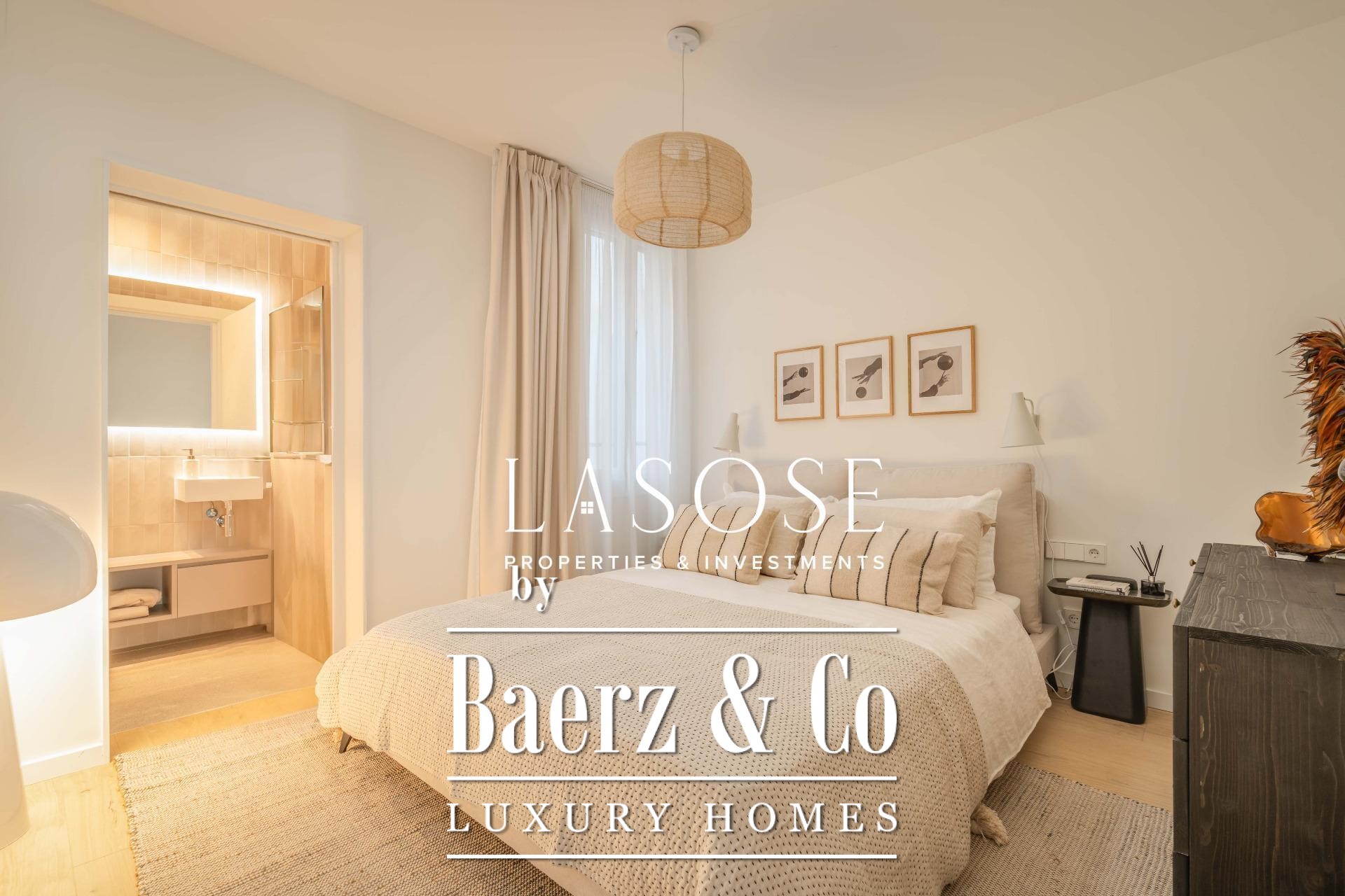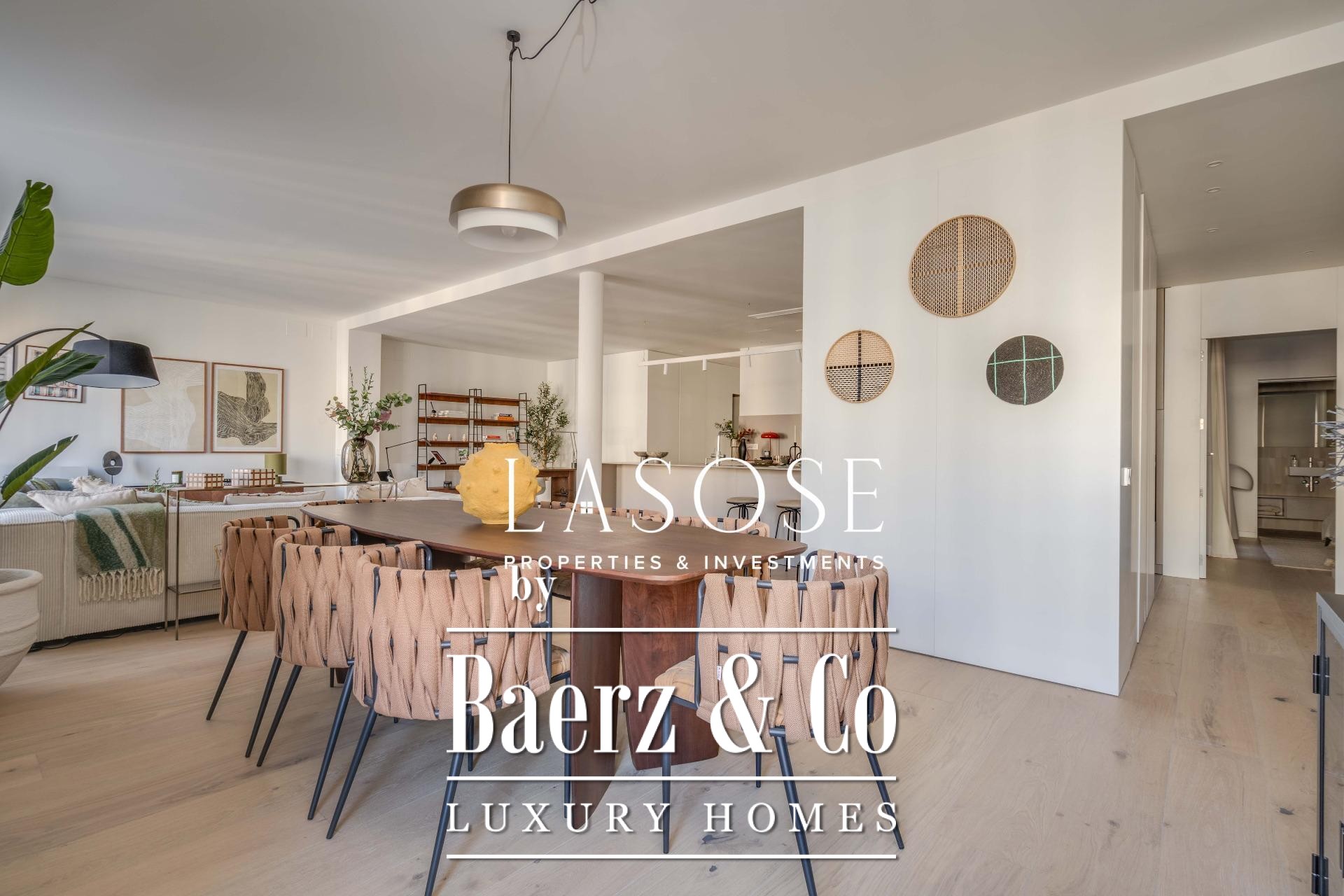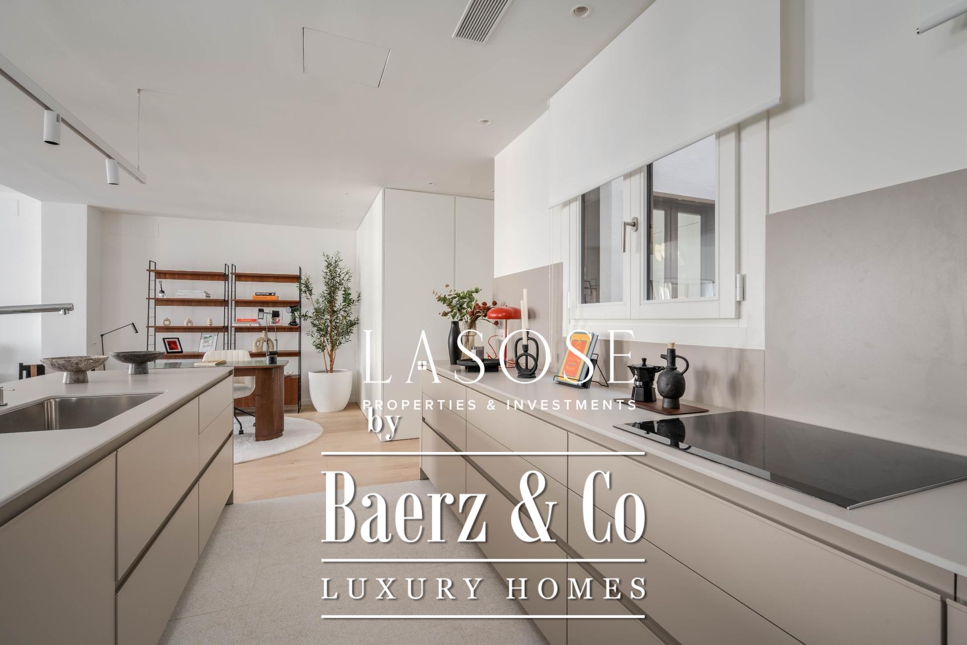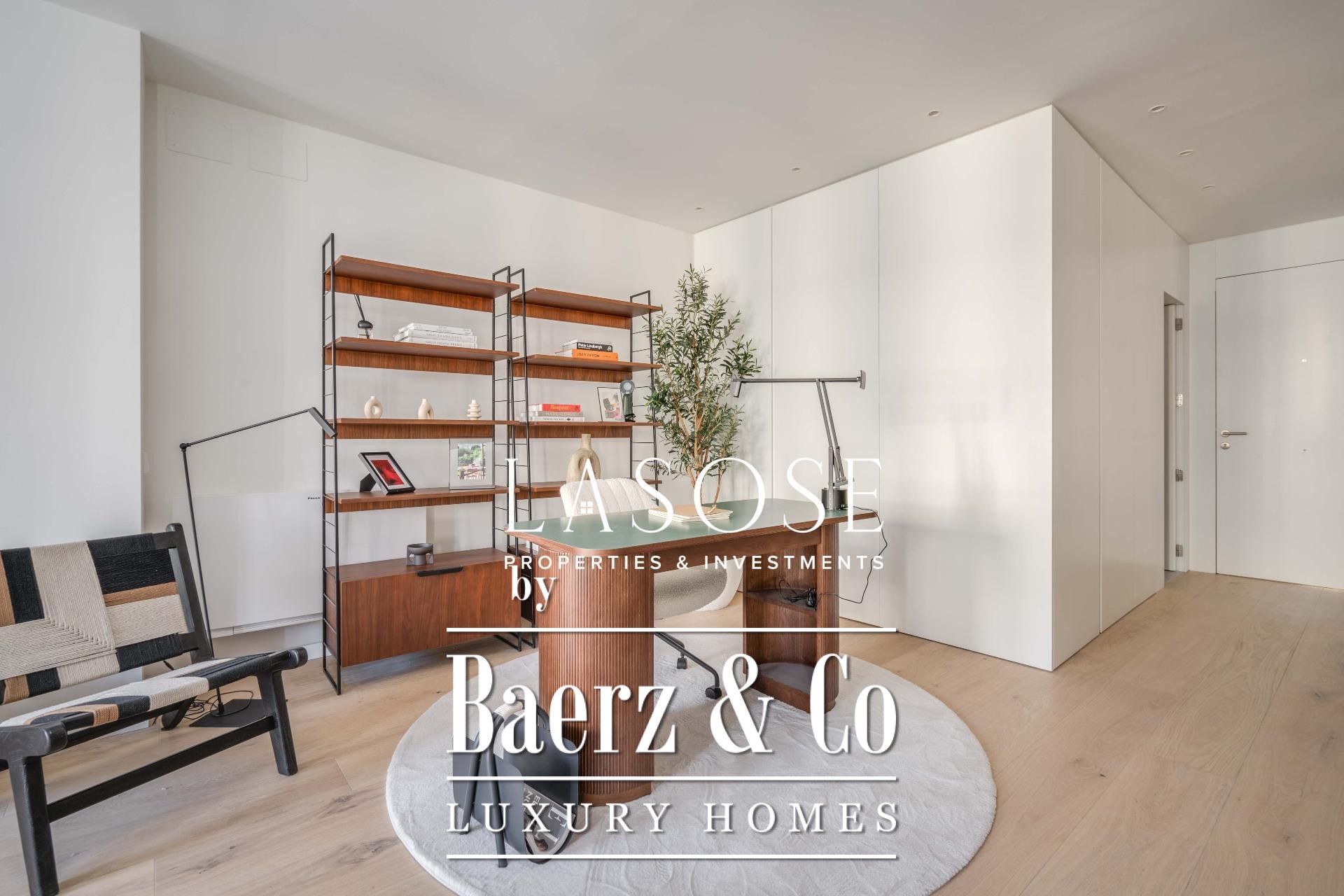 Finishes by Estudio Vilablanch set a restrained, elegant tone, merging modern appliances and technology with signature design. The interior living spaces flow with thoughtful functionality, including fitted wardrobes, appliances, and a dedicated washing room, alongside features such as heating, video intercom, and elevator access.