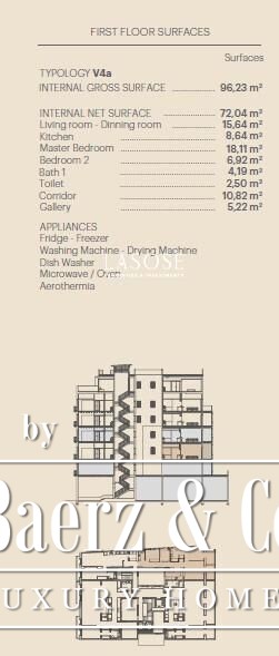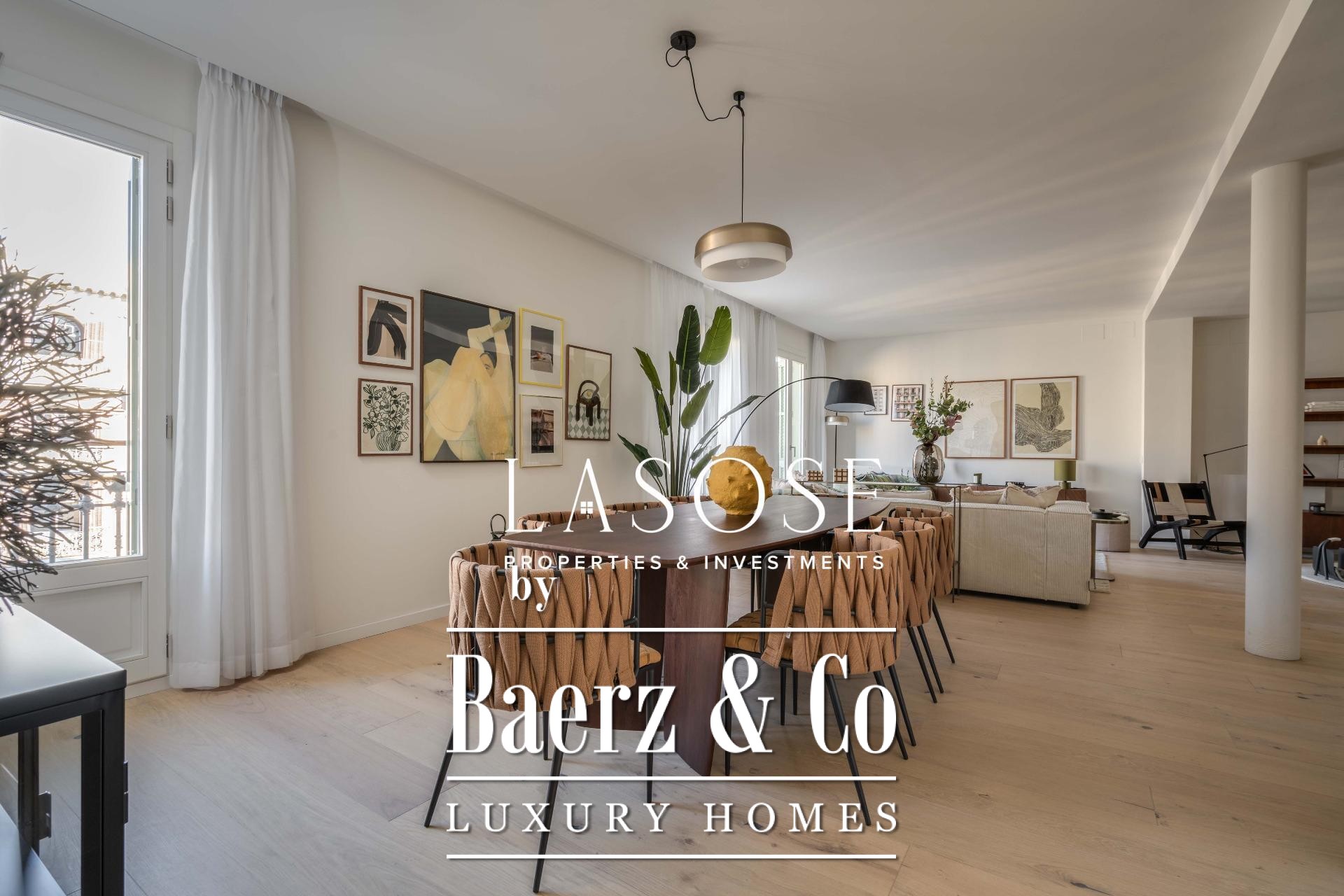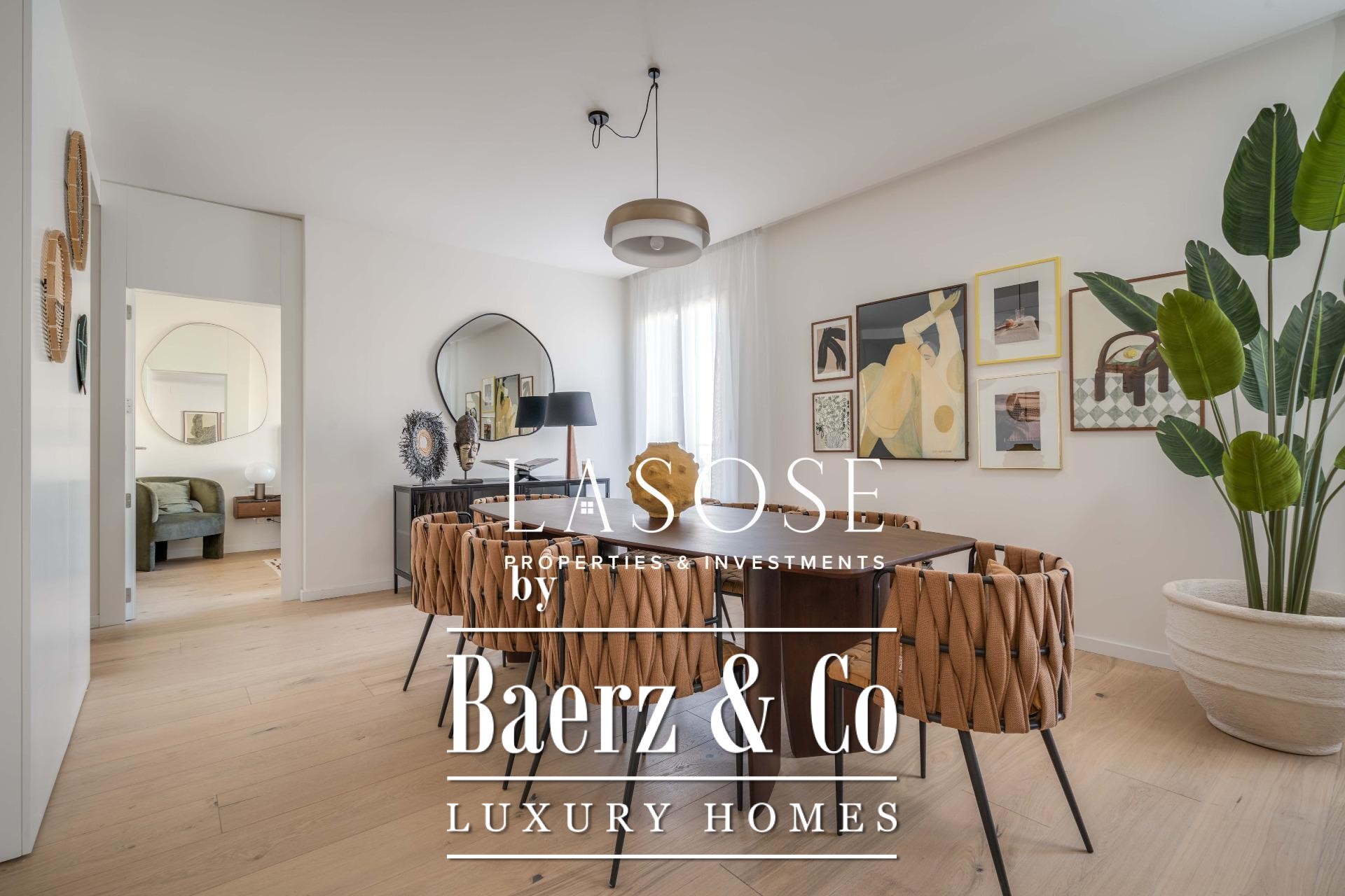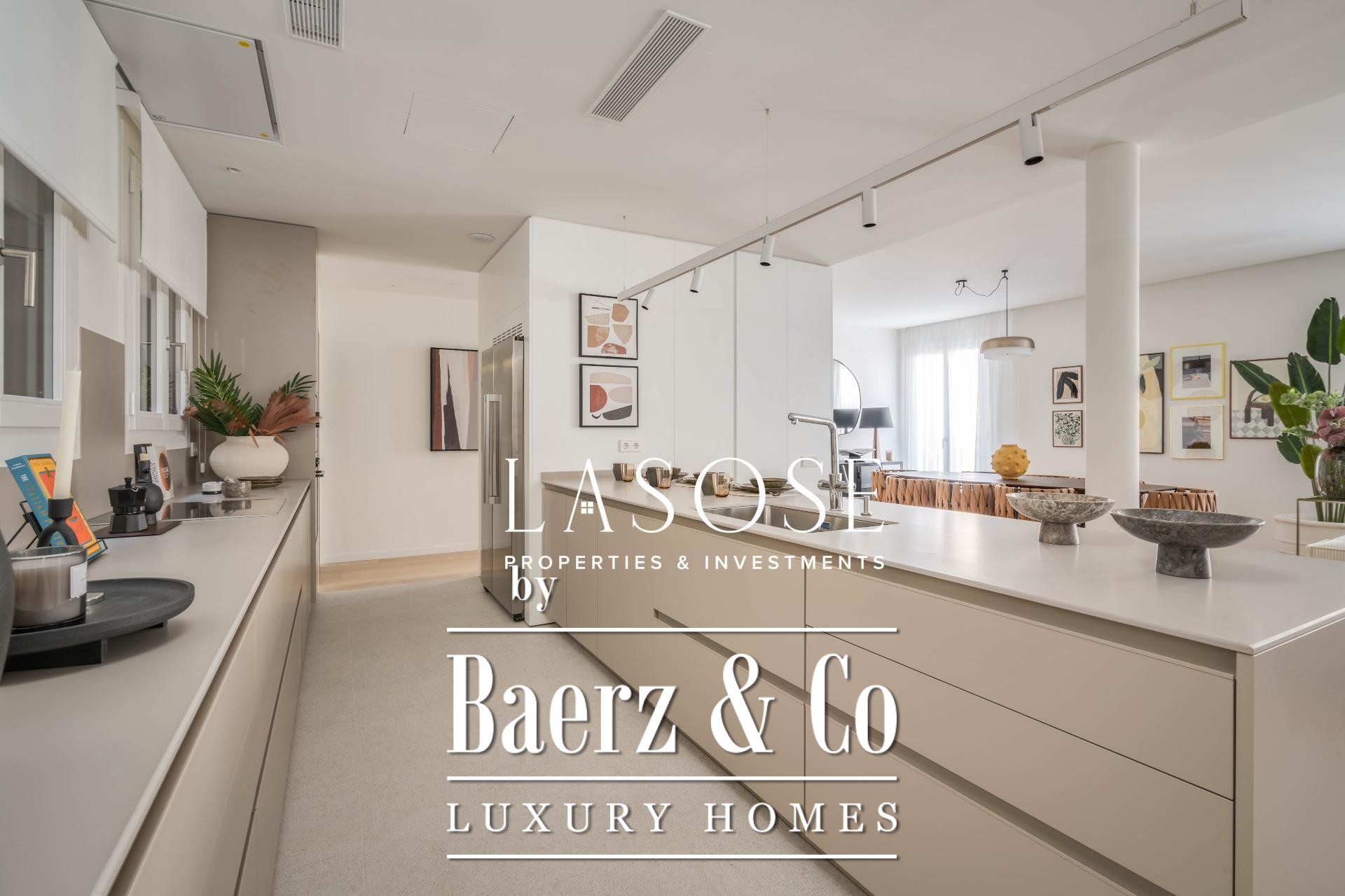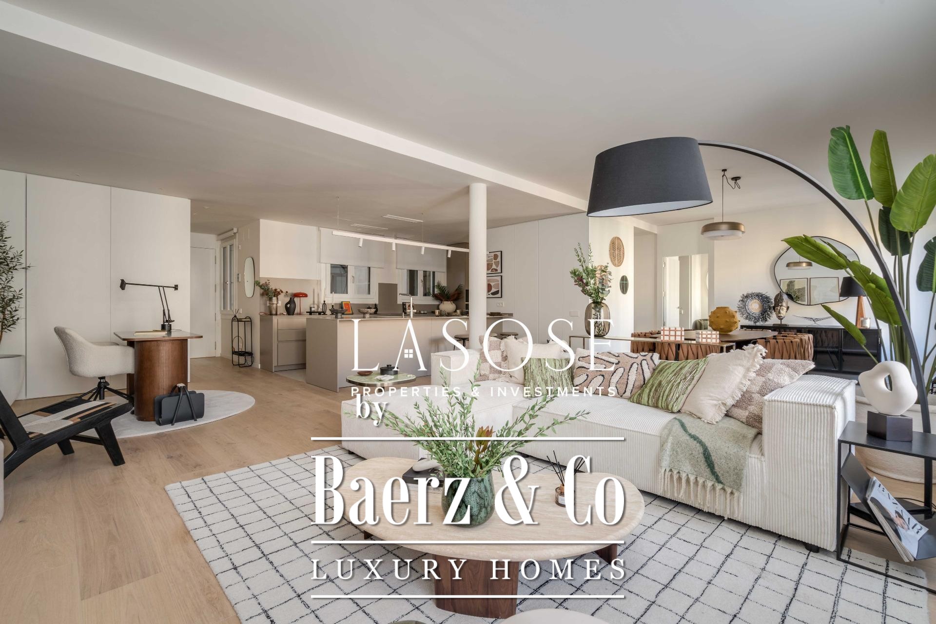 Finishes by Estudio Vilablanch set a restrained, elegant tone, merging modern appliances and technology with signature design. The interior living spaces flow with thoughtful functionality, including fitted wardrobes, appliances, and a dedicated washing room, alongside features such as heating, video intercom, and elevator access.