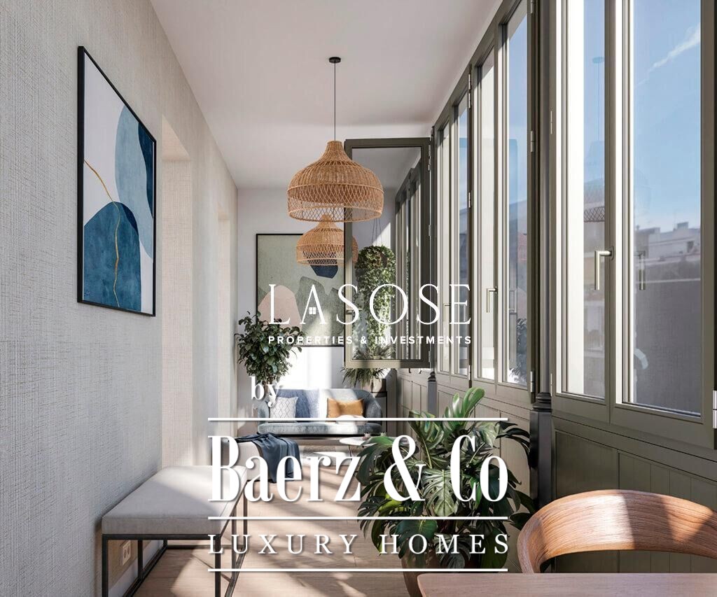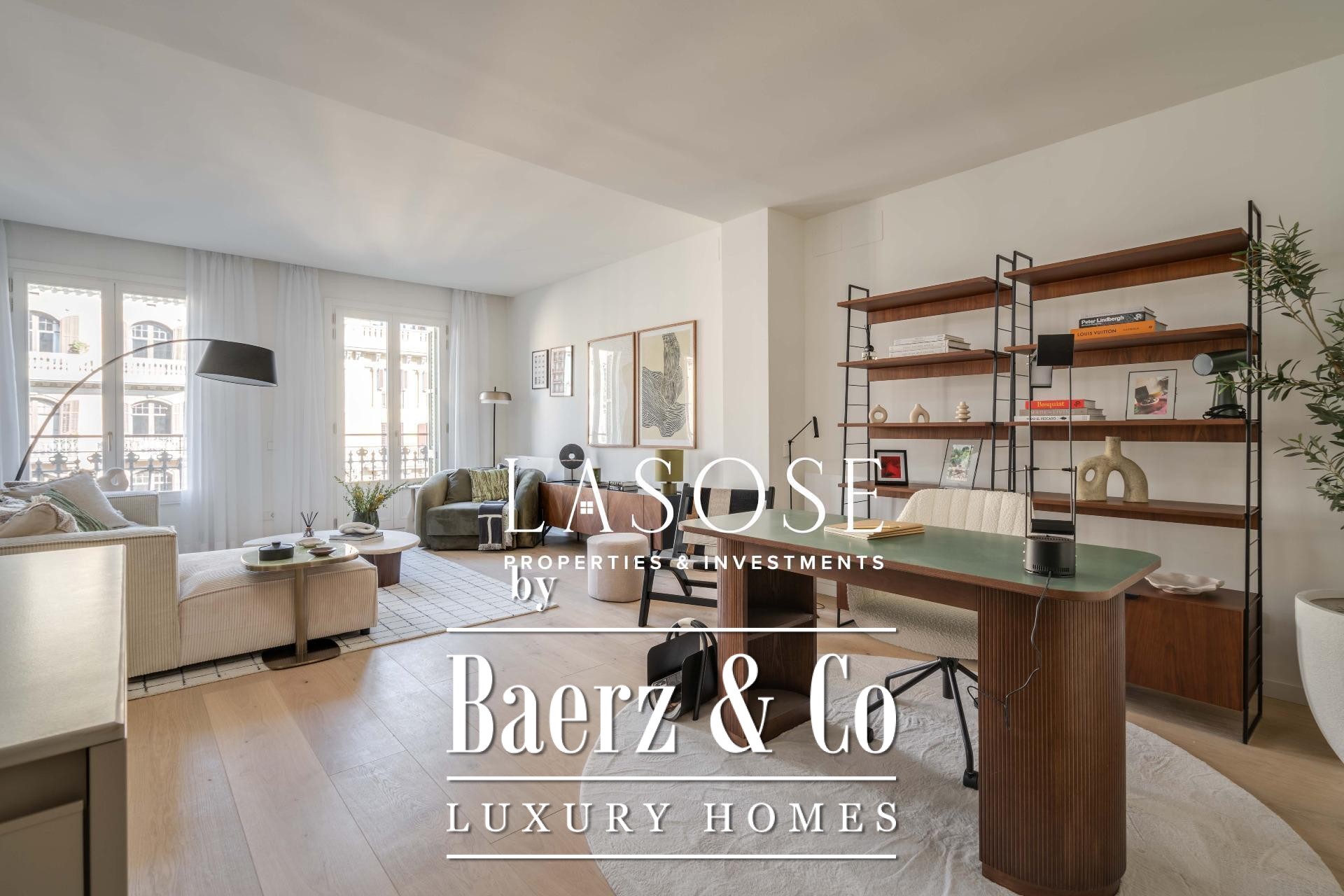 Within these walls, light moves fluidly between spaces, accentuating clean lines and generous proportions. The building integrates seamlessly with the distinctive rhythm of Eixample, whose octagonal blocks, broad avenues, and peerless connectivity set the pace of contemporary Barcelona living. Amenities include elevator access, built-in wardrobes, and a dedicated washing room, all composed without compromise.