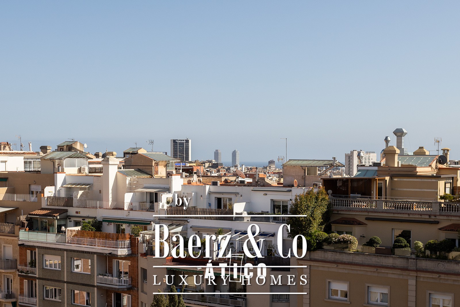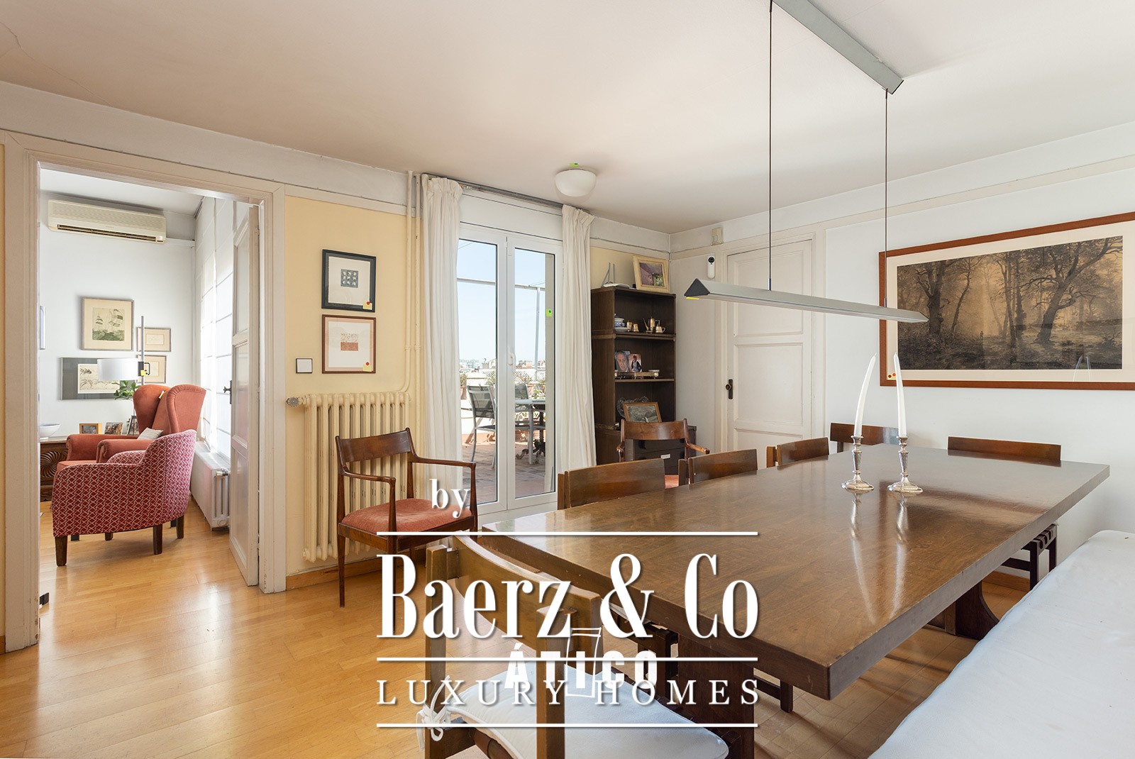 This attic Barcelona penthouse in Turó Park offers 250 m² of refined potential, inviting personalization within one of the city’s most desired enclaves. The layout includes six bedrooms, with two en suite, and four full bathrooms, each space oriented to preserve privacy while welcoming natural light.