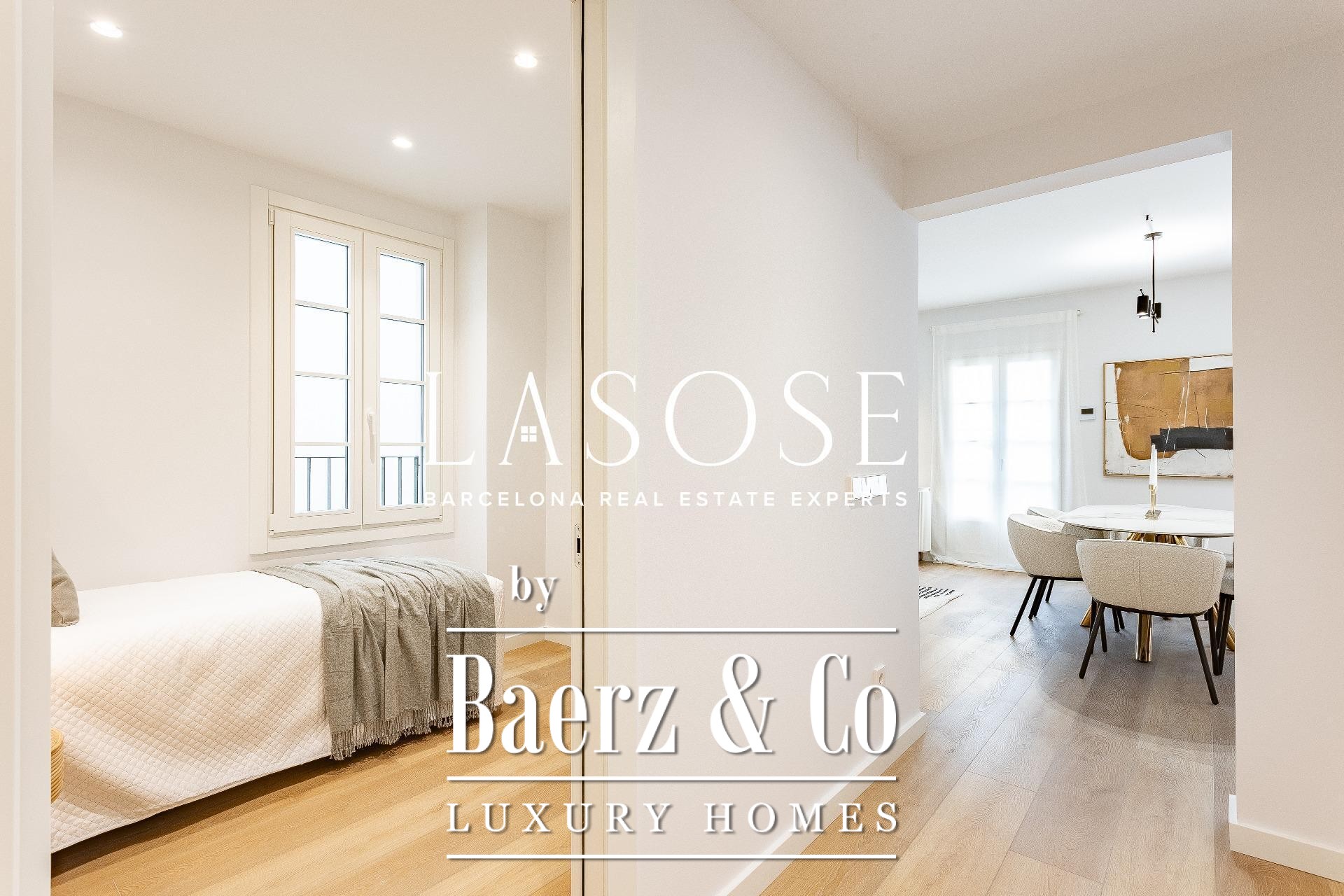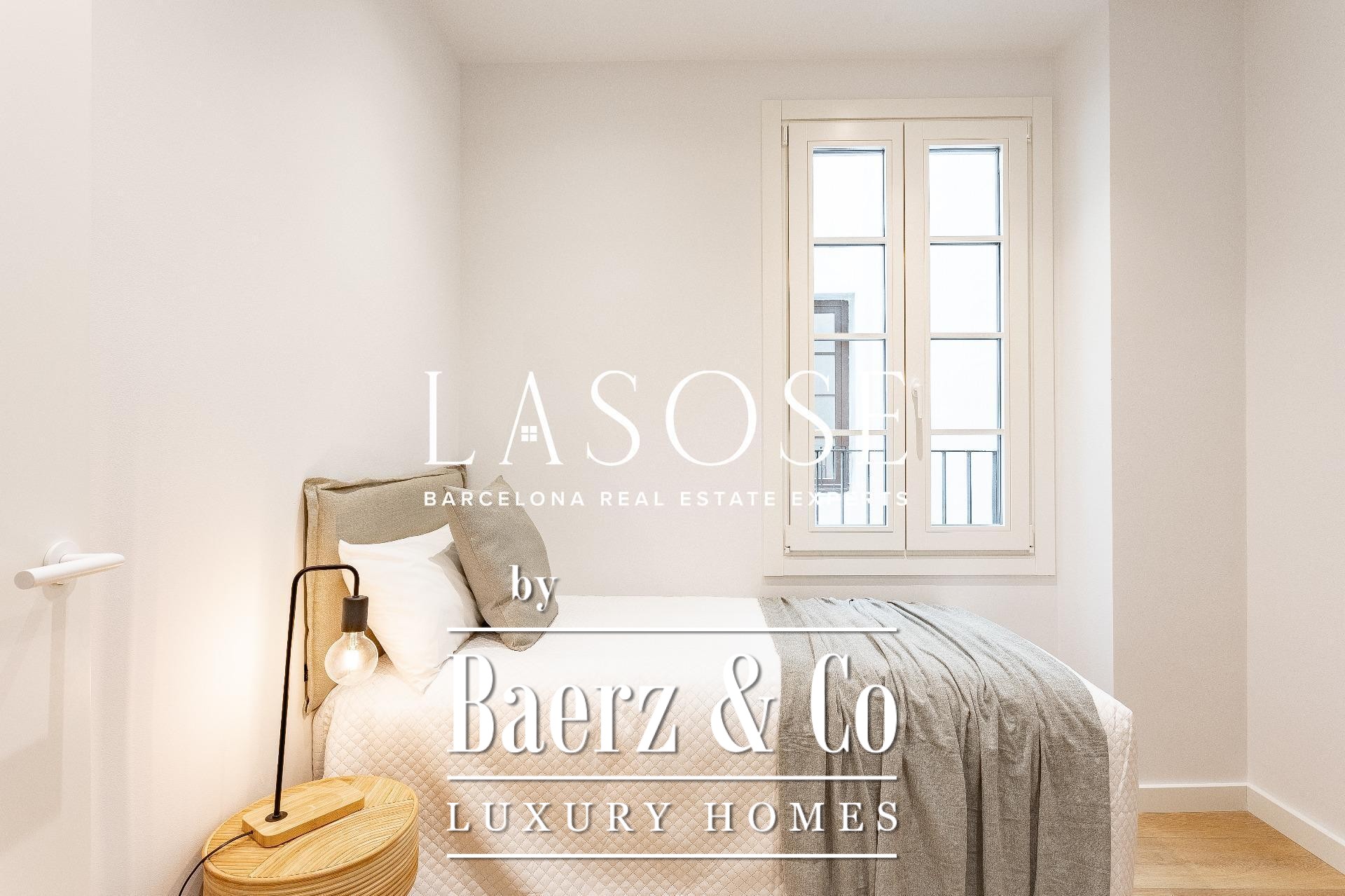 Apartment Barcelona offers an invitation to urban refinement in the heart of the city, nestled on Tallers street, just moments from Plaza Catalunya. This fully refurbished residence encompasses 108 m² of thoughtfully balanced living space, where three large bedrooms and two bathrooms flow seamlessly with open, light-filled interiors. The design is defined by understated contemporary lines and a functional layout, complemented by the preservation of original architectural features that echo the building’s heritage.