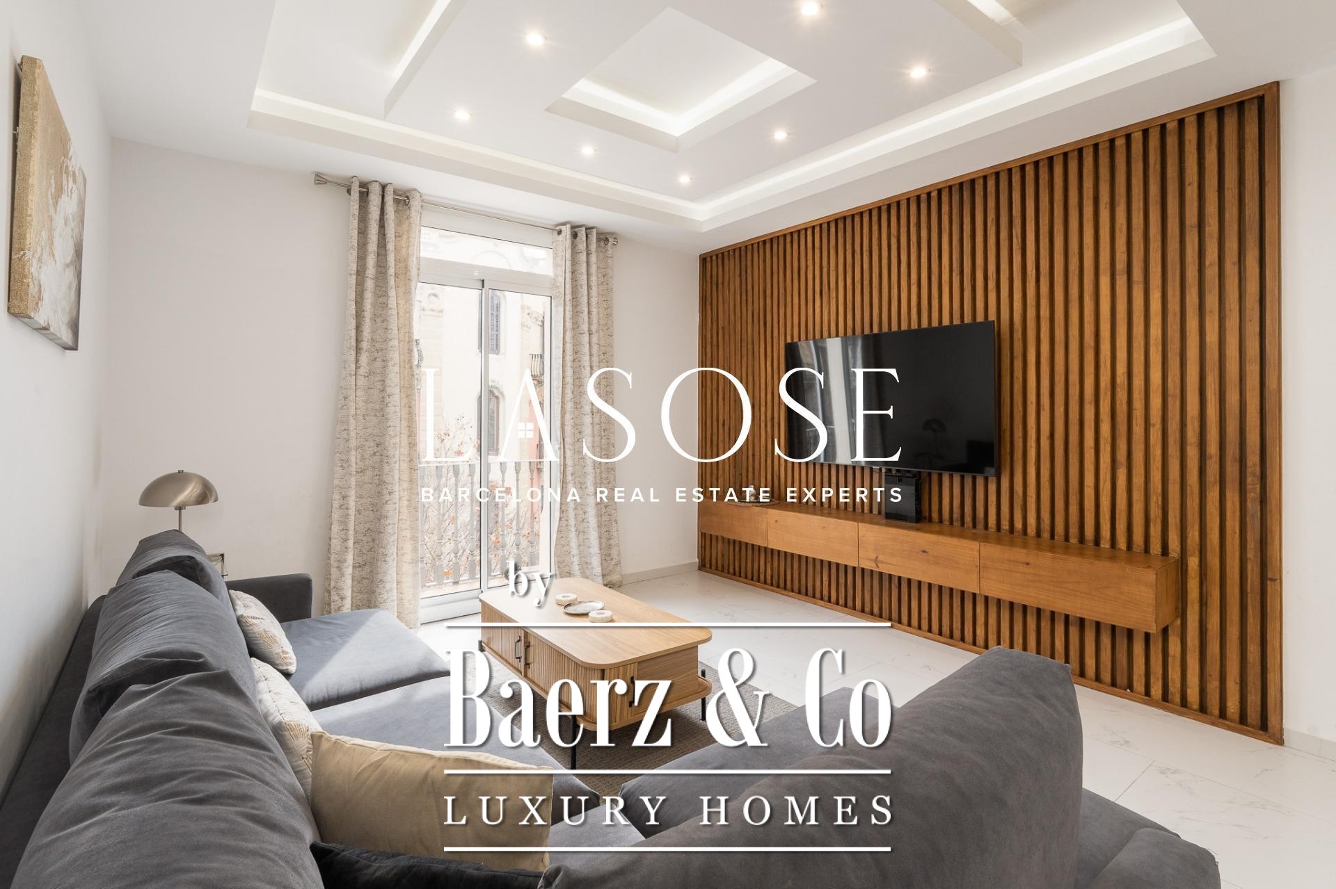 Ducted air conditioning for both hot and cold, aluminum carpentry, built-in wardrobes, and a focus on energy efficiency confirm the contemporary approach. The apartment is offered fully furnished. Outside, Rambla Catalunya and Passeig de Gràcia are moments away, with celebrated restaurants, boutiques, and effortless transport access, placing the rhythm of Barcelona at your doorstep—a move-in-ready home in Eixample Esquerra for those who value balance and urban convenience.