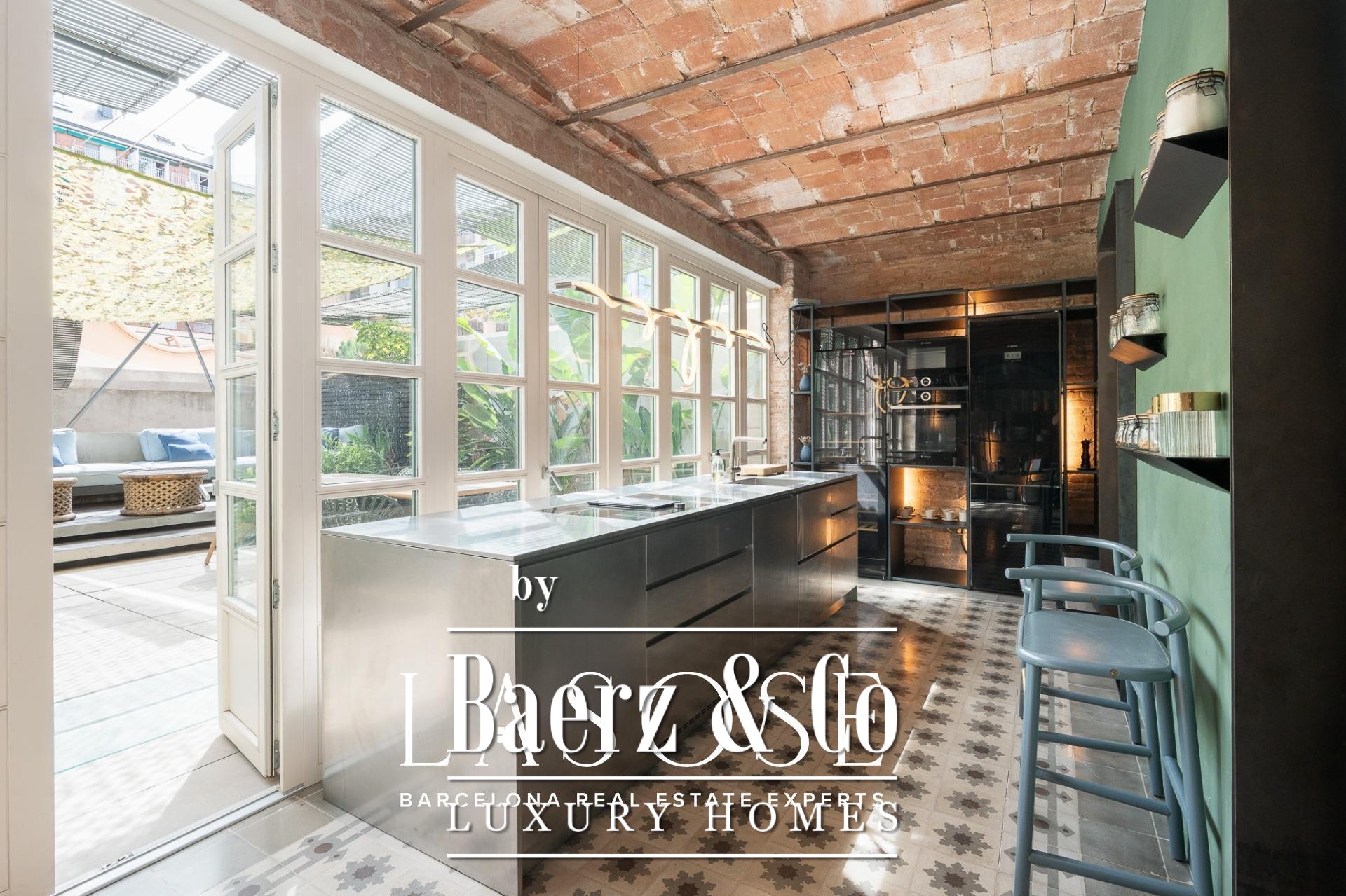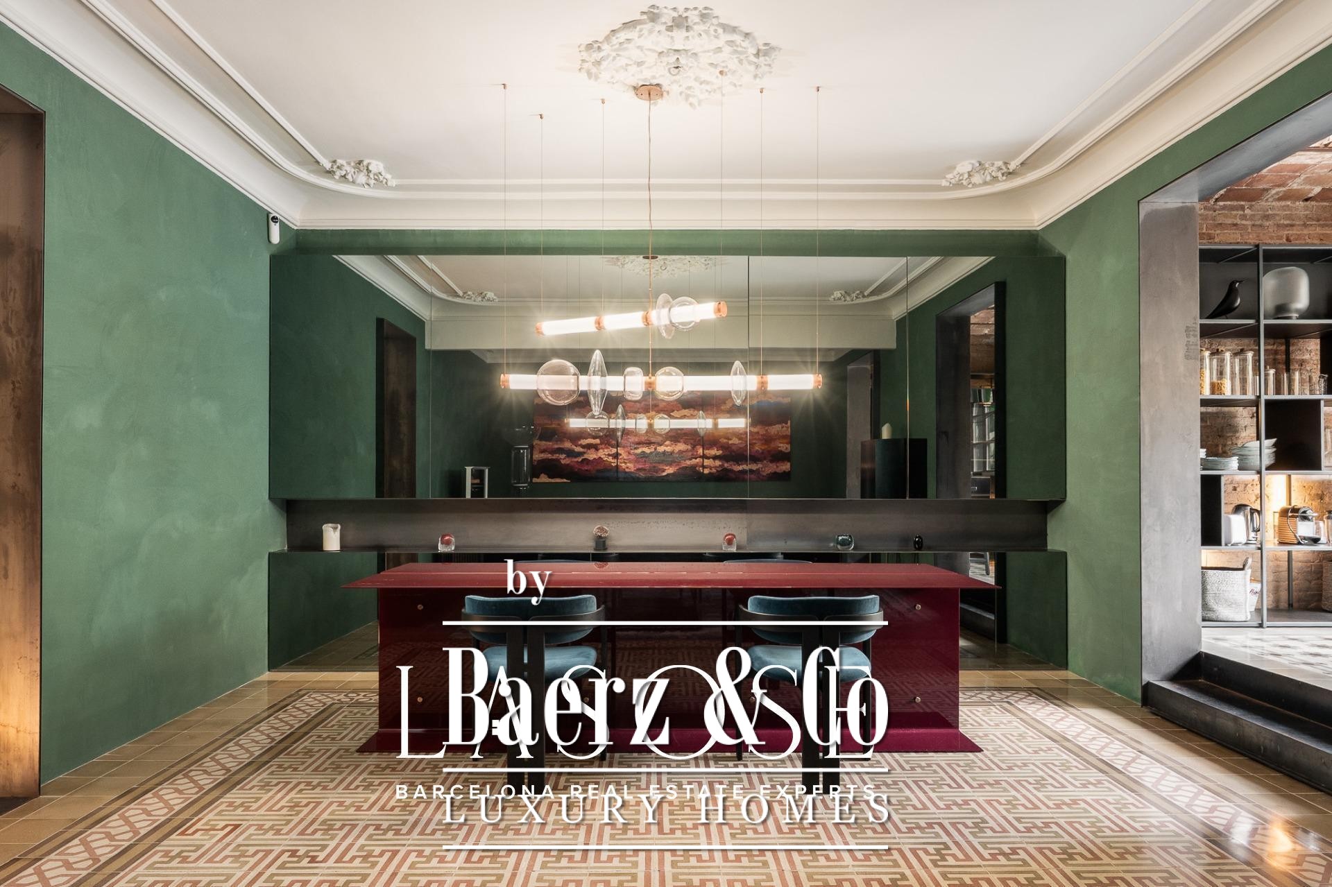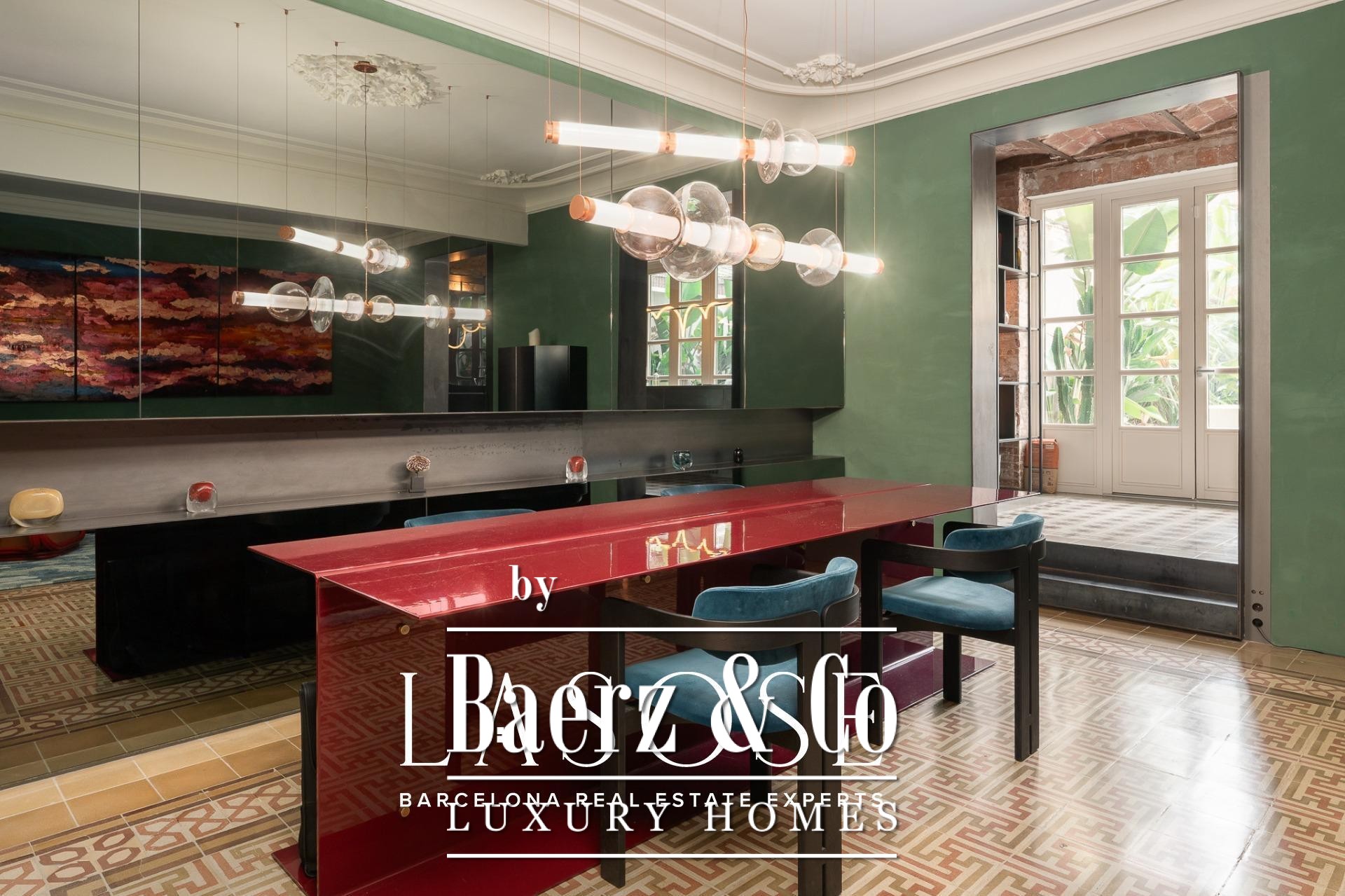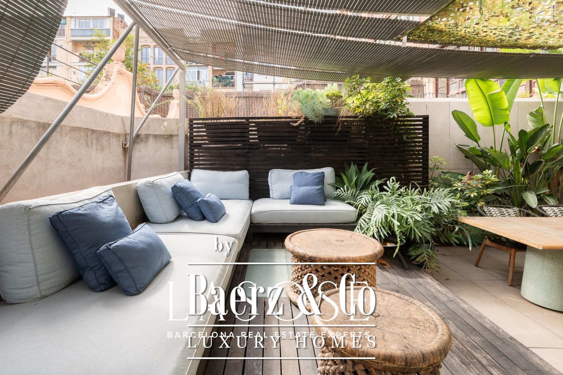 room, ideal for entertaining guests or enjoying with family. The high ceilings provide a sense of spaciousness and brightness, while the semi-open kitchen allows natural light to flow throughout all areas. From here, there is direct access to the 60 sqm terrace, with lush greenery and south-facing orientation, making this outdoor area a natural extension of the interior. A serene spot overlooking a quiet courtyard: the perfect place to escape the hectic rhythm of the city.. . Eixample is one of the most sought-after districts in Barcelona, making the location ideal for both a first or second residence. Having such a spacious and private outdoor area is a real privilege today, allowing you to enjoy the sun and Mediterranean climate at any time.. . In short, this property perfectly combines the best of modernist architecture with the comfort of a contemporary home. Original ceiling mouldings, exposed brick walls, mosaic hydraulic tiles, and Catalan vaulted ceilings are some of the period features that make this apartment truly one of a kind in Barcelona.