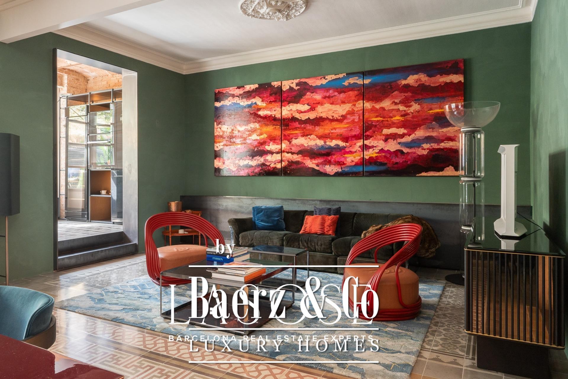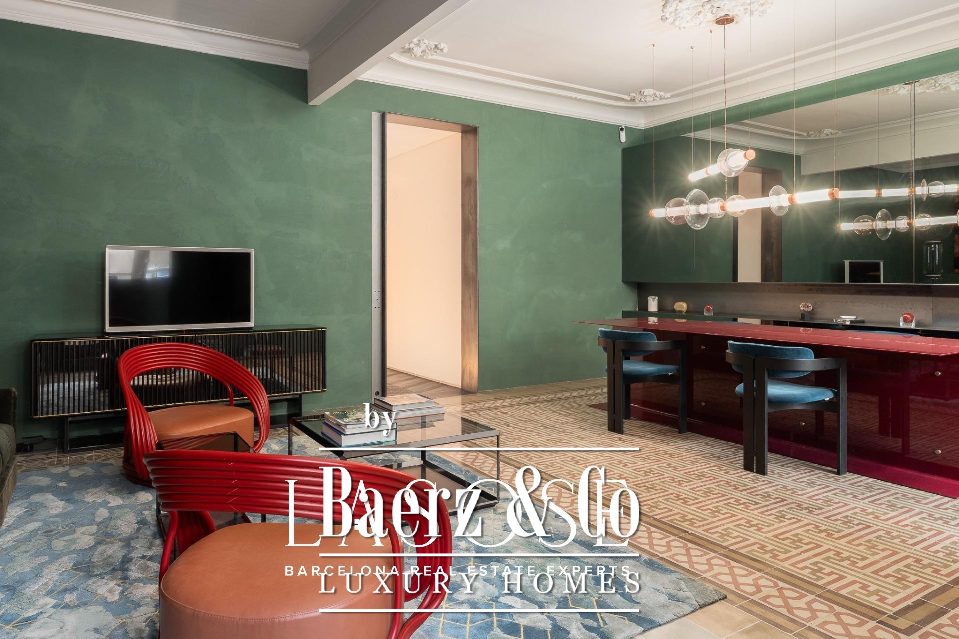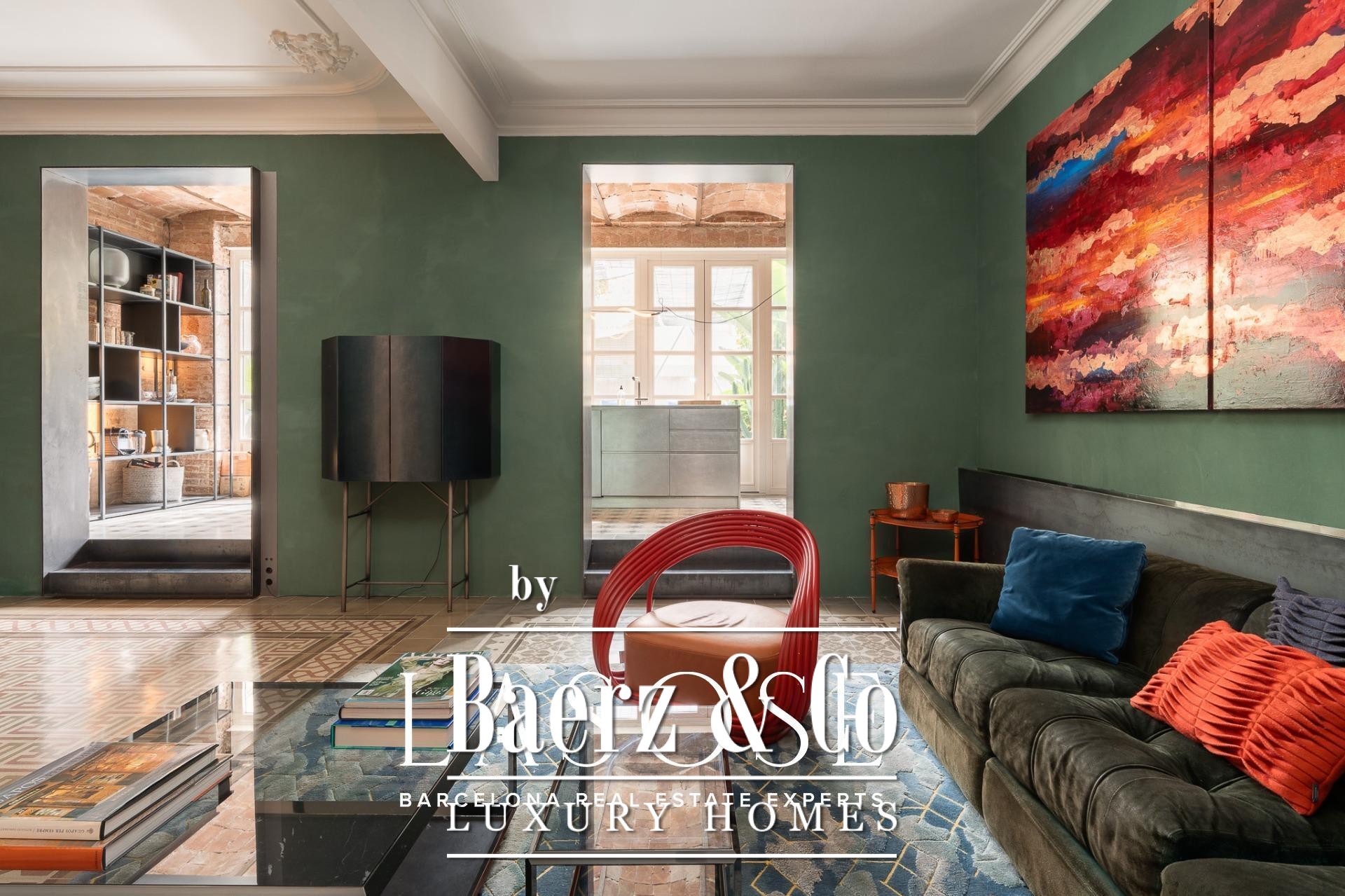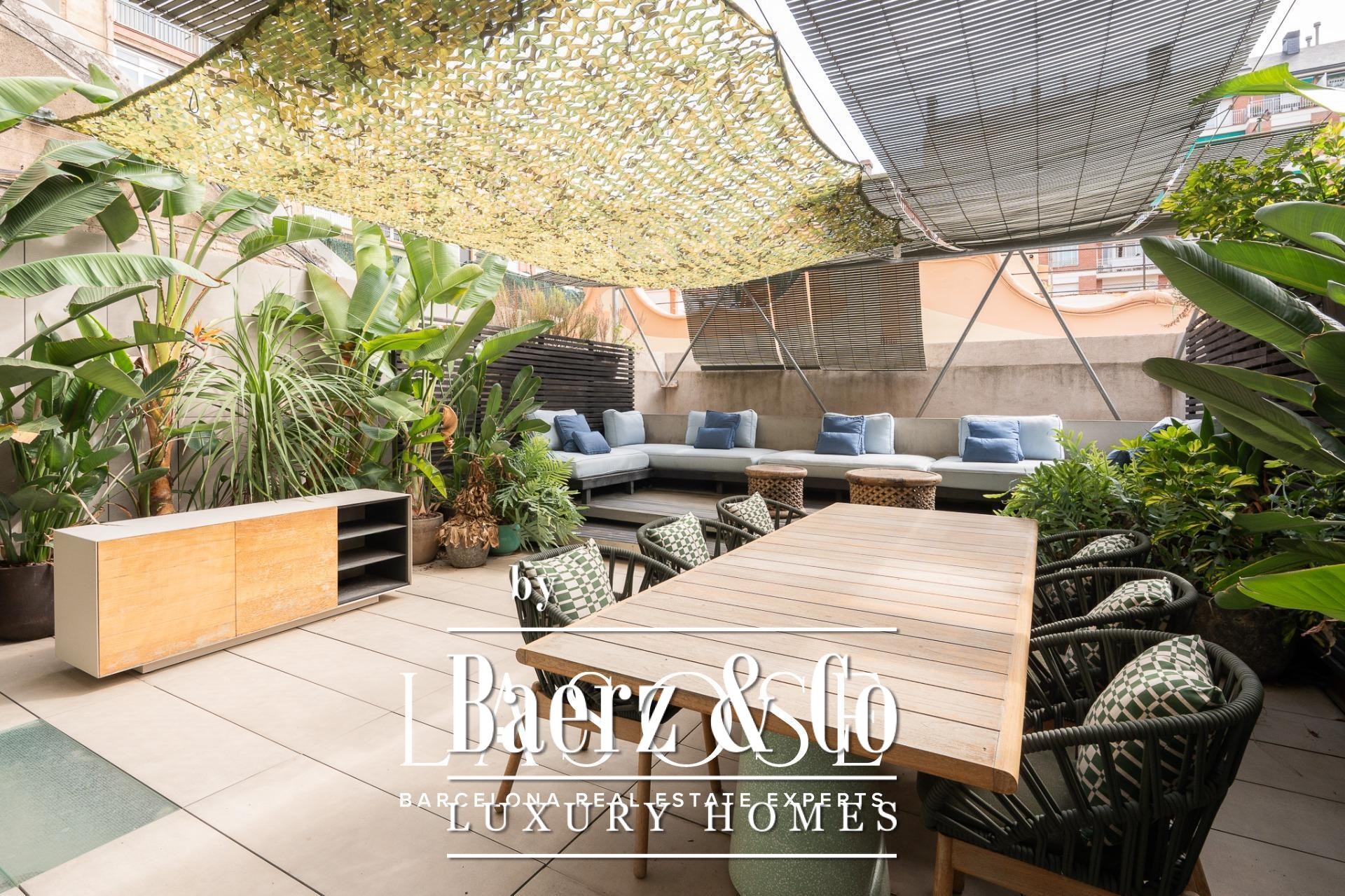 room, ideal for entertaining guests or enjoying with family. The high ceilings provide a sense of spaciousness and brightness, while the semi-open kitchen allows natural light to flow throughout all areas. From here, there is direct access to the 60 sqm terrace, with lush greenery and south-facing orientation, making this outdoor area a natural extension of the interior. A serene spot overlooking a quiet courtyard: the perfect place to escape the hectic rhythm of the city.. . Eixample is one of the most sought-after districts in Barcelona, making the location ideal for both a first or second residence. Having such a spacious and private outdoor area is a real privilege today, allowing you to enjoy the sun and Mediterranean climate at any time.. . In short, this property perfectly combines the best of modernist architecture with the comfort of a contemporary home. Original ceiling mouldings, exposed brick walls, mosaic hydraulic tiles, and Catalan vaulted ceilings are some of the period features that make this apartment truly one of a kind in Barcelona.
