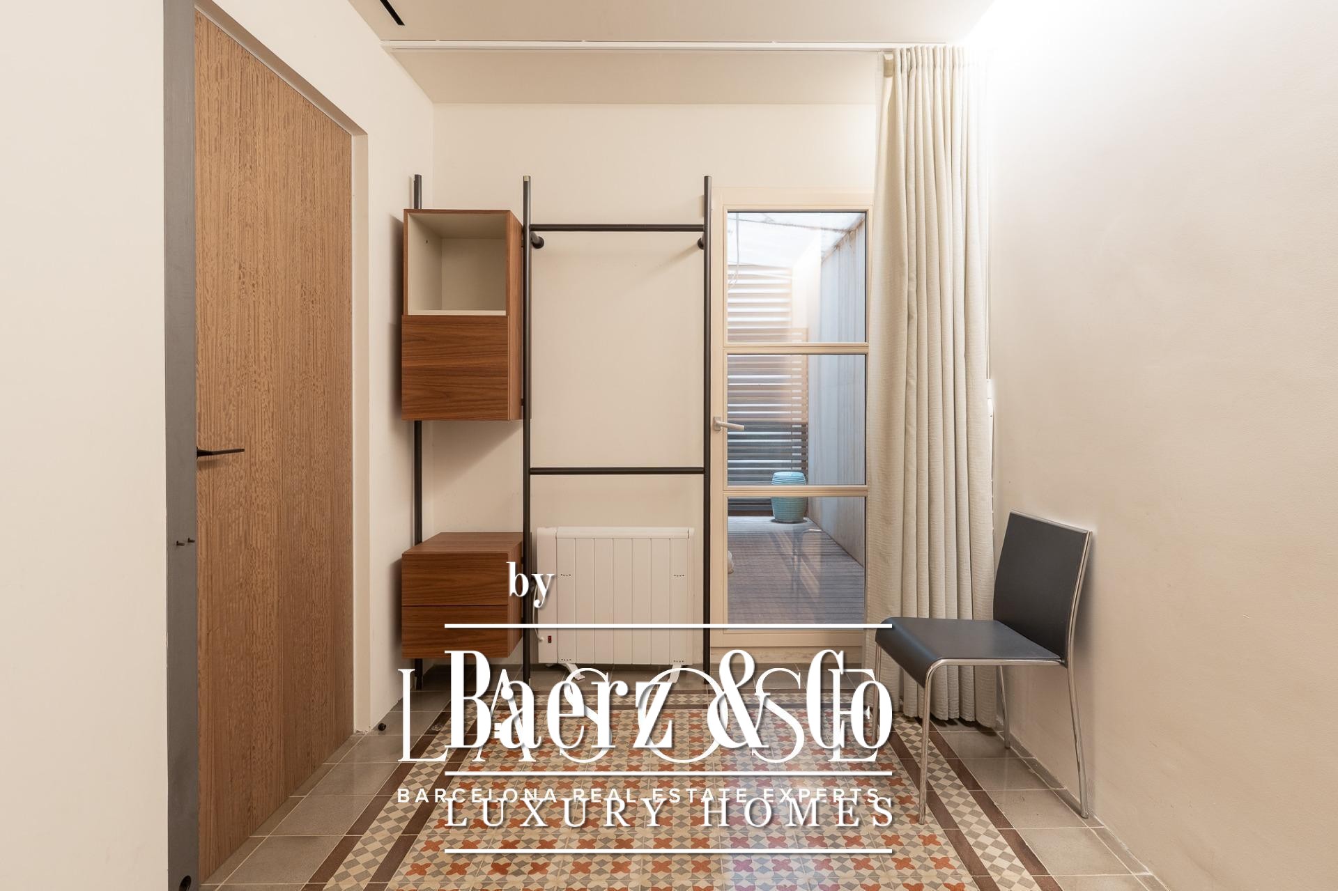 Exclusive luxury property located in a finca regia in the very heart of Eixample, featuring a wonderful 60 sqm decked terrace – a true private oasis in the city centre.. . This 120 sqm apartment has been designed as a unique piece by a renowned interior designer, who has created an authentic haven of peace and harmony. The property is offered with high-end designer furniture and carefully selected pieces, which can remain in the apartment if the buyer wishes. In addition, it has excellent investment potential, as it can be rented out for €4,500 per month.. . The layout is very intuitive and functional. Upon entering, we find the night area, composed of two spacious double bedrooms and two bathrooms. The master suite retains its original vaulted ceilings and connects to an en-suite bathroom that masterfully combines period details with modern, exclusive design. The second double bedroom opens onto an interior patio through glass doors and is conveniently located next to a second independent bathroom.. . The day area consists of a large living-dining
