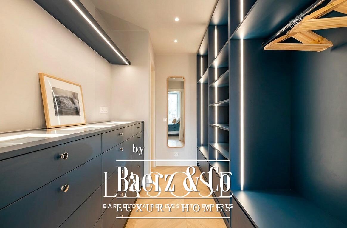 On the lower floor, three bedrooms are framed by access to an 18 m² balcony, allowing generous natural light to permeate the night area. The master suite features a walk-in closet and an en-suite bathroom, while two further bedrooms share a contemporary bath. Both floors benefit from independent entrances, complementing the discreet, flexible design.