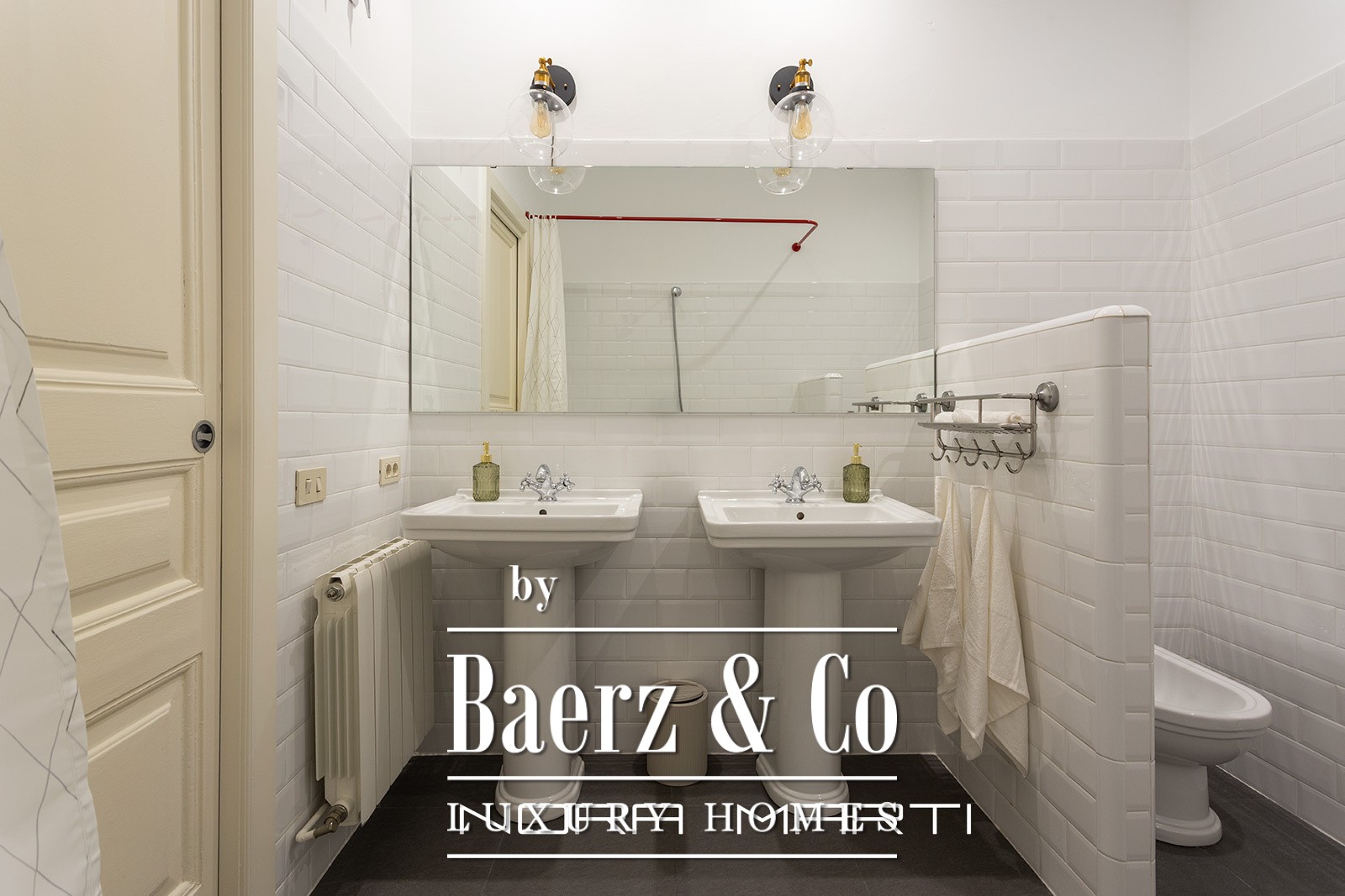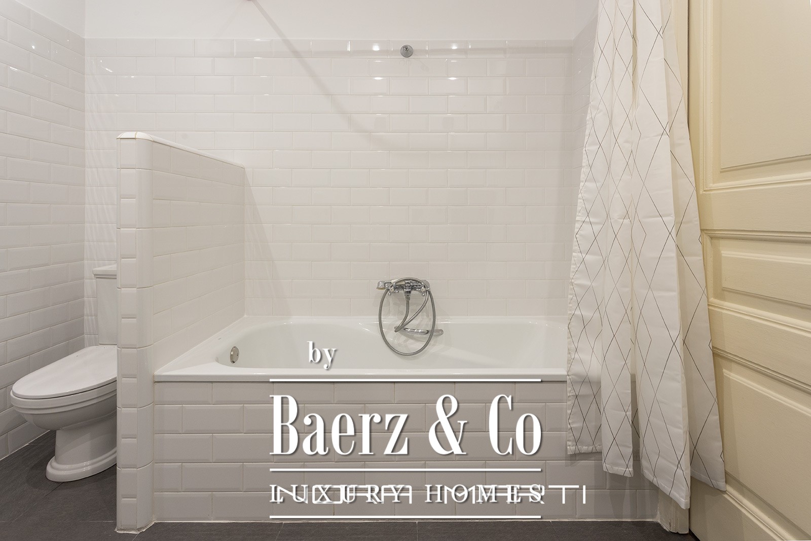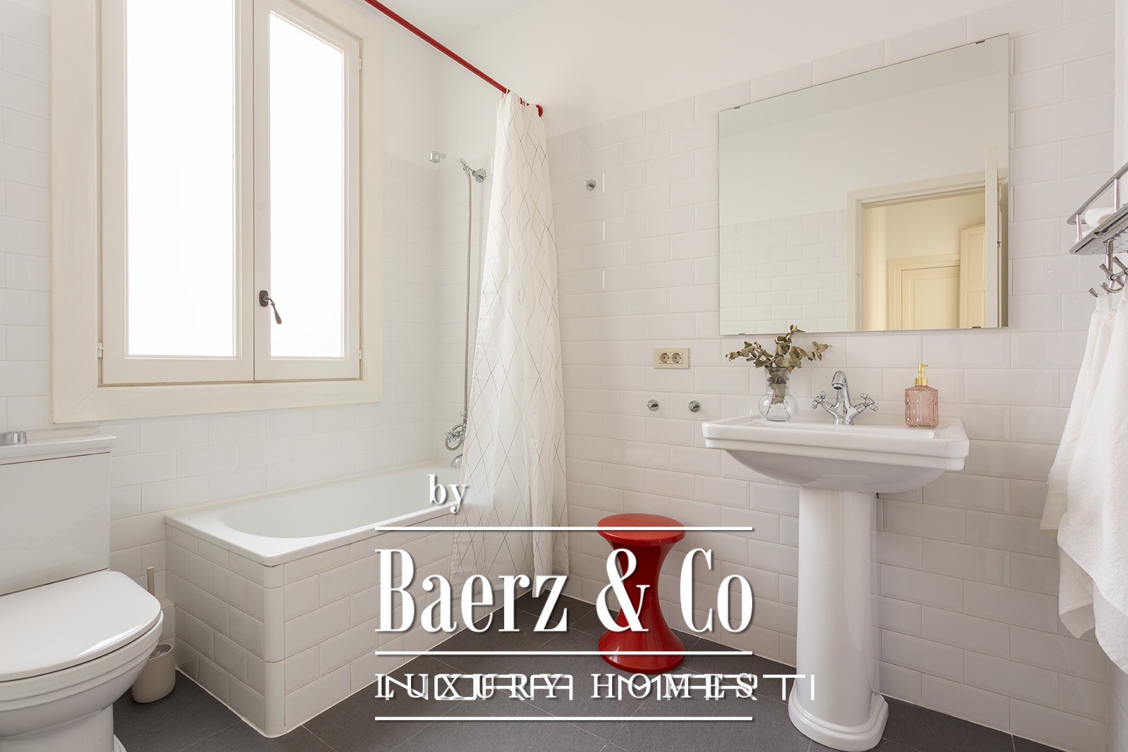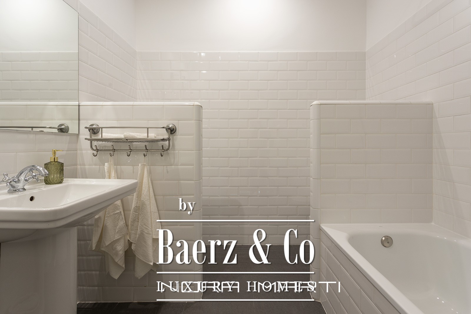 The 152 m² apartment has been extensively renovated, bringing contemporary sensibility to historic bones. Inside, refined modern furnishings lend clarity and cohesion, setting the tone for discreet urban living. The layout features three bedrooms, including one double and two singles, and two bathrooms, creating a balance of private and social spaces. The living room’s tall windows, characteristic of its era, saturate the interiors with natural light, enhanced by a favorable orientation and the warmth of parquet floors. A fully equipped kitchen with a breakfast area adds comfort to the daily rhythm.