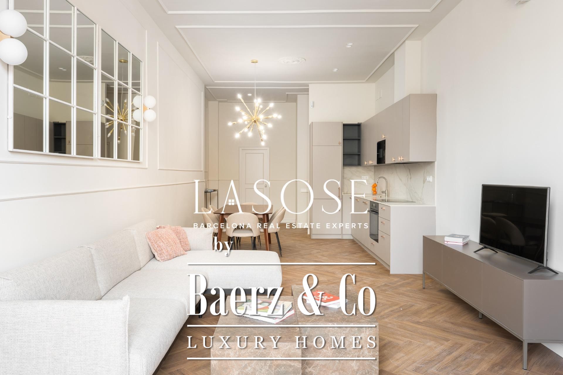 Apartment Barcelona is redefined in this exceptional 118 m² residence, showcasing a meticulous renovation within a historic 1850 building, now a Local Heritage Site. The property achieves the rare harmony between preserved architectural character and the expectations of contemporary luxury. Entering, you are welcomed by an immediate sense of space and refinement, with an open-plan living and dining area bathed in natural light through generous windows facing Paseo Isabel II. Designer furnishings and premium finishes elevate every moment spent here.