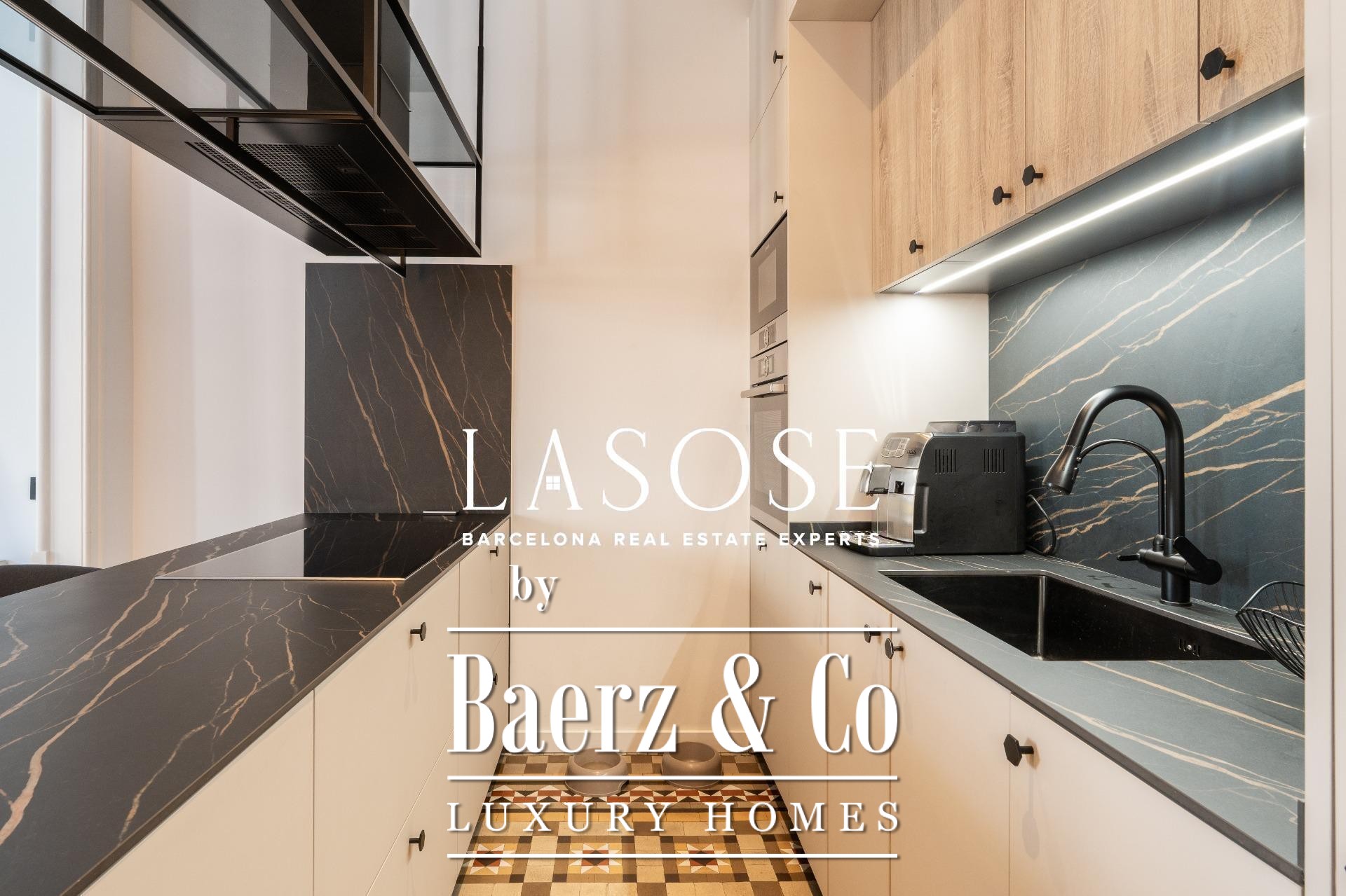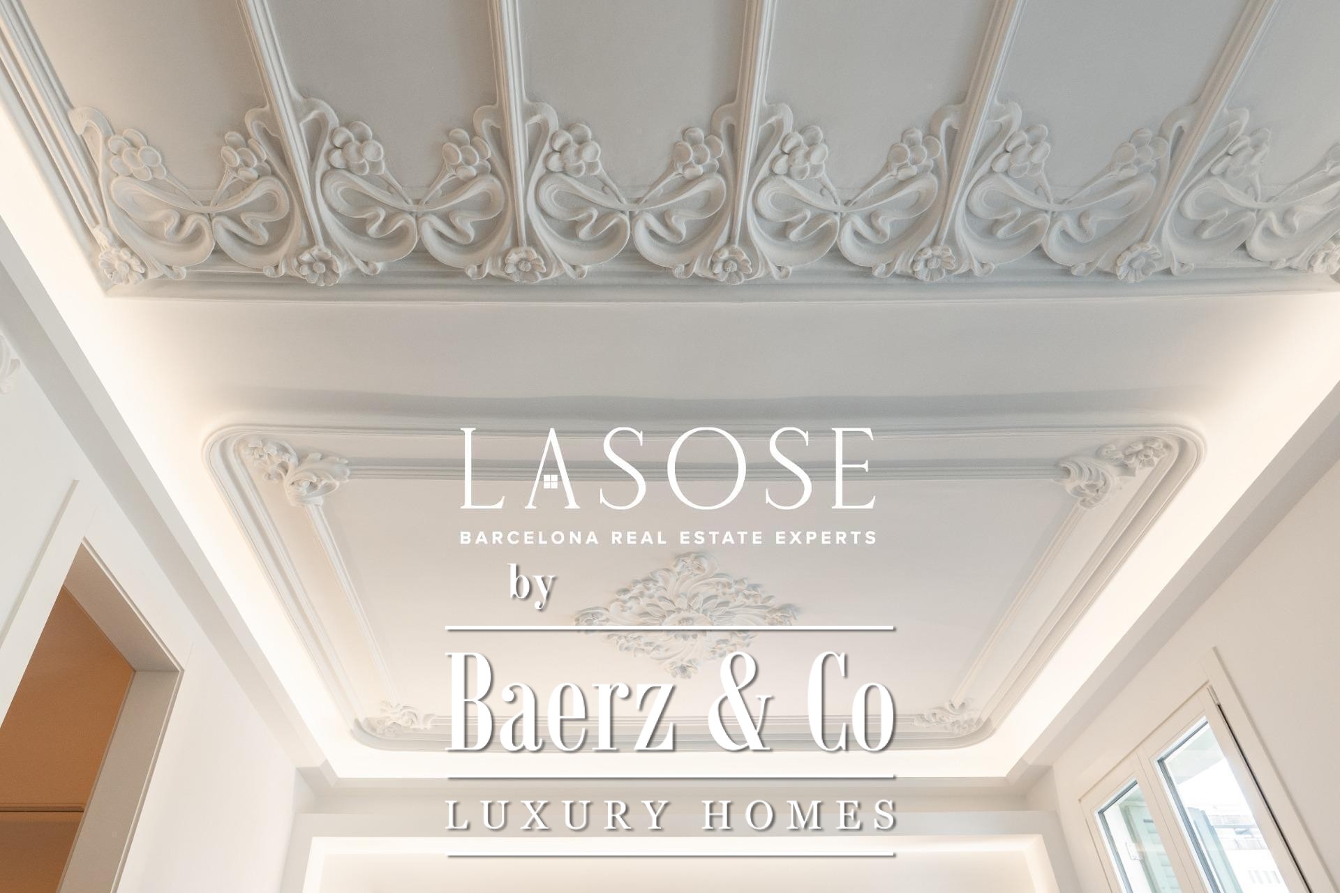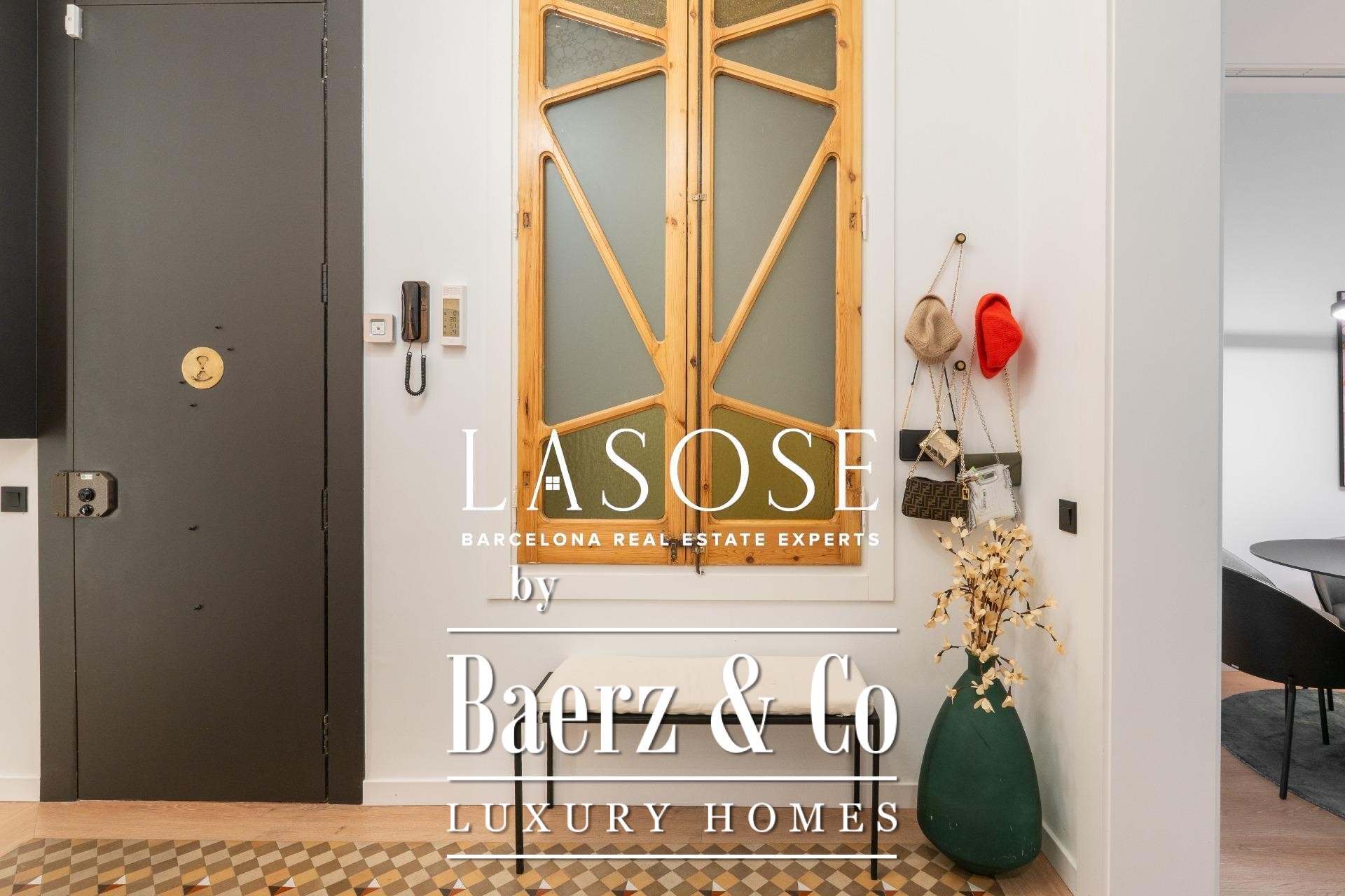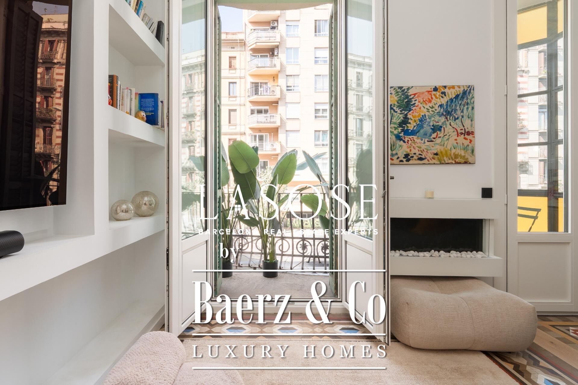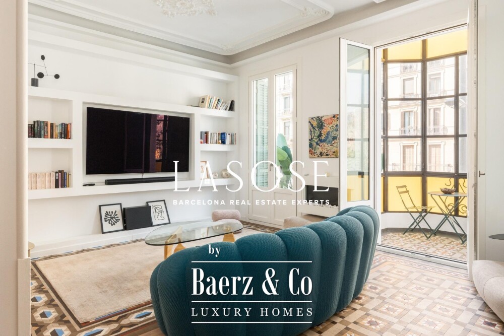 Apartment Barcelona Eixample is quietly positioned on the Principal floor of a protected Modernist building near Passeig de Sant Joan. Completed just two years ago, the most recent renovation blends contemporary luxury with the building’s original charm, highlighting Nolla mosaic hydraulic floors, high ceilings adorned with decorative moldings, and refined architectural details throughout.