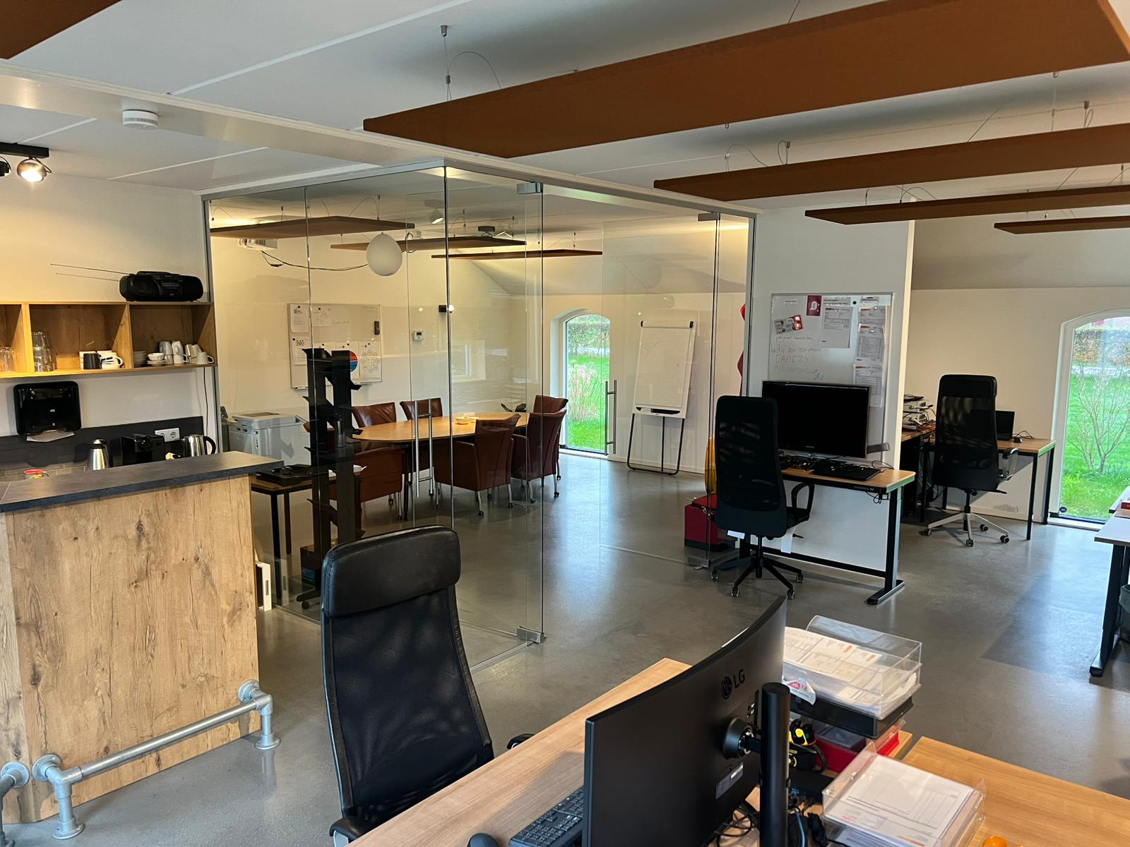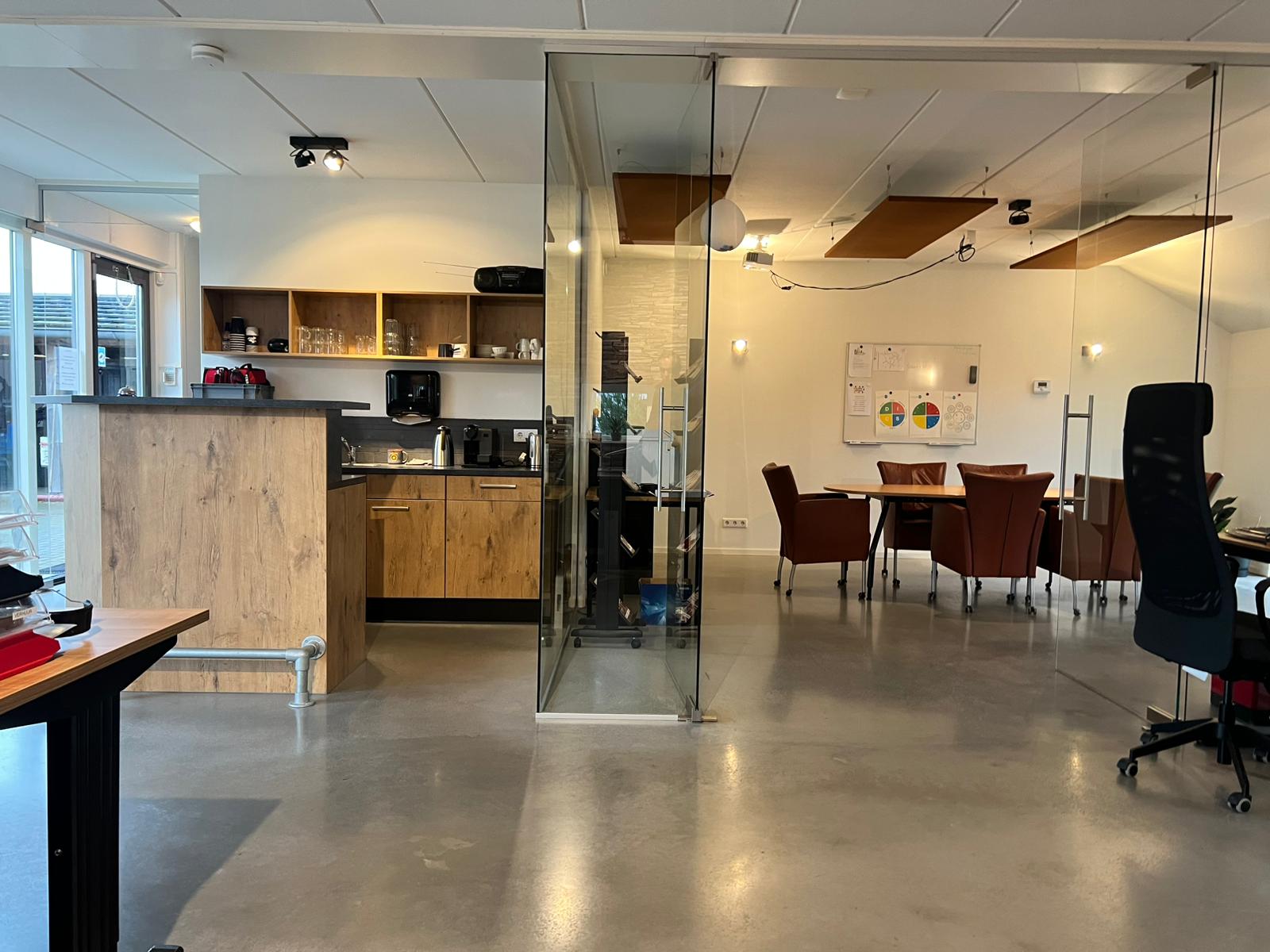 Perhaps you have your own business, maybe with staff, and you want to work from home. That's possible! There is a more than spacious U-shaped annexe consisting of an office with presentation room (approx. 84 m²), toilet, pantry with close-in boiler, and a workshop (90 m²) where you can get straight to work. Like the main house, the entire building is equipped with fibre optic Cat6 Ethernet cables.
