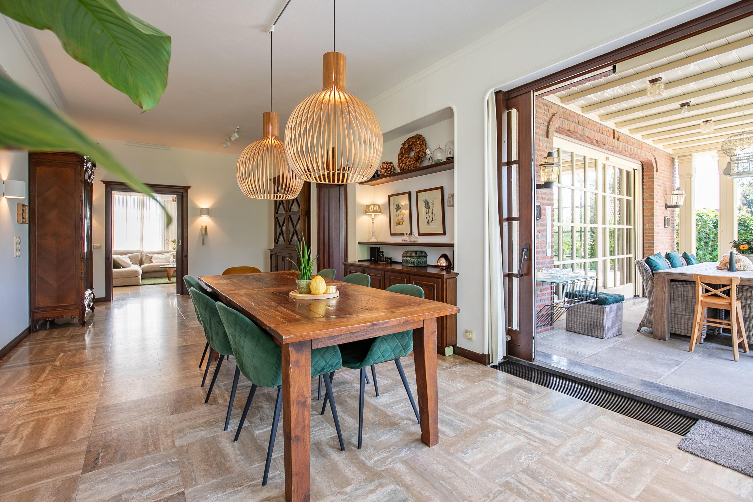 Thanks to the large glass facades and numerous windows, there is seamless contact with the beautiful landscaped garden, and an abundance of natural light.This comfortable home features a spacious living room, a luxurious kitchen with cooking island, a generous ground-floor (bed)room or office, five (bed)rooms on the first floor, and no less than three bathrooms.