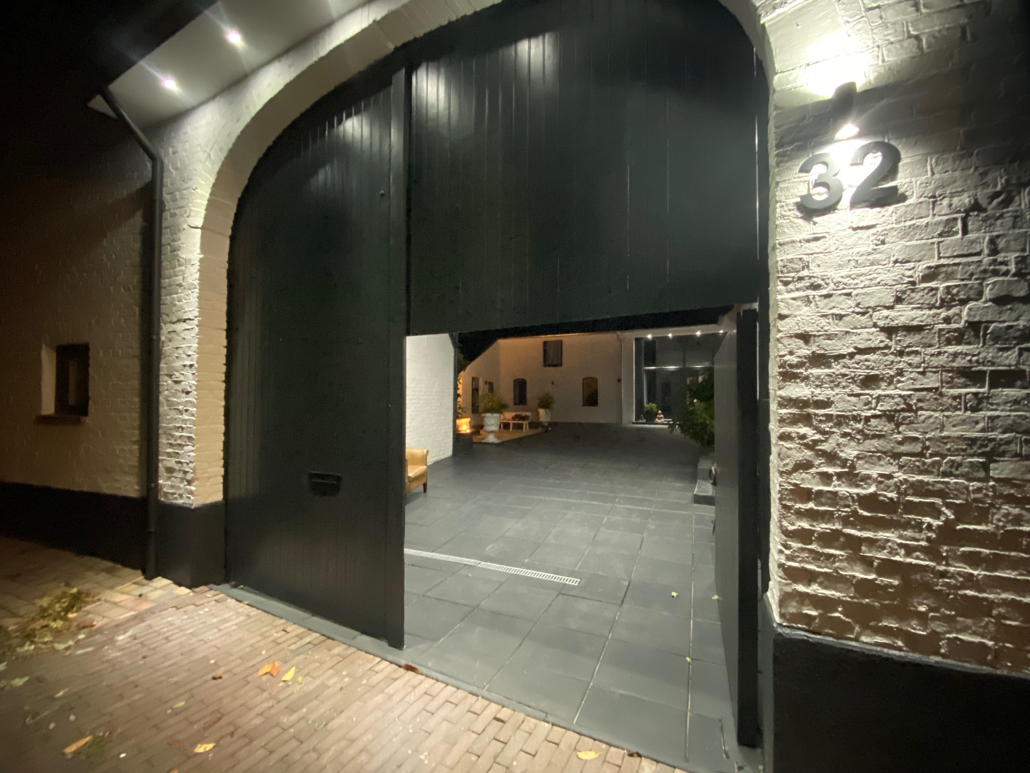 The main residence is conceived around light, proportion and a strict architectural consistency. The spacious living kitchen, fitted with Gaggenau appliances, forms the heart of the home. The adjoining living area exudes understated luxury with generous windows, a modern wood stove, and direct access to both the courtyard and the garden terraces. Large anthracite tiles extend seamlessly outdoors, creating a unified interior–exterior composition. A study (or additional bedroom) on the ground floor and the elegant Golden Bathroom complete the ground level.