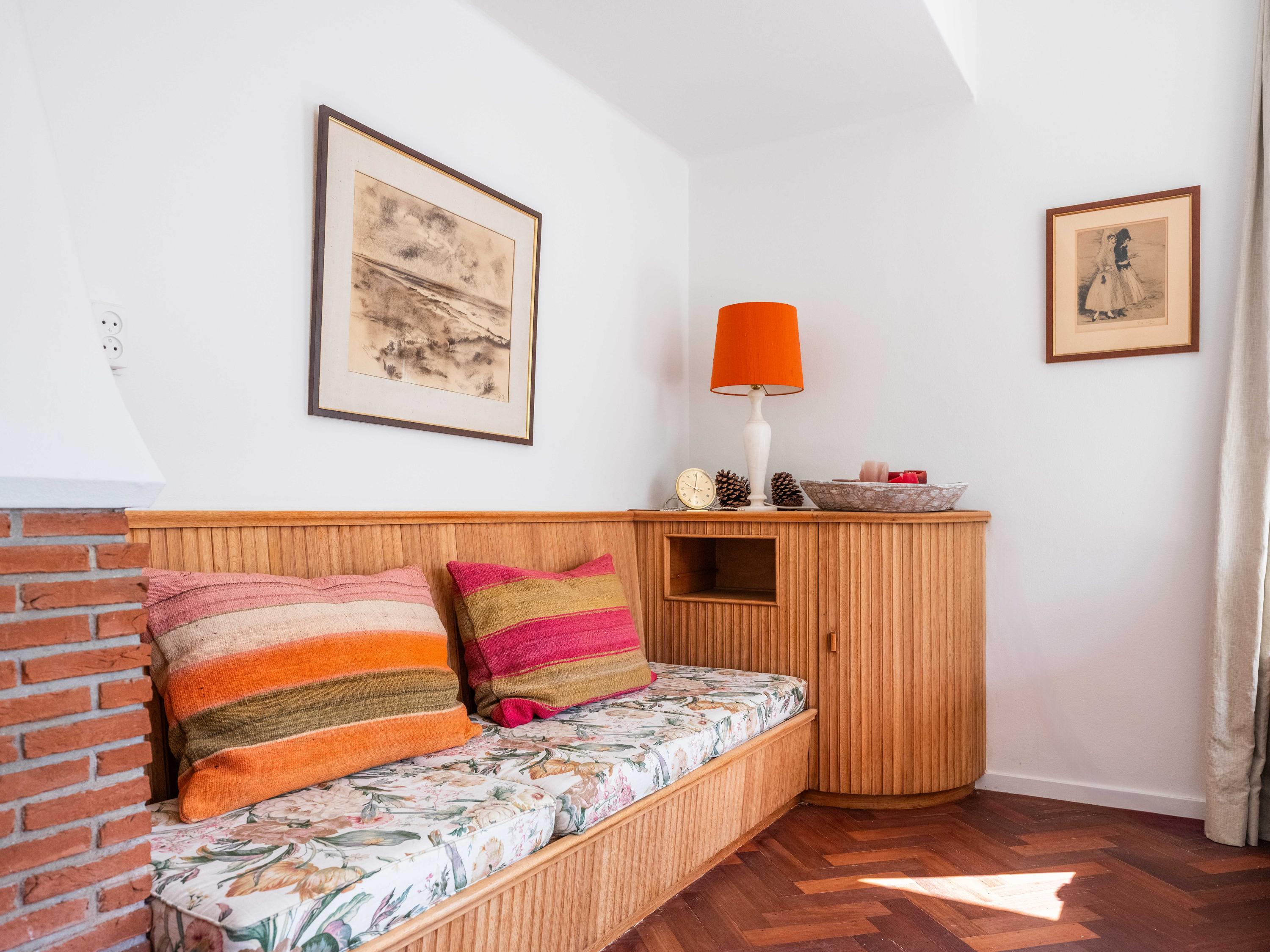 Let us take you inside. Upon entering, you will immediately notice the beautiful entrance hall with a stylish staircase with wrought iron banister, a modern toilet and a handy basement cupboard. The living room is light and cosy with original wooden parquet flooring, a wood-burning stove and French doors opening onto the green garden. Built-in custom wooden cupboards add extra charm and storage space.