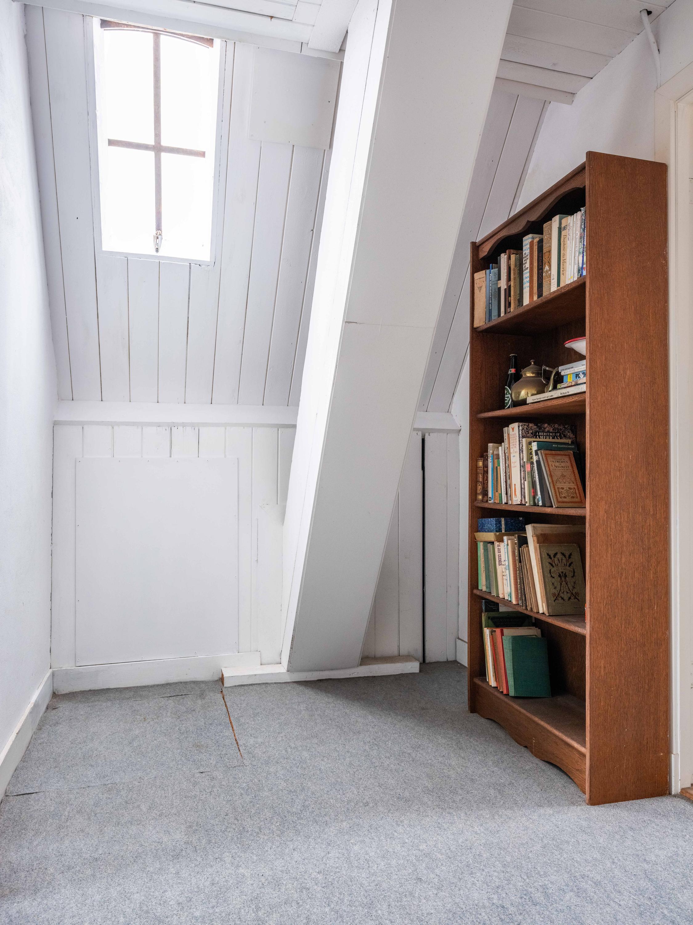 A second fixed staircase takes you to the attic floor. Unlike the rest of the house, which is heated with radiators, this floor is not heated. The spacious landing leads to two rooms, which could ideally serve as additional bedrooms or work space. There are also kneeboards here for extra storage space.