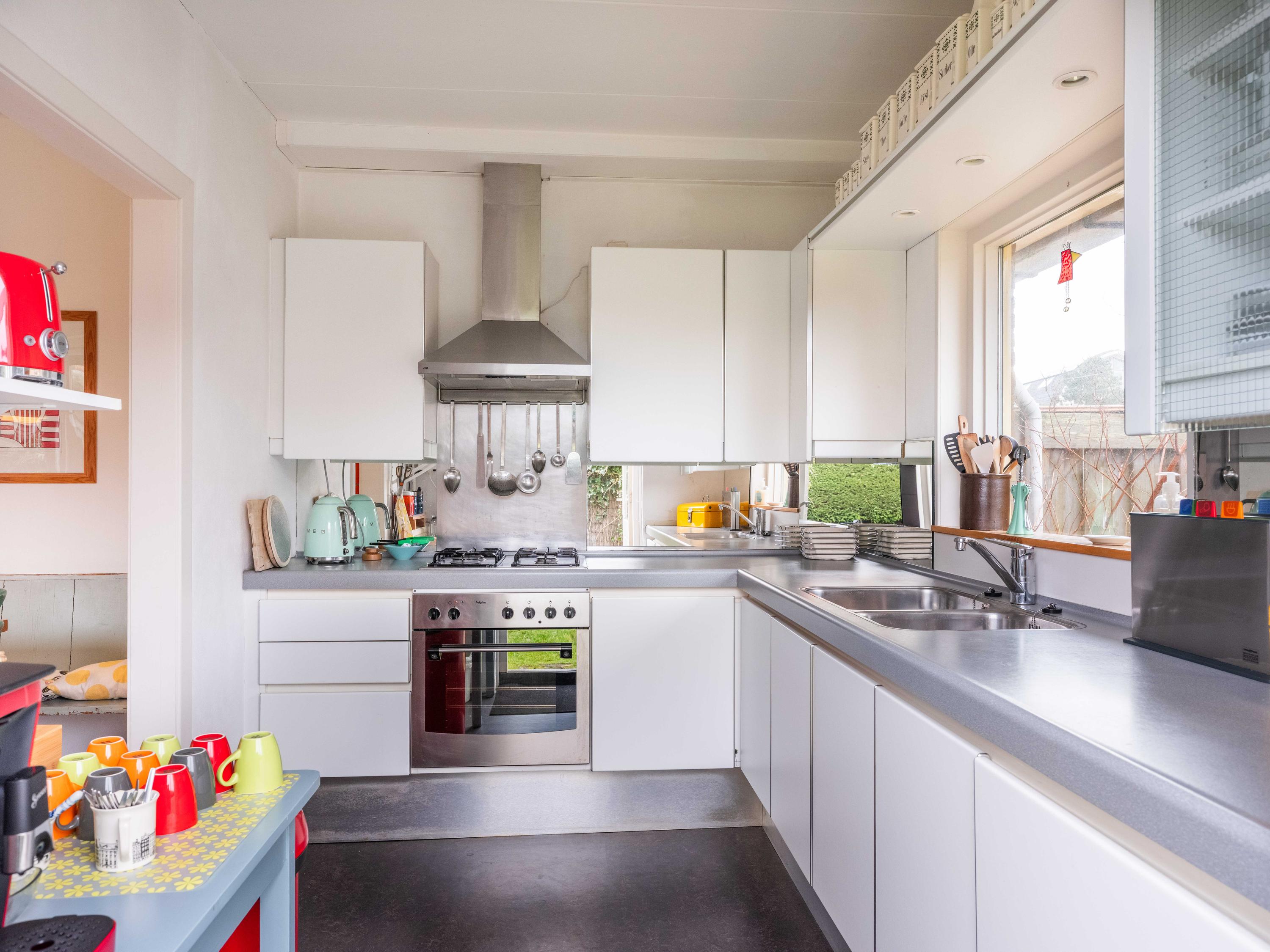 Upon entering, you immediately experience the spaciousness. The generous hall provides access to the toilet, the meter cupboard, the stairs to the upper floor, and a handy storage space under the stairs. The bright living room overlooks the greenery on the other side and is a nice place to relax. From the hall, you also reach the dining room and the kitchen, which is equipped with various built-in appliances and direct access to the garden.