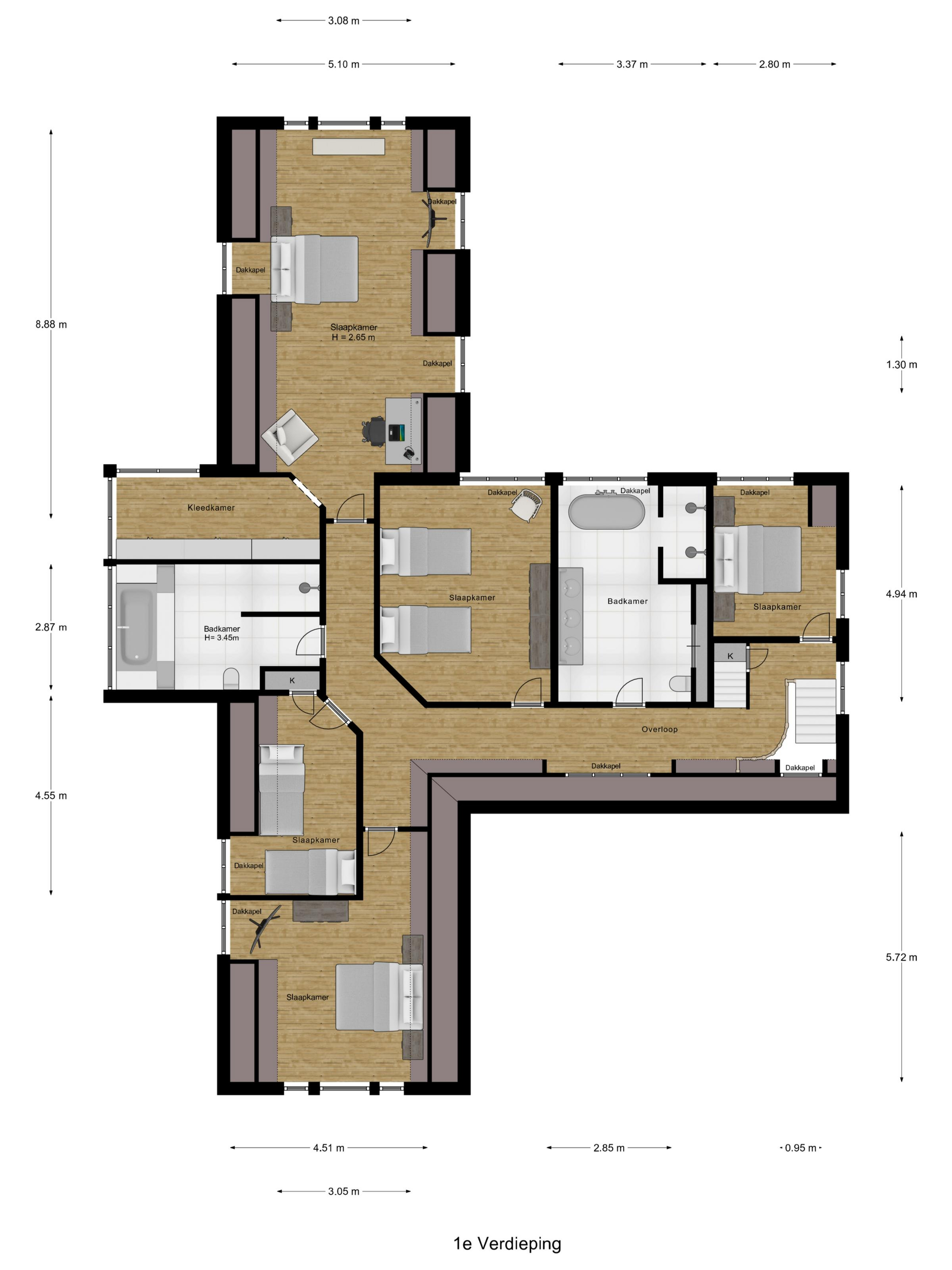 The former coach house has been converted into a luxurious, self-contained guest house with recreational facilities. This stylish studio features a living/sleeping area, a modern open-plan kitchen and a bathroom with a walk-in shower and separate toilet, and is also fitted with underfloor heating, a wood-burning stove and air conditioning, ensuring extra comfort.