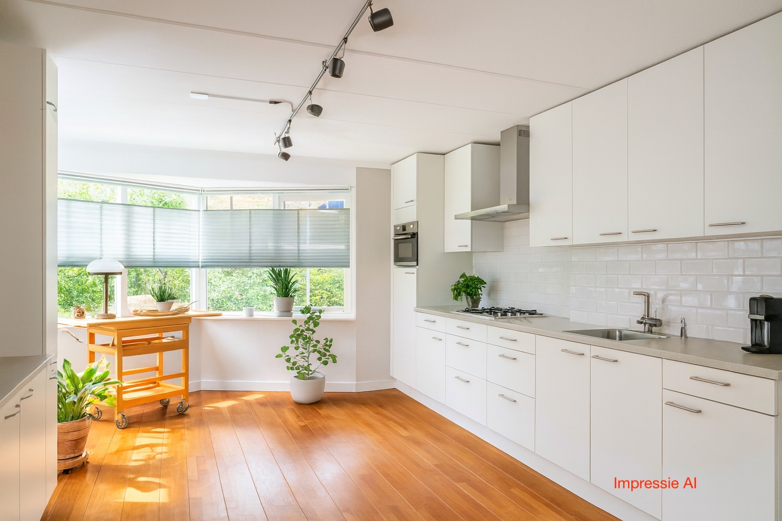 We would be happy to show you around. Upon entering, you will find a spacious entrance hall with a cloakroom, toilet, and meter cupboard. The layout of this home is playful and contemporary, with a cozy garden-facing sitting area with a separate dining area. The kitchen is located at the front and offers plenty of storage space and various built-in appliances. Ideal for both relaxing evenings and cozy family moments.