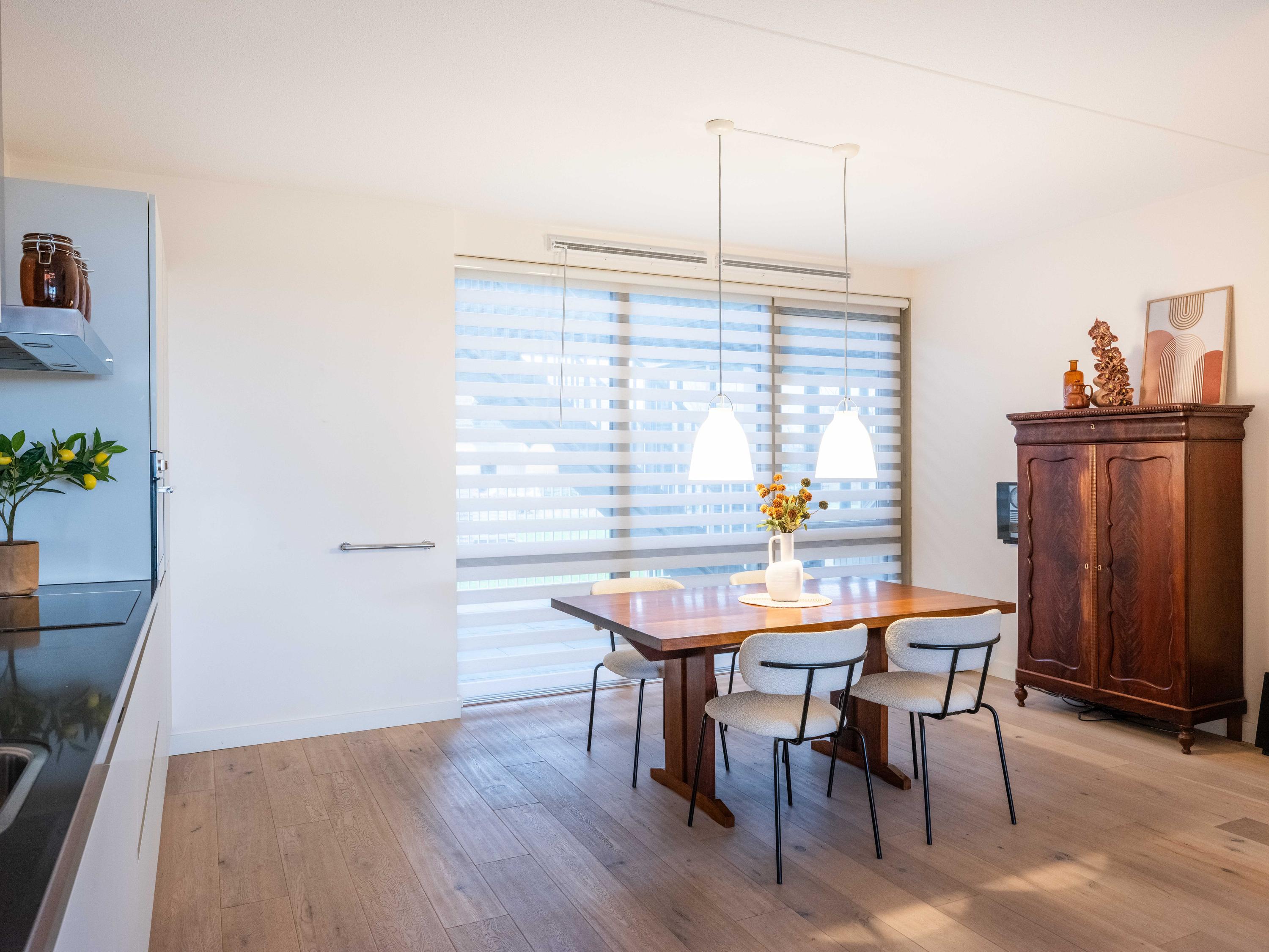 From the living room, the balcony and the lower terrace, you can enjoy beautiful cloudy skies, birds and the greenery of the polder all day long. The modern open kitchen contains various built-in appliances and a dining area.