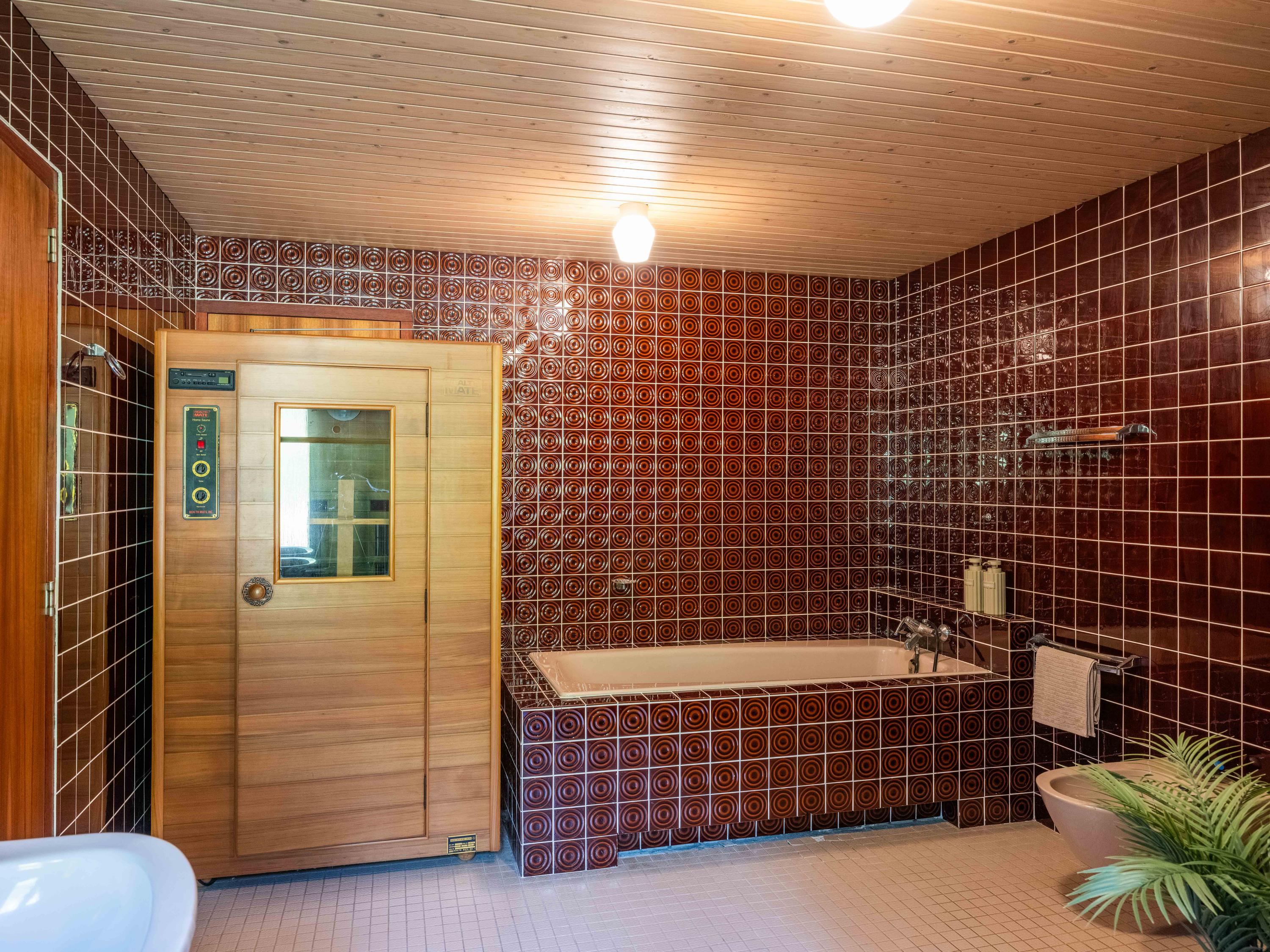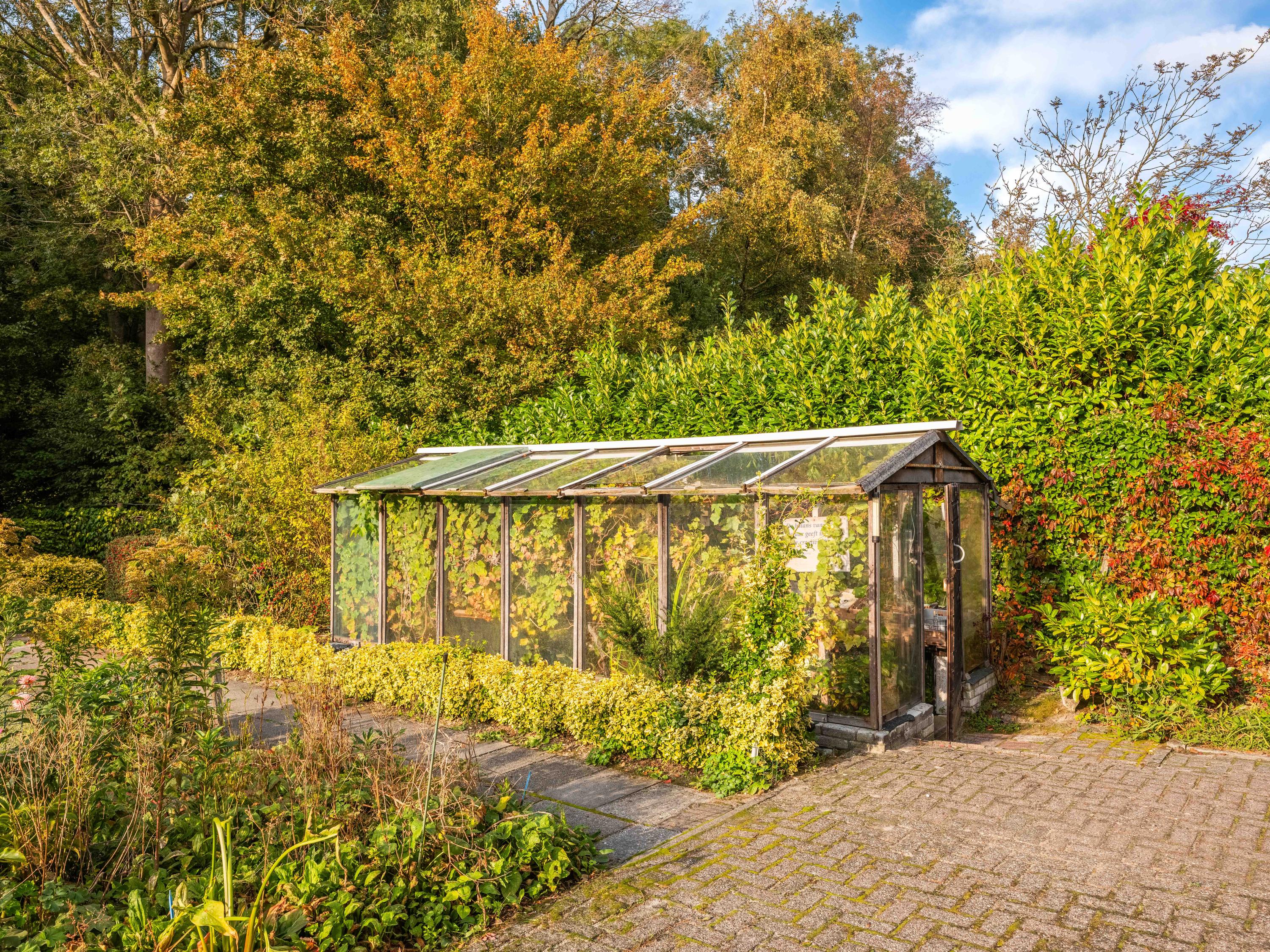 We would also like to mention a few extras. The large attached garage is accessible from inside and offers ample space for bicycles, cars or other items. Cars can also be easily parked on the property, as there is plenty of space. The garden has several terraces and offers plenty of sun and privacy. It has taken 43 years to turn it into a colourful whole. And there is a greenhouse! The surrounding garden offers plenty of sun and privacy. In terms of sustainability, we can report that there are already 8 solar panels, wall insulation and mostly double glazing (energy label C). The wine cellar is also a charming extra.