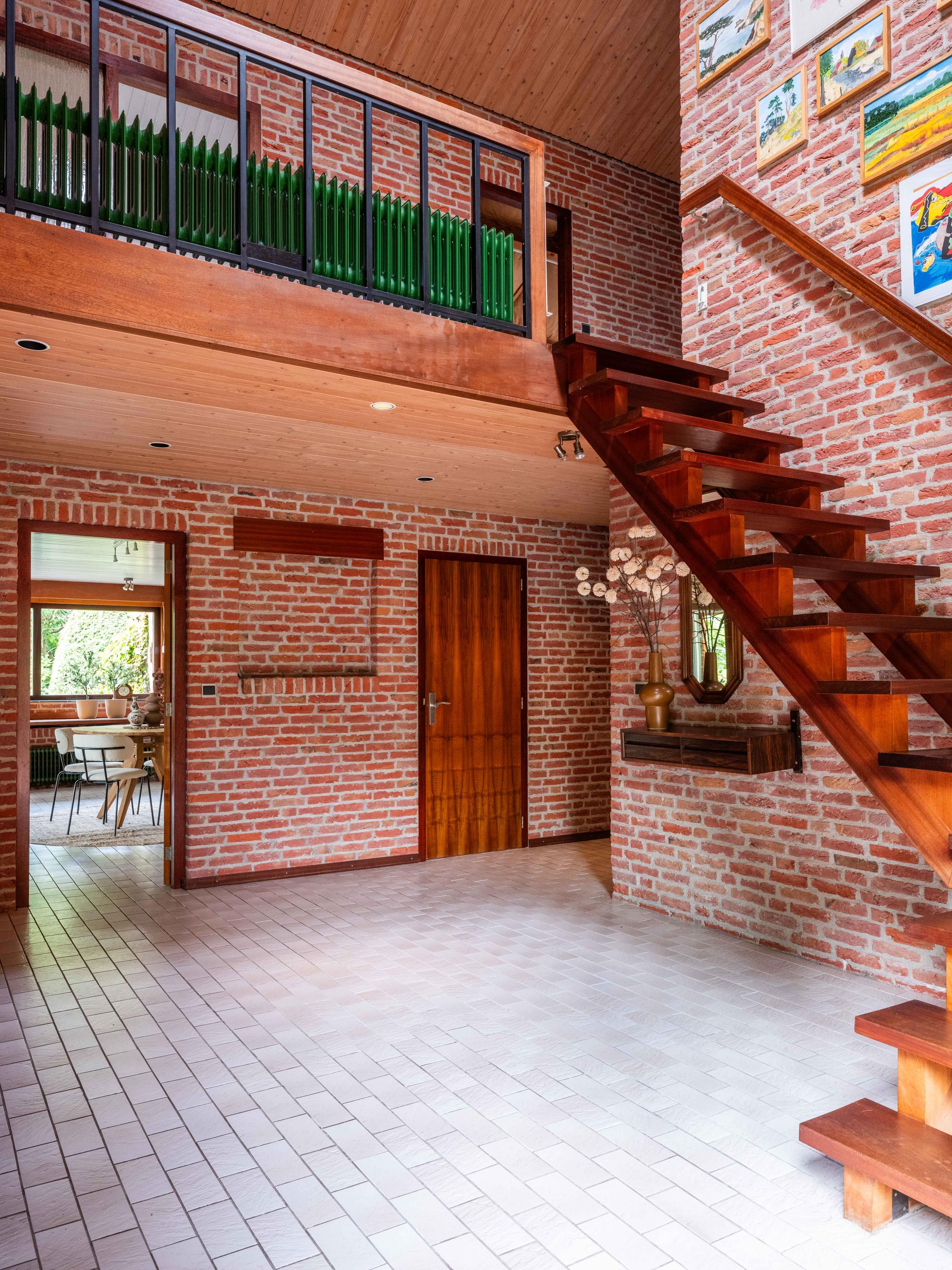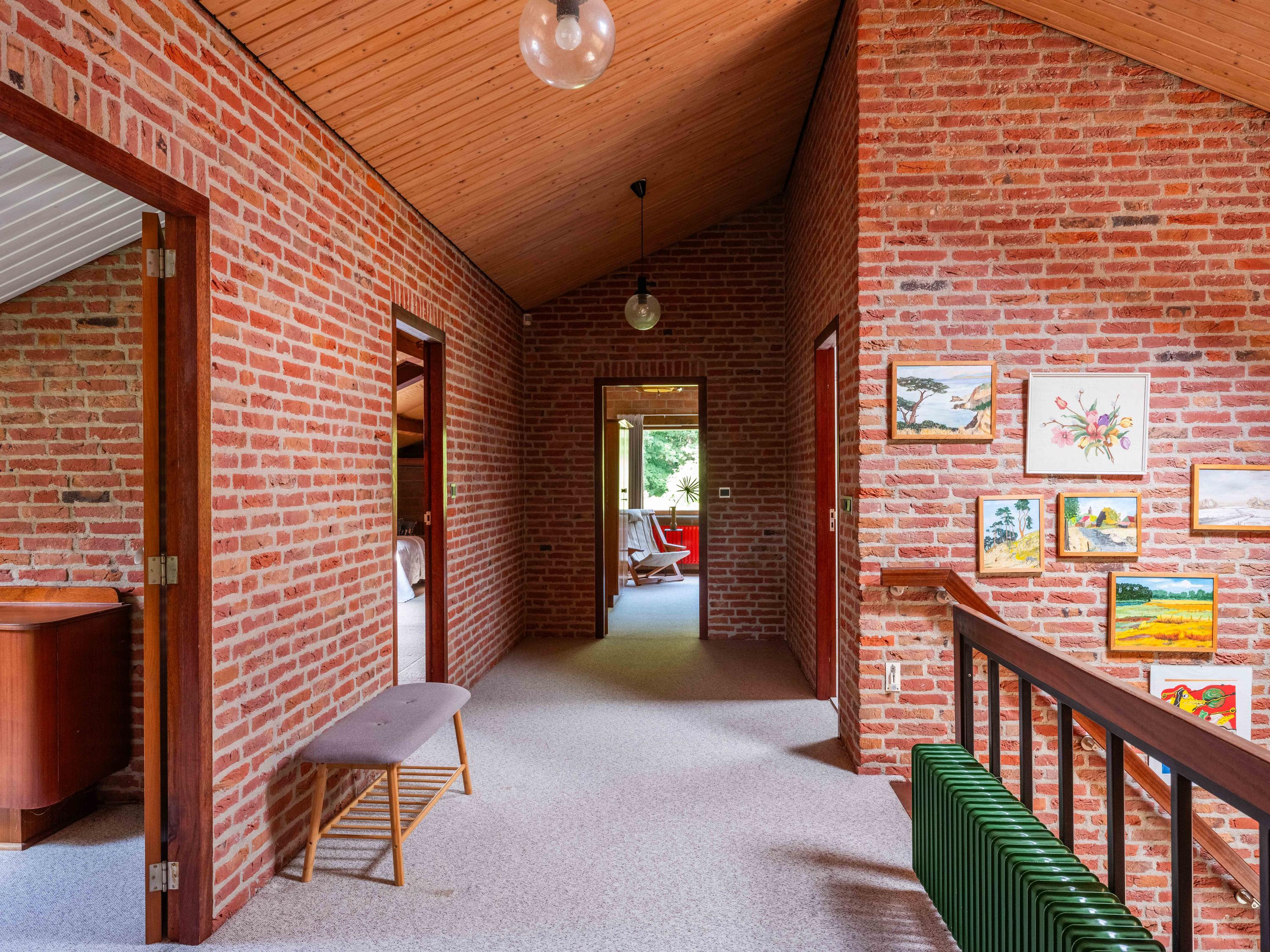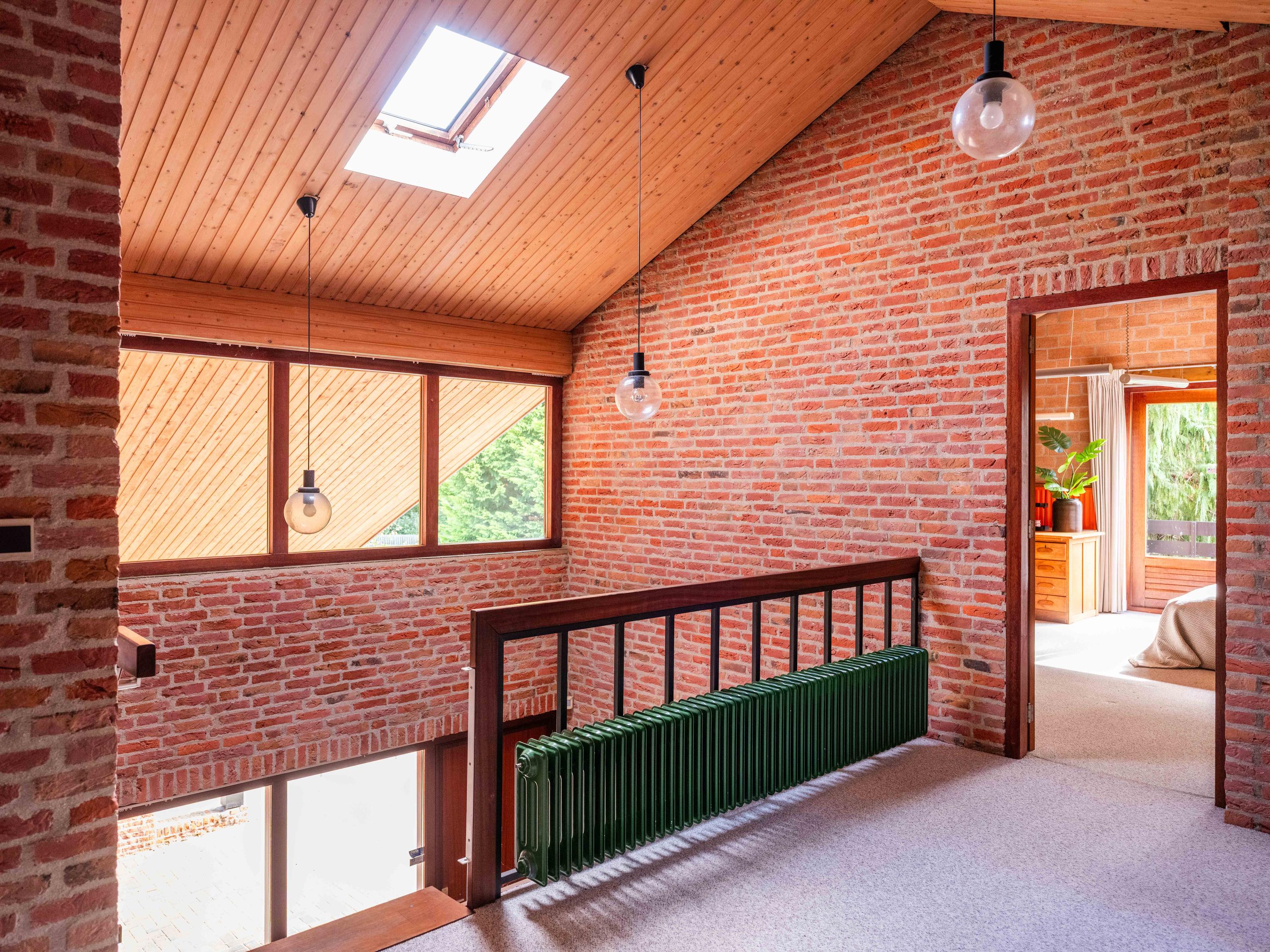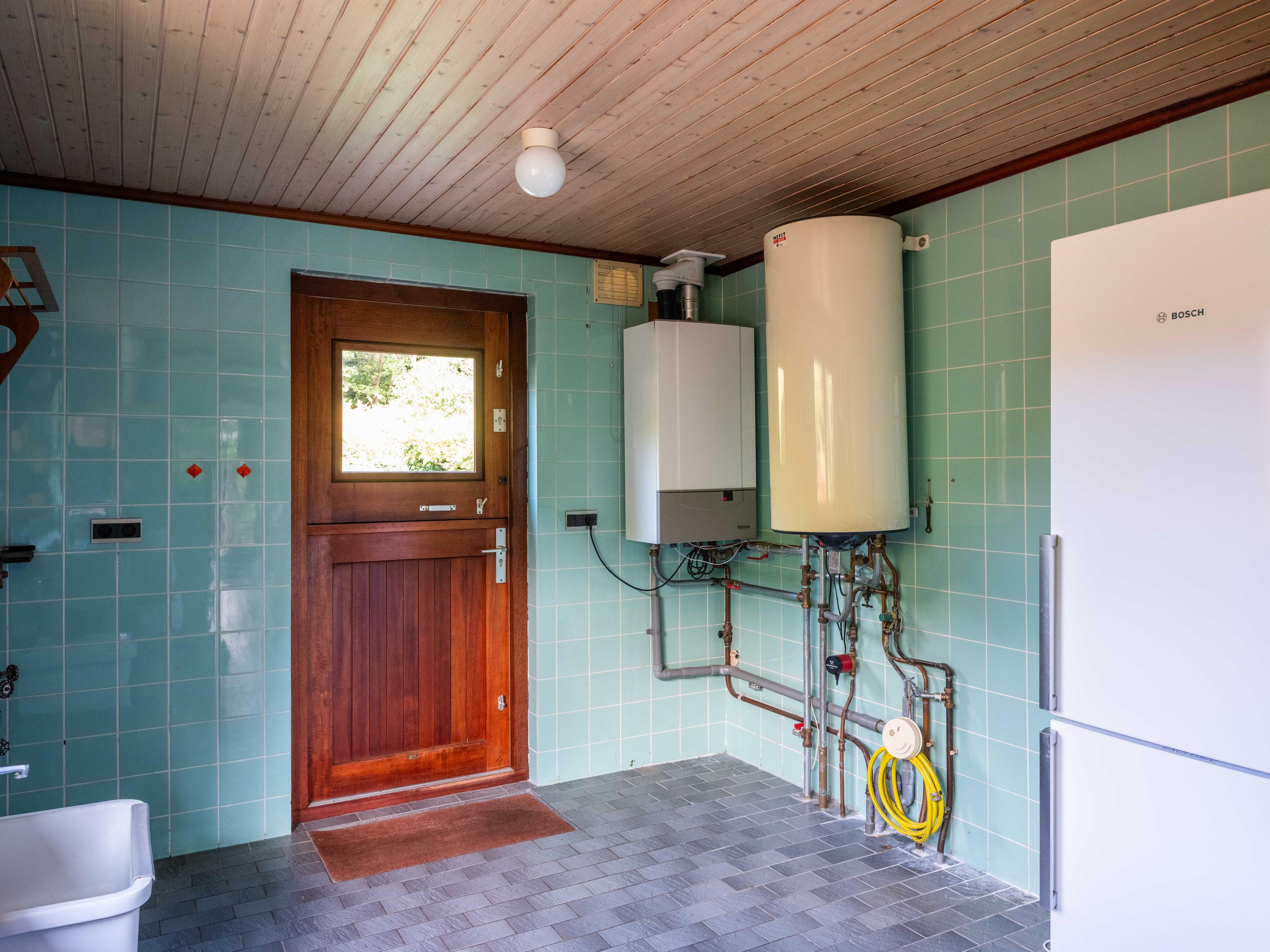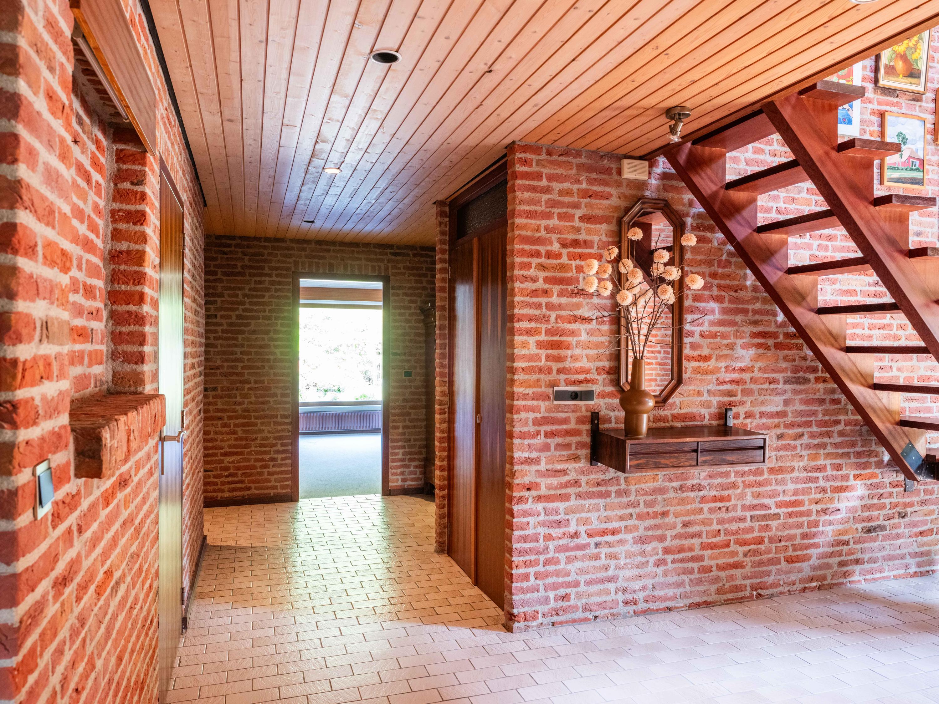 The imposing hall with its beautiful staircase offers a stylish welcome. As we enter the bright living room with fireplace, the beautiful view of the greenery is particularly striking. The kitchen is simple but functional and adjoins a practical utility room. The presence of a spacious bedroom and bathroom on the ground floor is very pleasant, making the house ideal for single-storey living. Upstairs there are two spacious bedrooms and a second bathroom. The storage attic with skylight and space for the central heating system offers possibilities for an extra room.