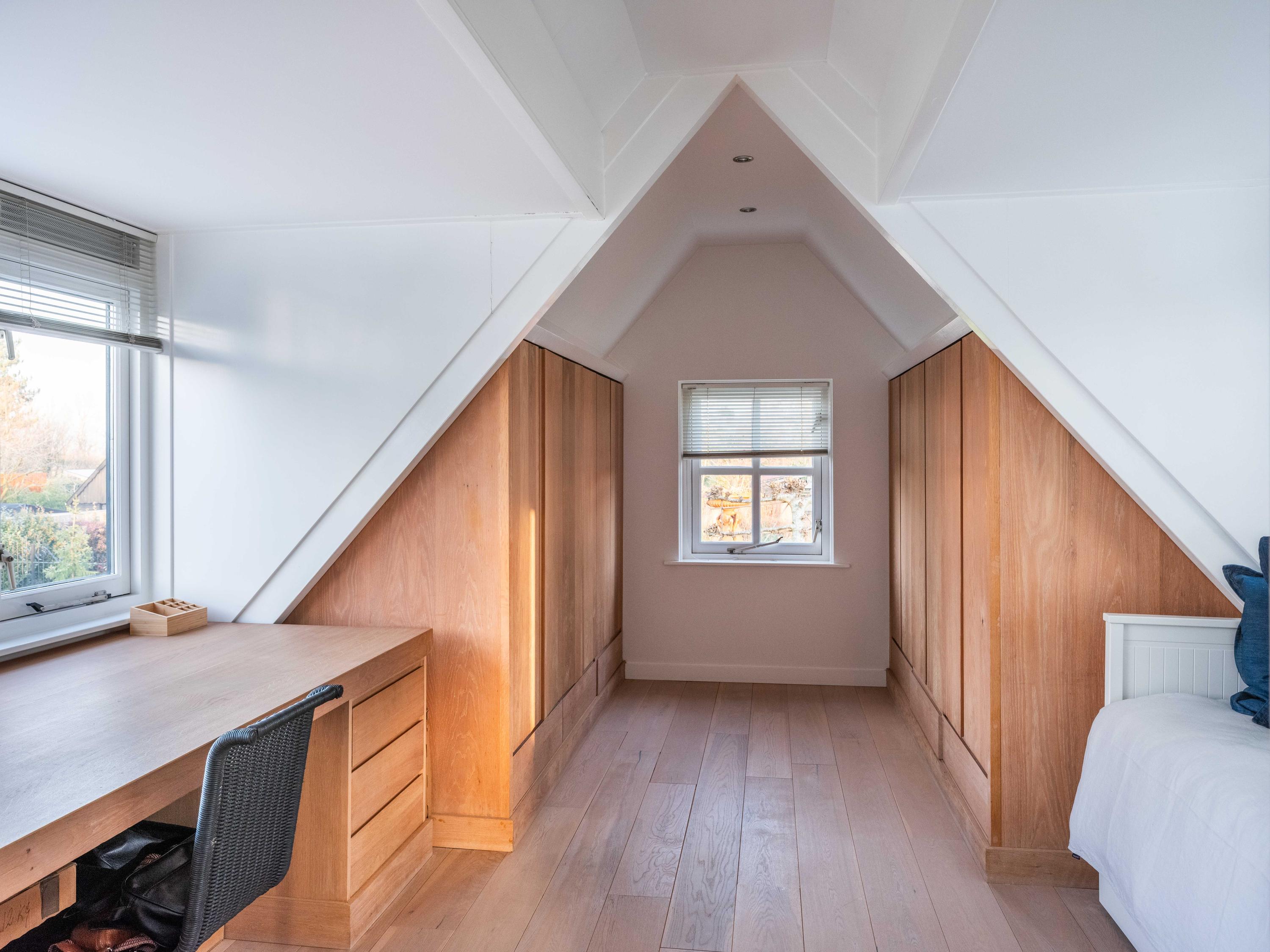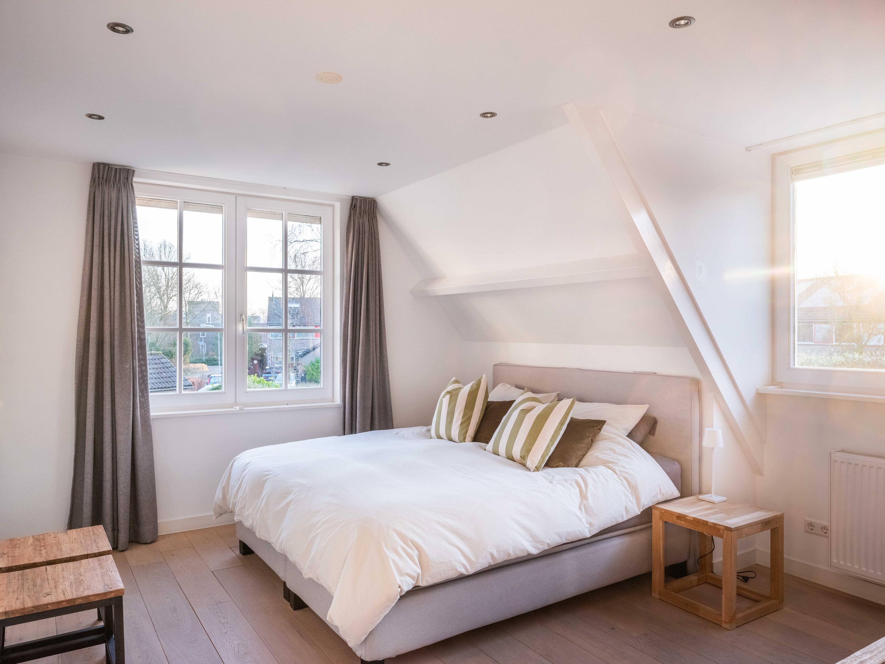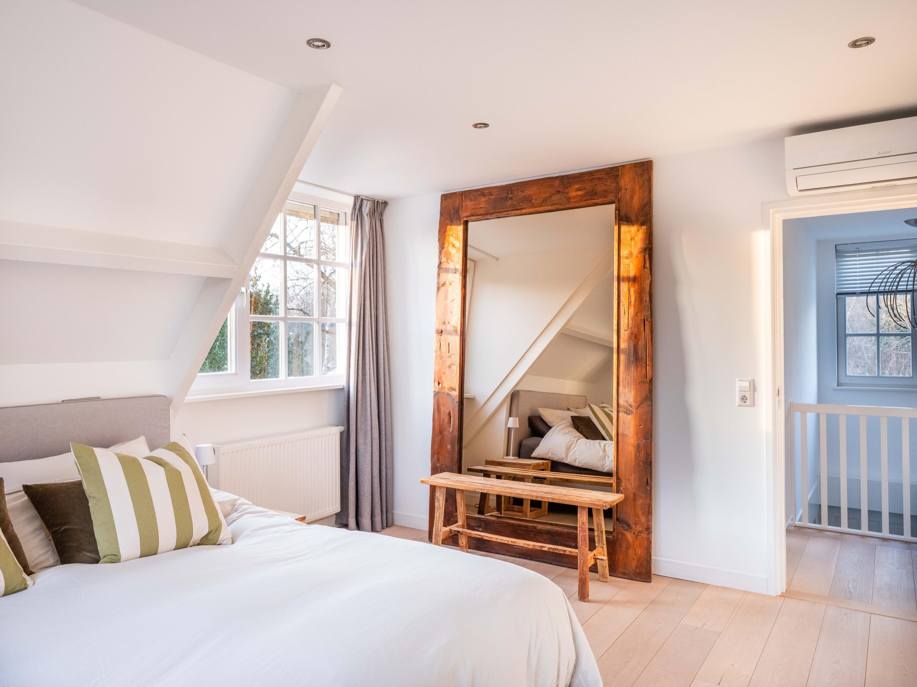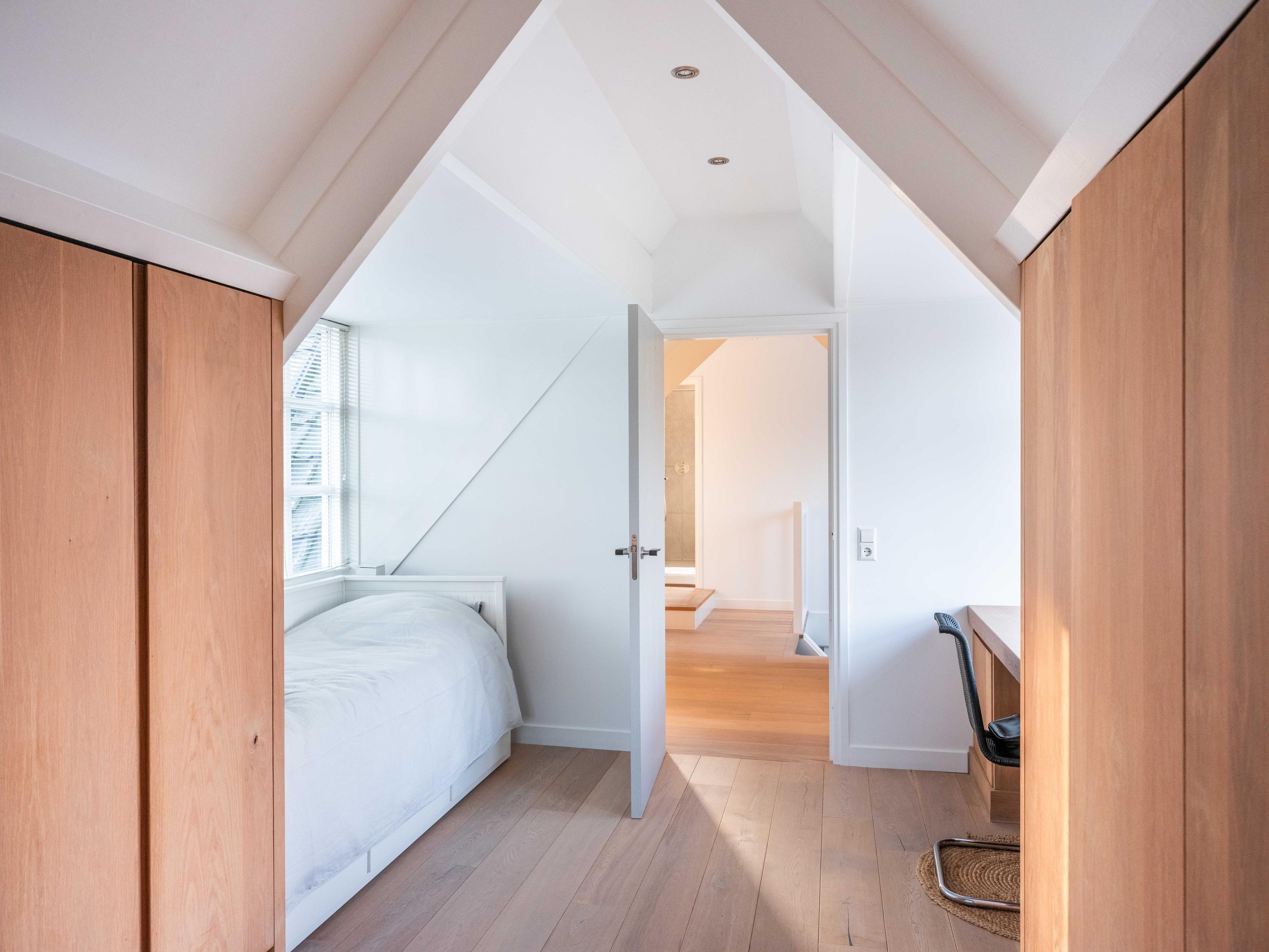 The first floor offers three well-sized bedrooms, each with its own atmosphere and fitted with custom wardrobes. The luxurious bathroom is stylishly finished with natural materials, and here too, quality and tranquility have been chosen. Throughout the house, it is clear that care and taste have been taken to create a harmonious whole.