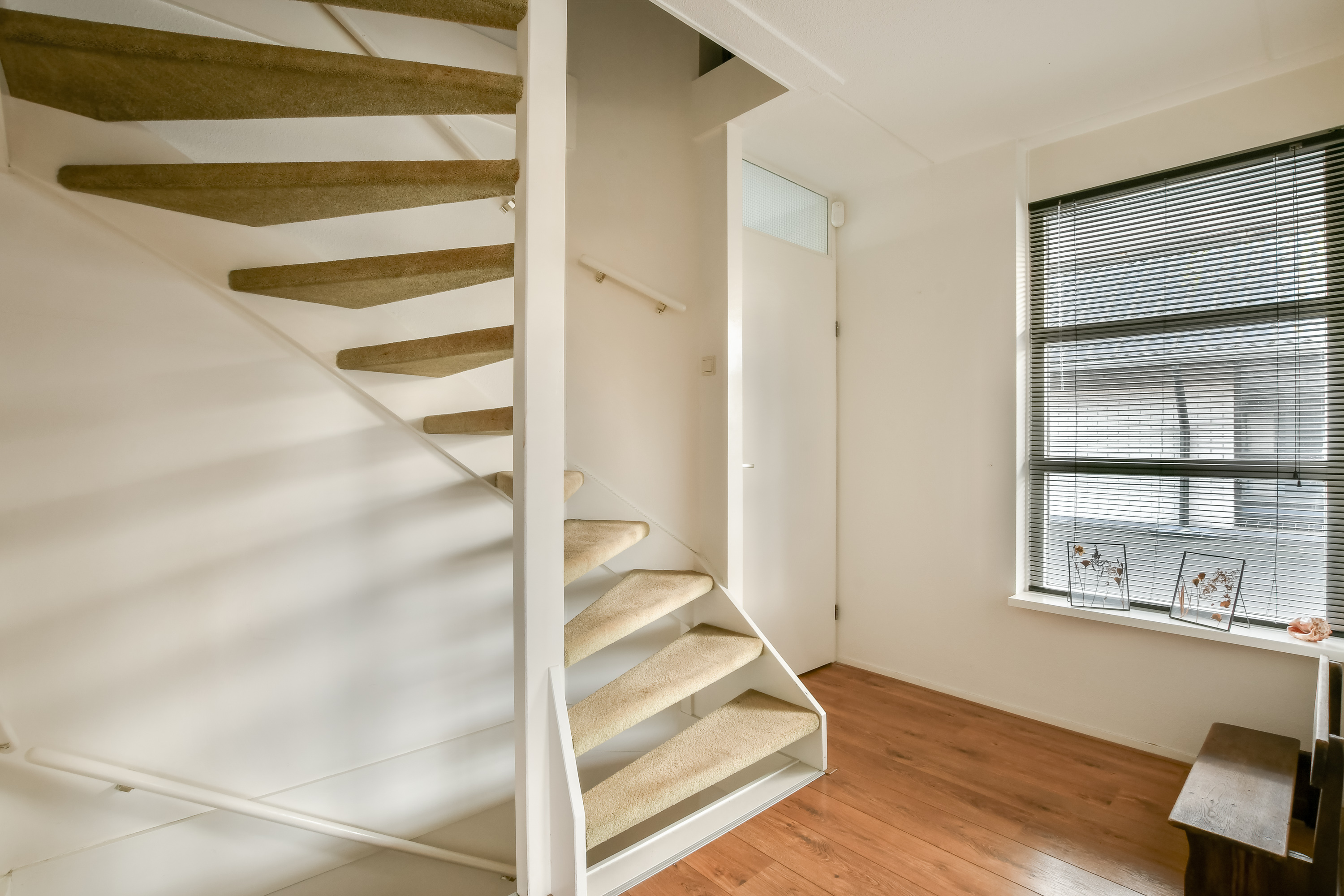 Entree/hal met meterkast, toilet, trapkast, trap naar de eerste verdieping en toegang tot de woonkamer.
