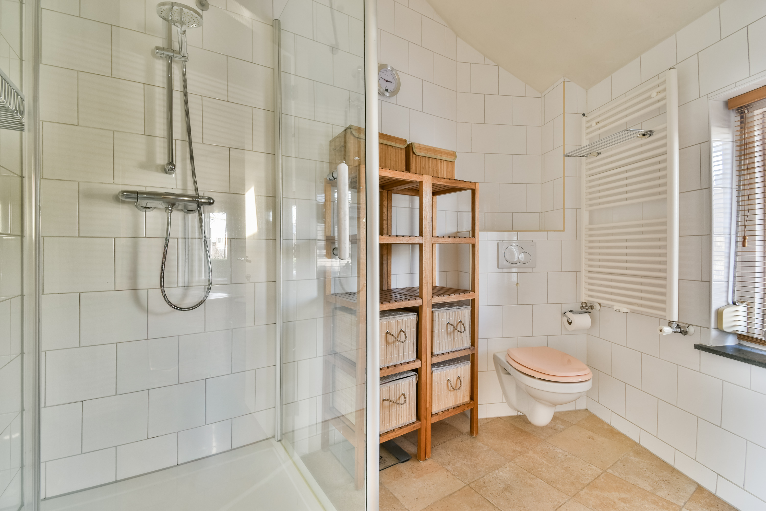 On the ground floor, the entrance opens into a spacious living room with air conditioning and a fireplace, complemented by wide doors leading directly to the garden and sunny patio. Adjacent to the kitchen equipped with built-in appliances lies a utility room and indoor storage. The massief oak flooring throughout the main level introduces warmth, while an extra versatile room opens onto the garden, providing possibilities for home office or creative pursuits.