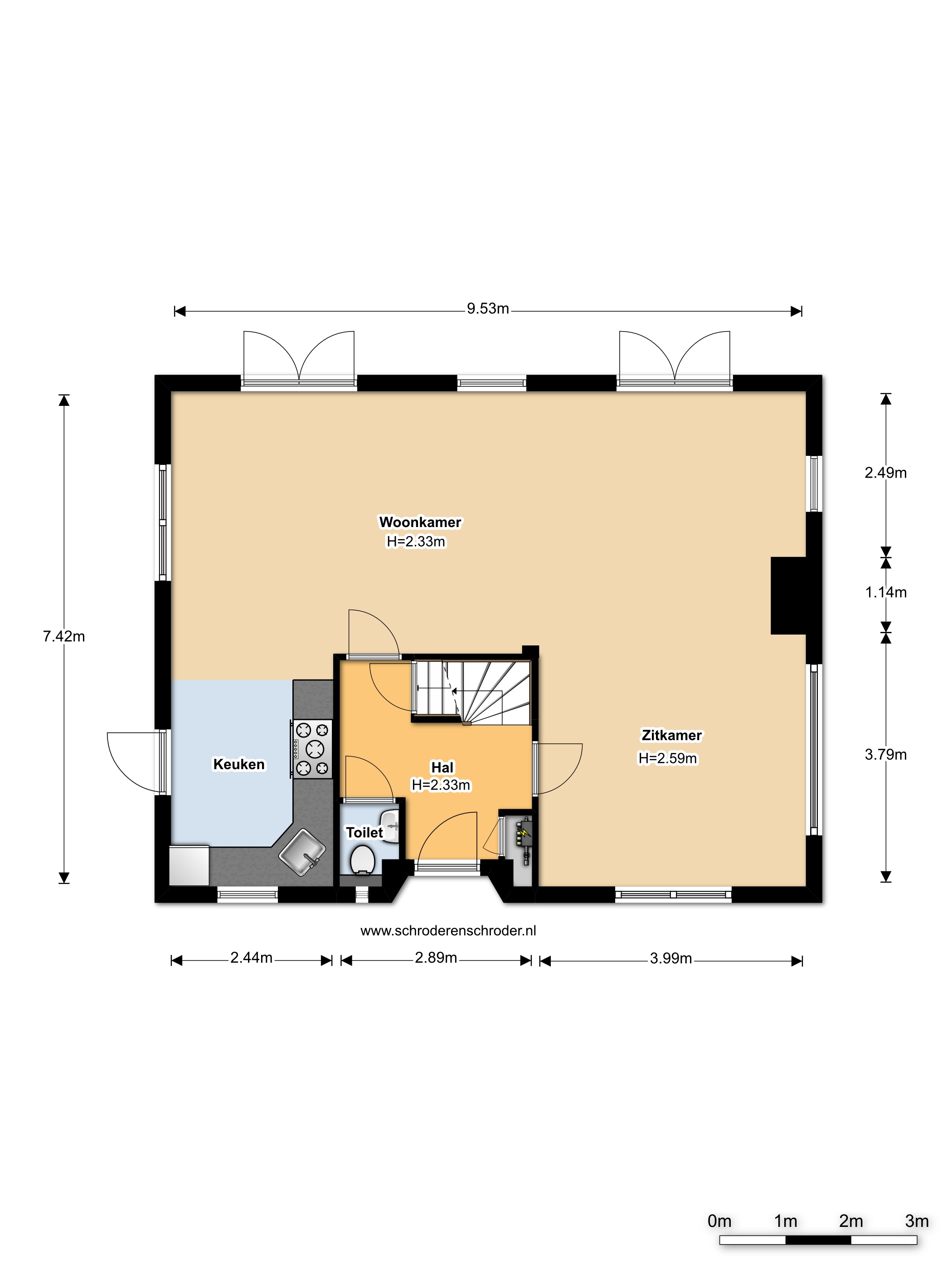 Inside, you are welcomed into a hallway with a guest toilet (although, as is customary in Blaricum, you'll likely enter through the back door). The bright L-shaped living room spans the entire rear of the house and features a parquet floor and gas fireplace perfect for long evenings or sunny afternoons with the French doors open to the garden. The open-plan kitchen is modern and functional, equipped with built-in appliances and a back door leading to the inner garden. A full-height basement offers additional storage space and room for a washer and dryer.